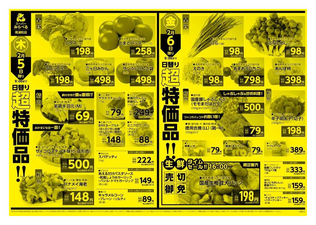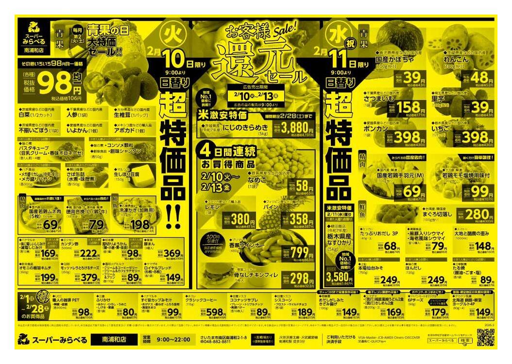 スーパーみらべる南浦和店今週のチラシ(2026年2月9日〜2月15日)