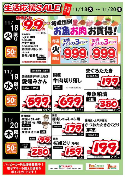 特売やセール情報など最新のチラシを掲載中。(3種類、6枚のチラシを掲載しています)