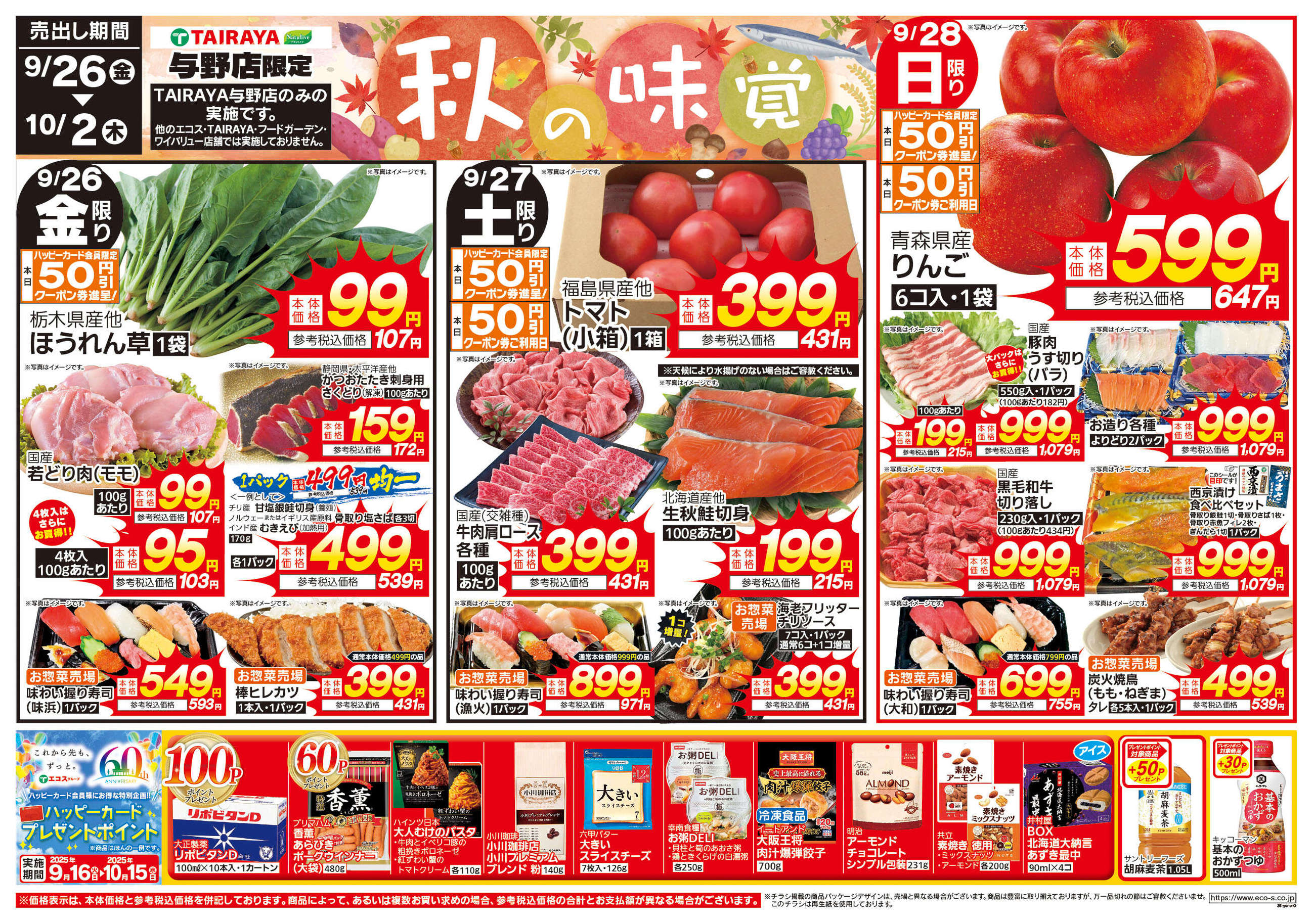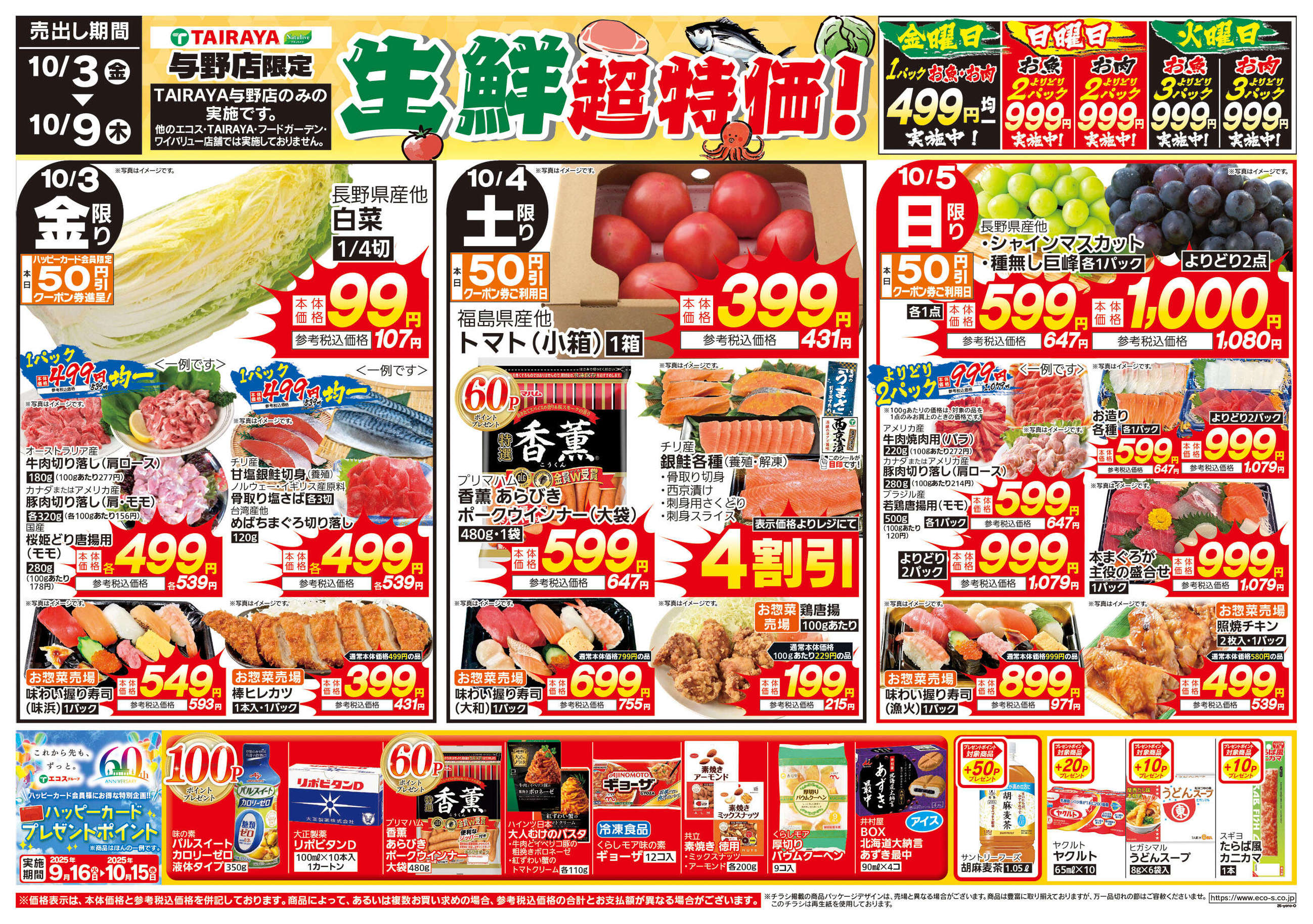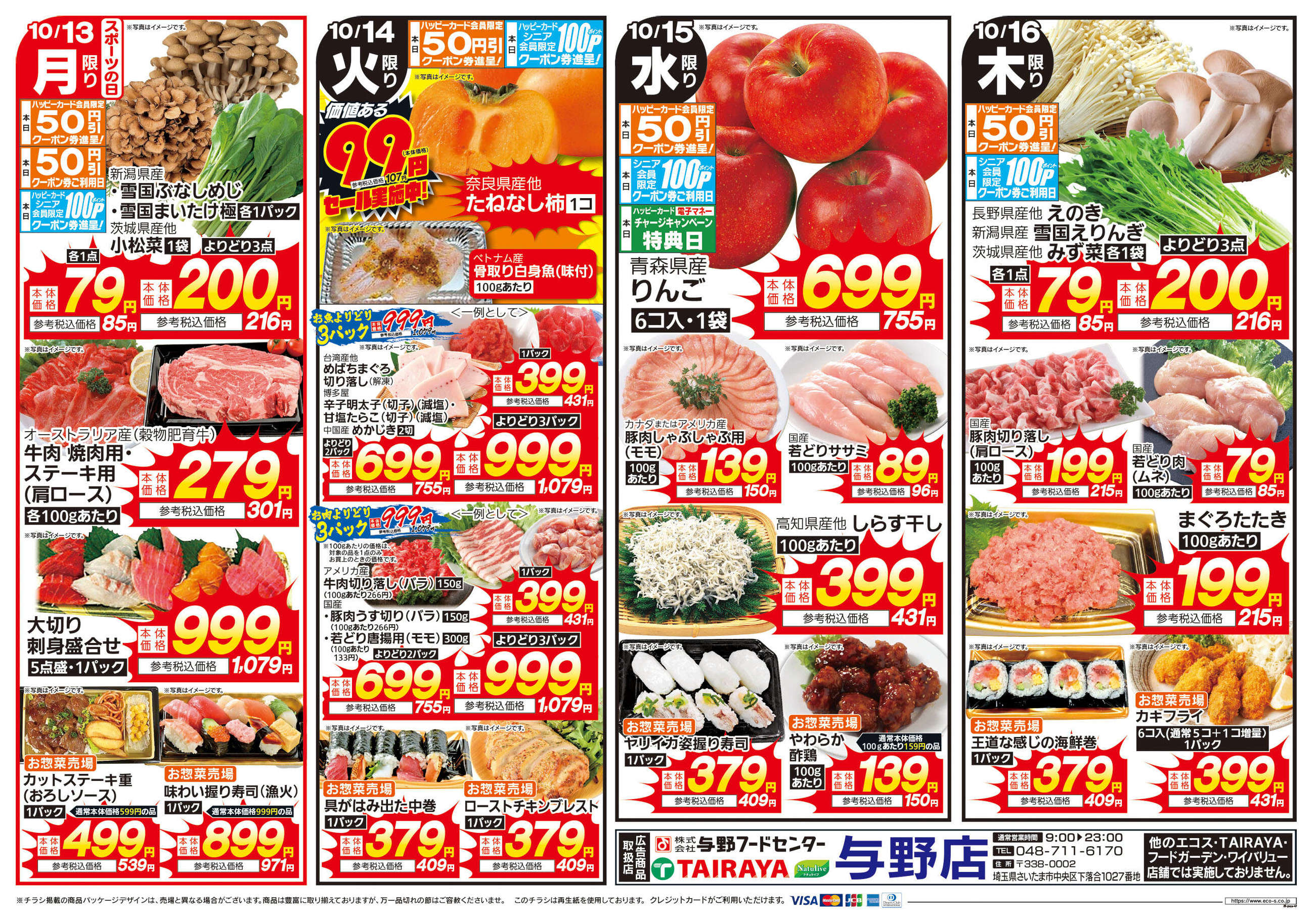 TAIRAYA与野店今週のチラシ(2025年10月13日〜10月19日)