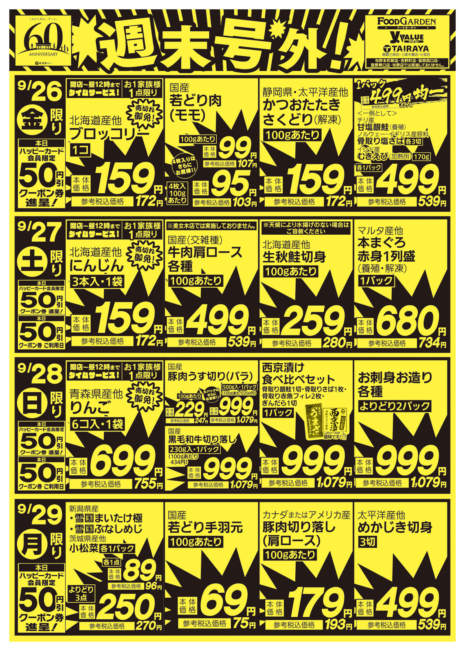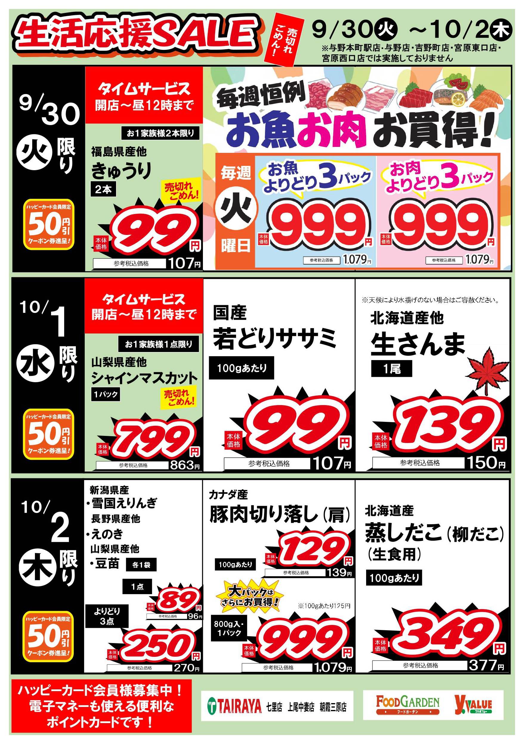 - 2025年9月24日〜11月30日まで毎週恒例お魚お肉よりどり&均一セール! (1枚)