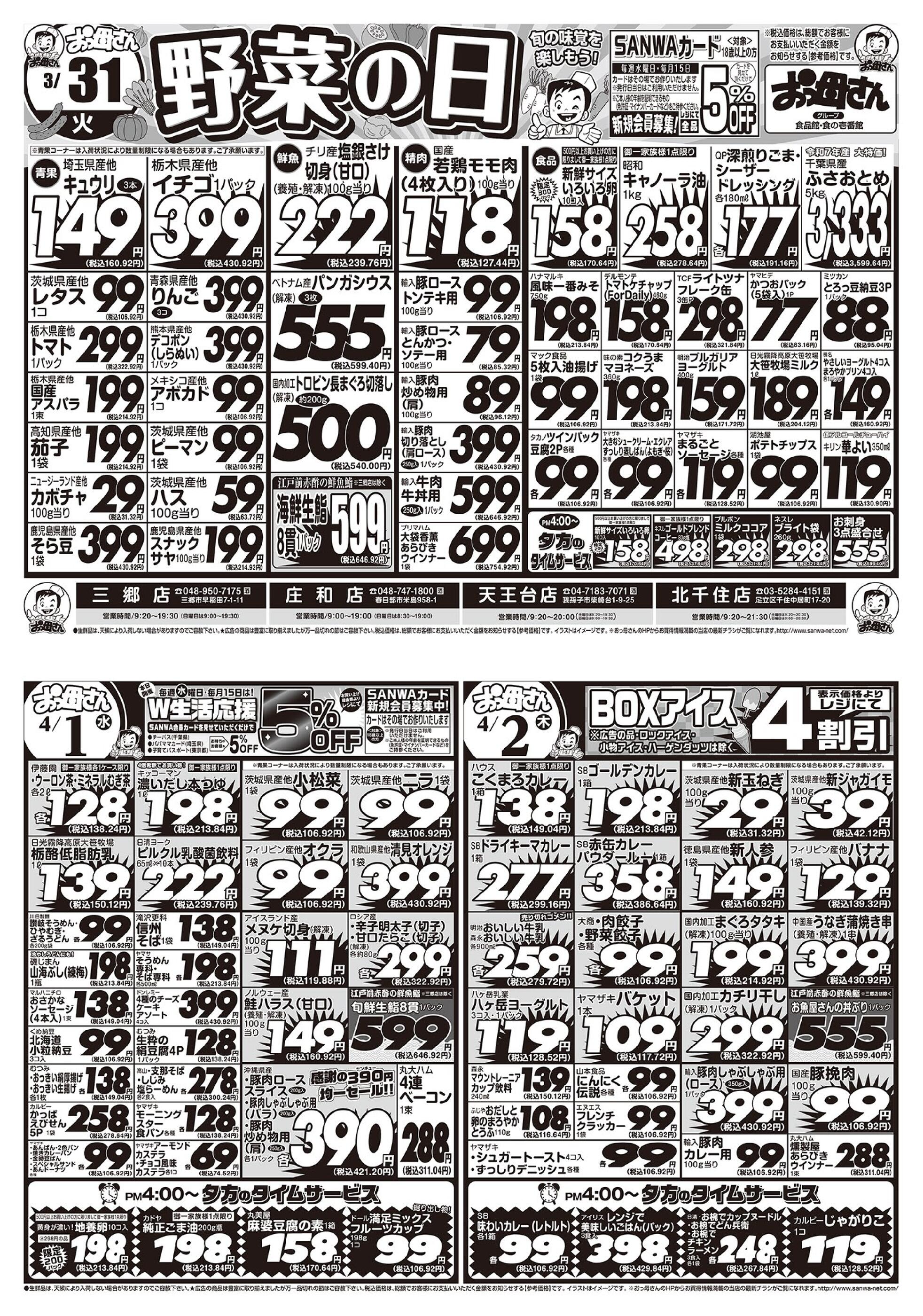 おっ母さん食品館三郷店今週のチラシ(2026年3月30日〜4月5日)