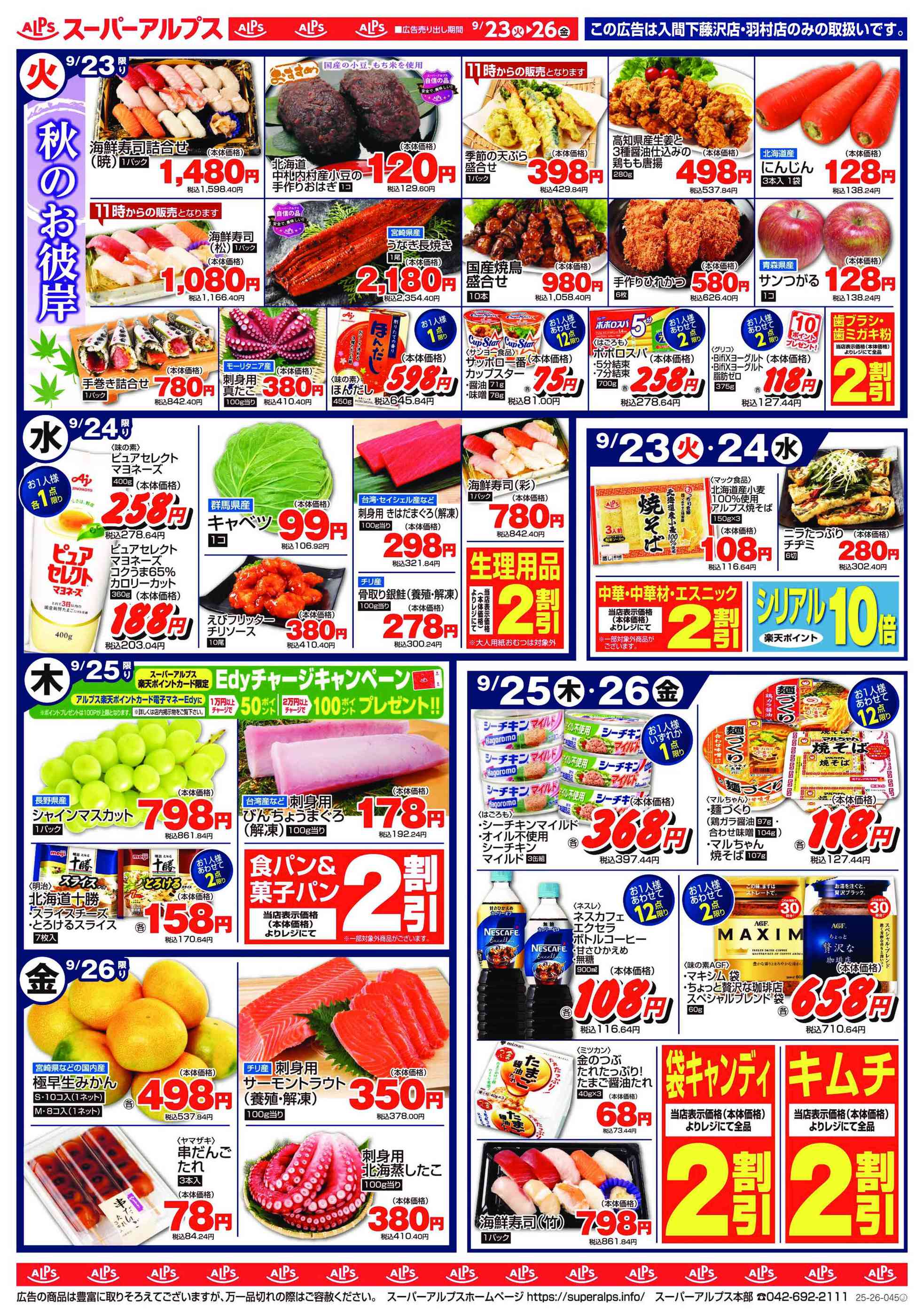 スーパーアルプス入間下藤沢店今週のチラシ(2025年9月29日〜10月5日)