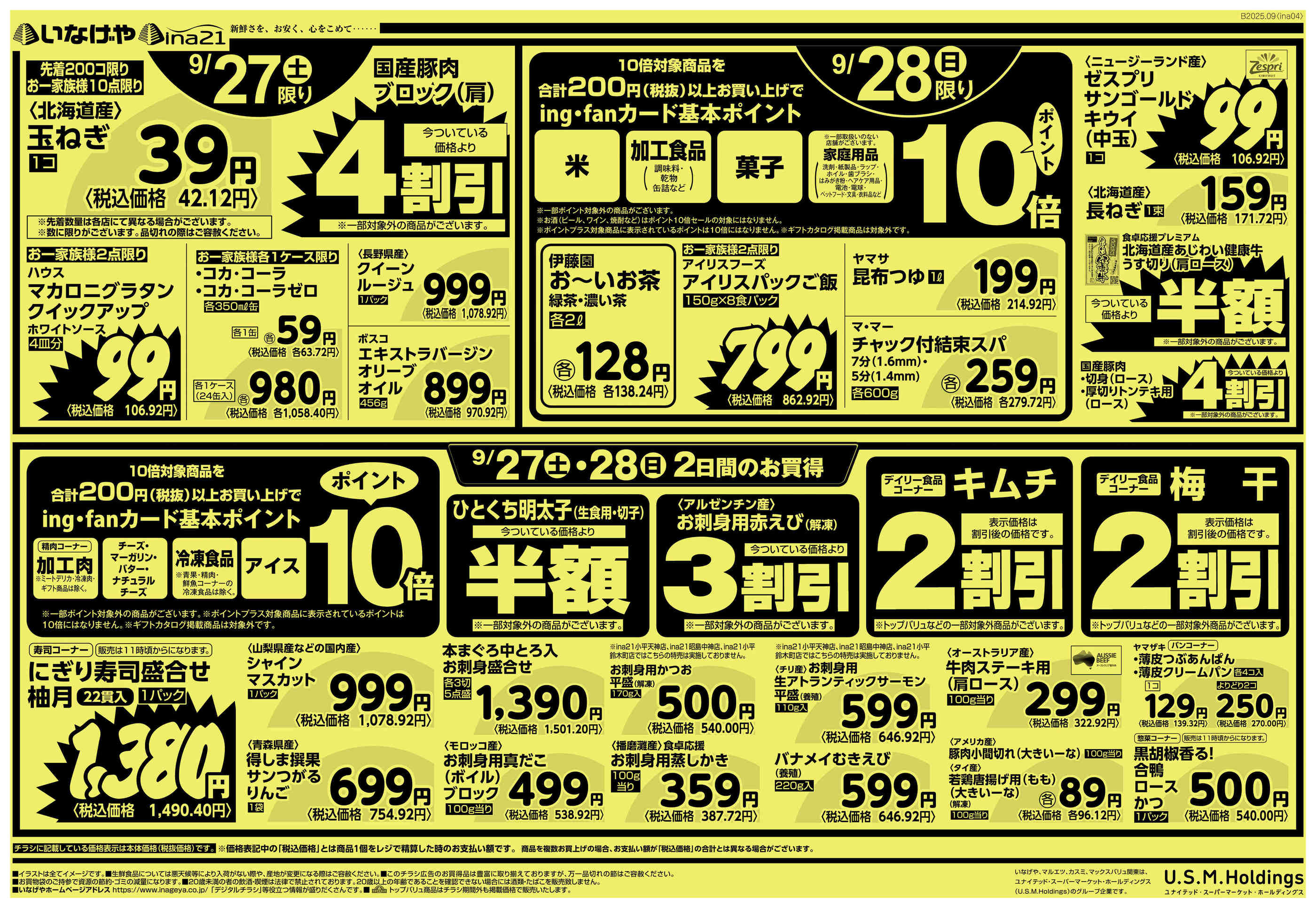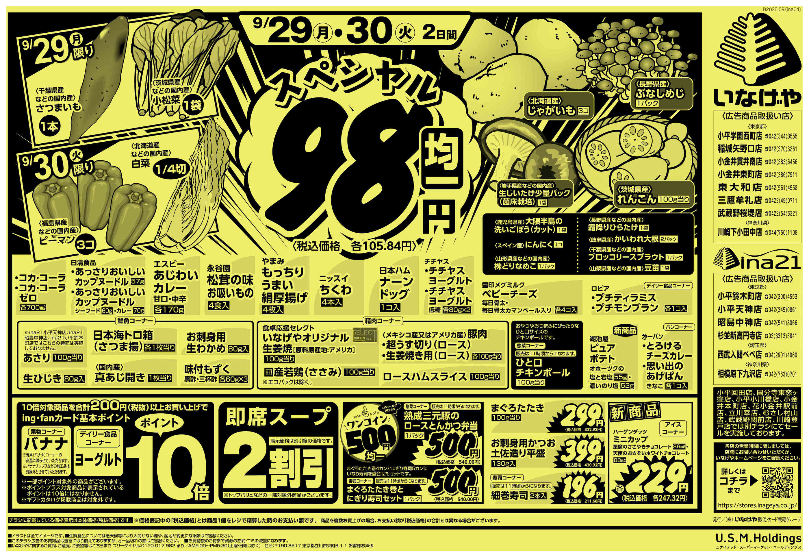 いなげやina21西武入間ペペ店今週のチラシ(2025年9月29日〜10月5日)