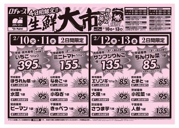 ※「店舗の掲載内容について」チラシガイドに掲載している情報は、独自に調査した内容及びユーザーから頂いた情報を掲載しています。お気づきの点がございましたら「お問い合わせ」よりご連絡ください。また店舗の営業状況、商品に関するお問い合わせは直接店舗事業者にご確認ください。