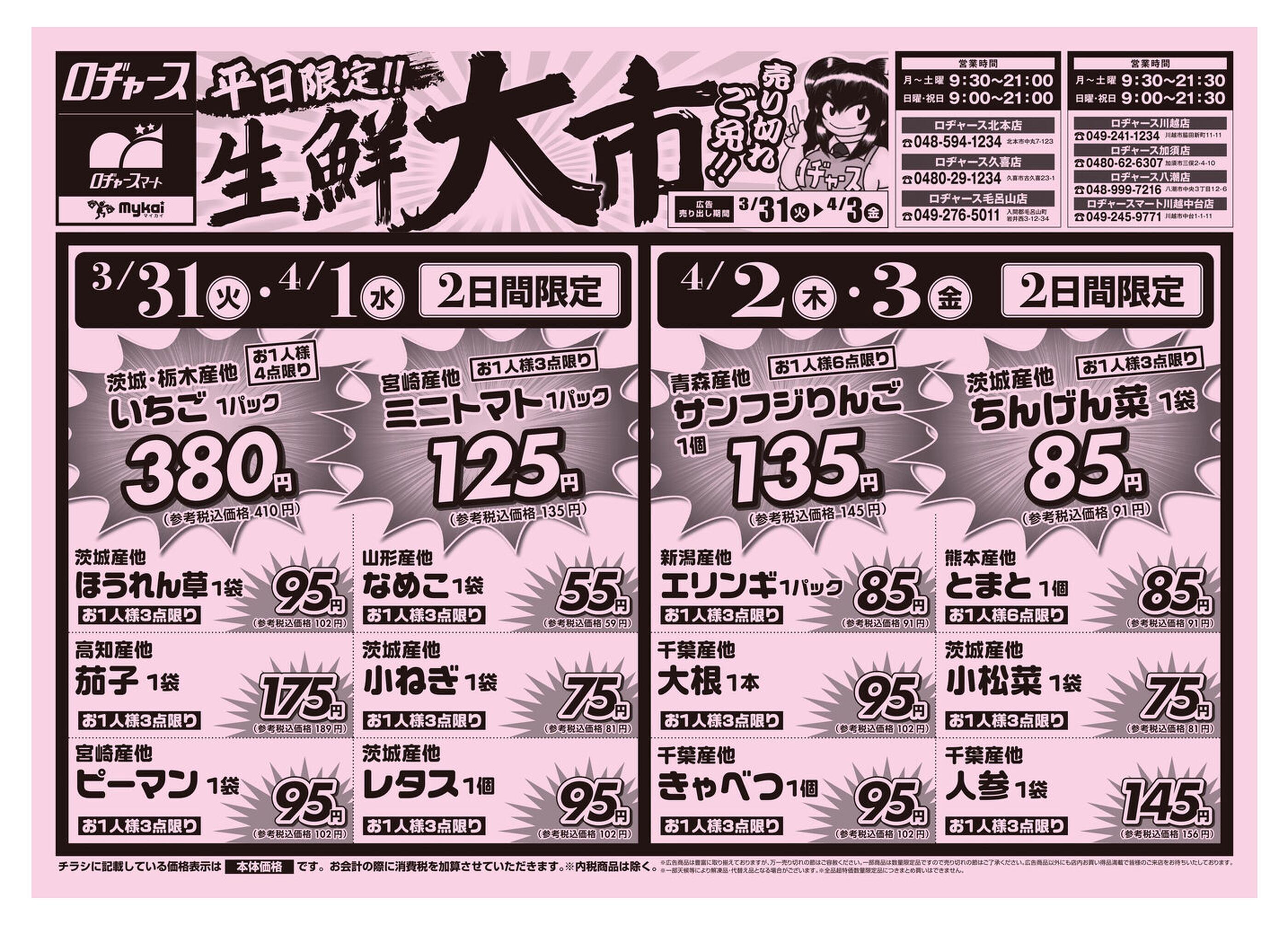 ロヂャース北本店今週のチラシ(2026年3月30日〜4月5日)