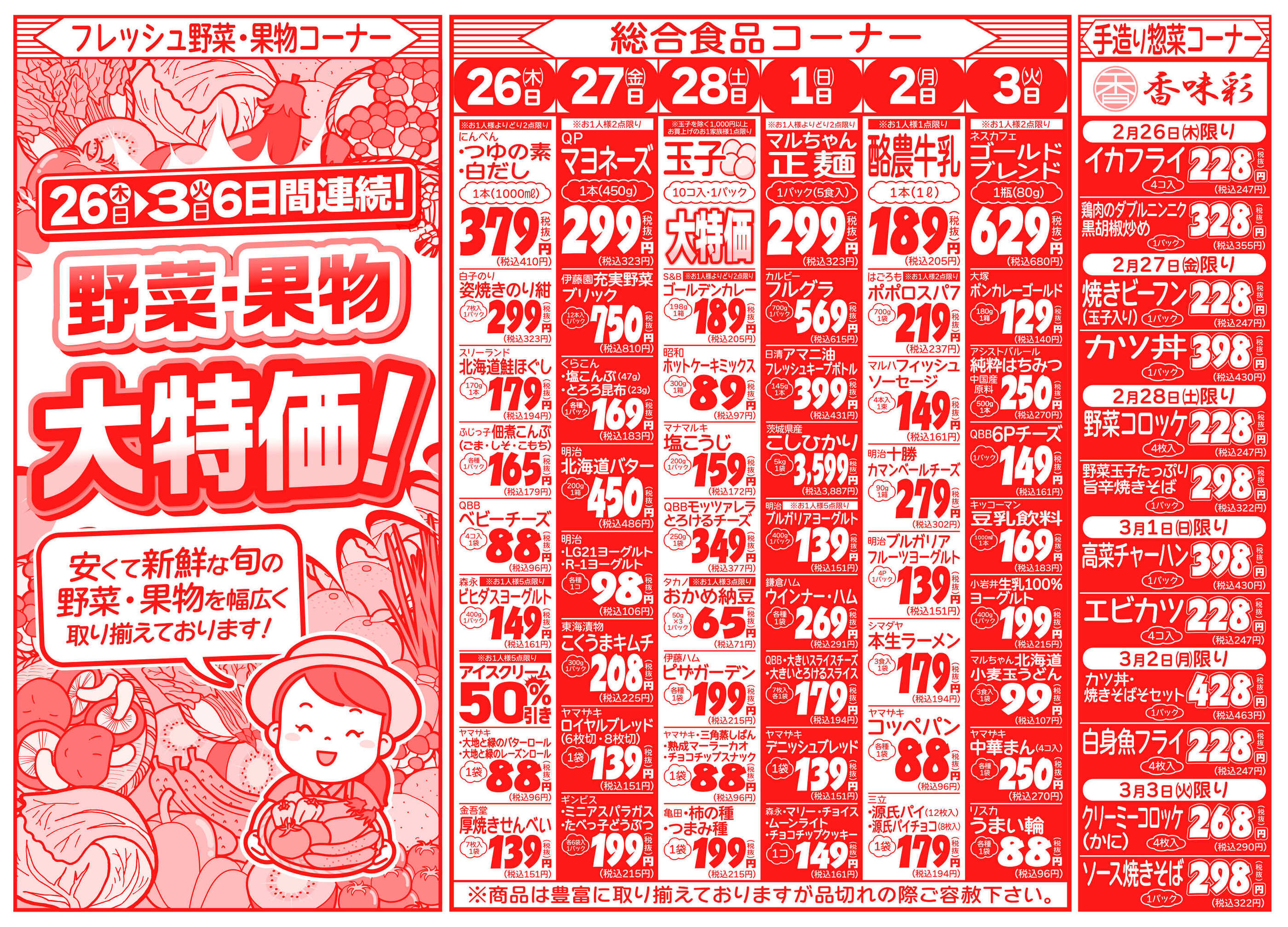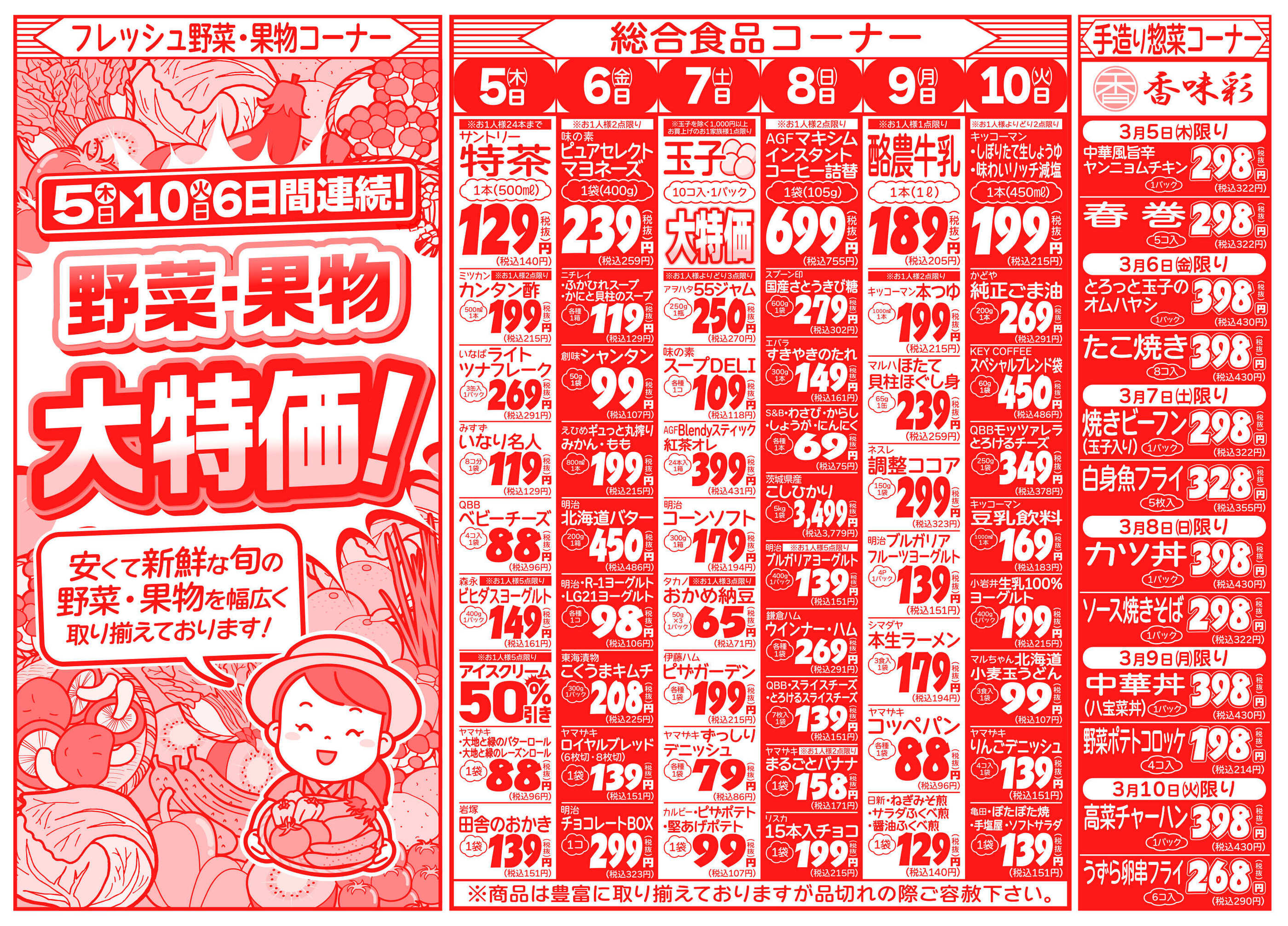 田中青果鶴瀬店今週のチラシ(2026年3月9日〜3月15日)