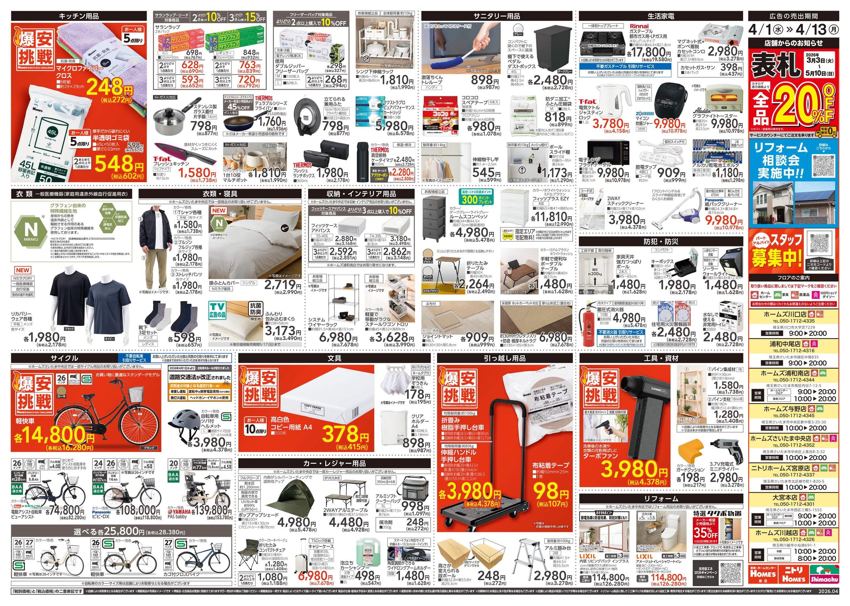 島忠ホームズ川口店今週のチラシ(2026年4月13日〜4月19日)