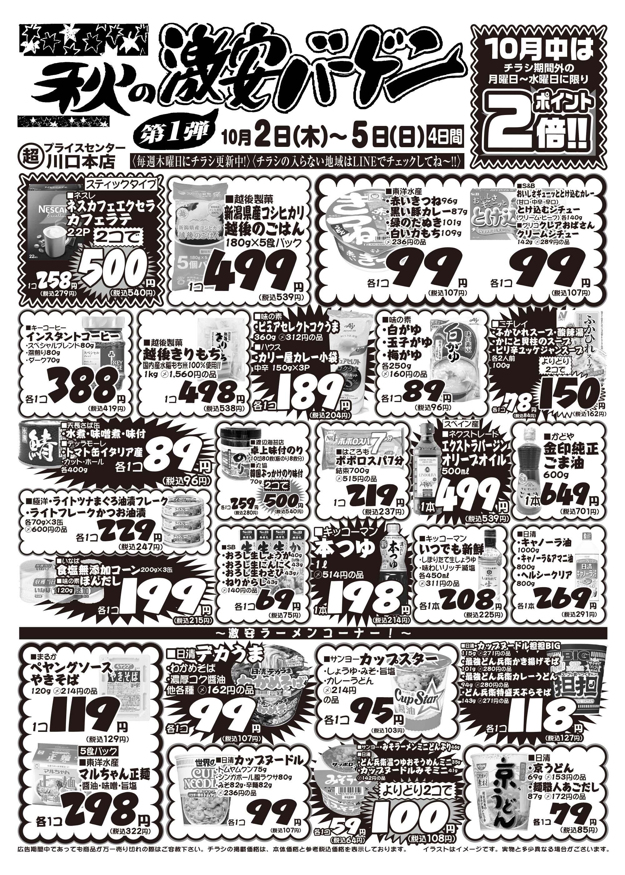 超プライスセンター川口本店今週のチラシ(2025年9月29日〜10月5日)
