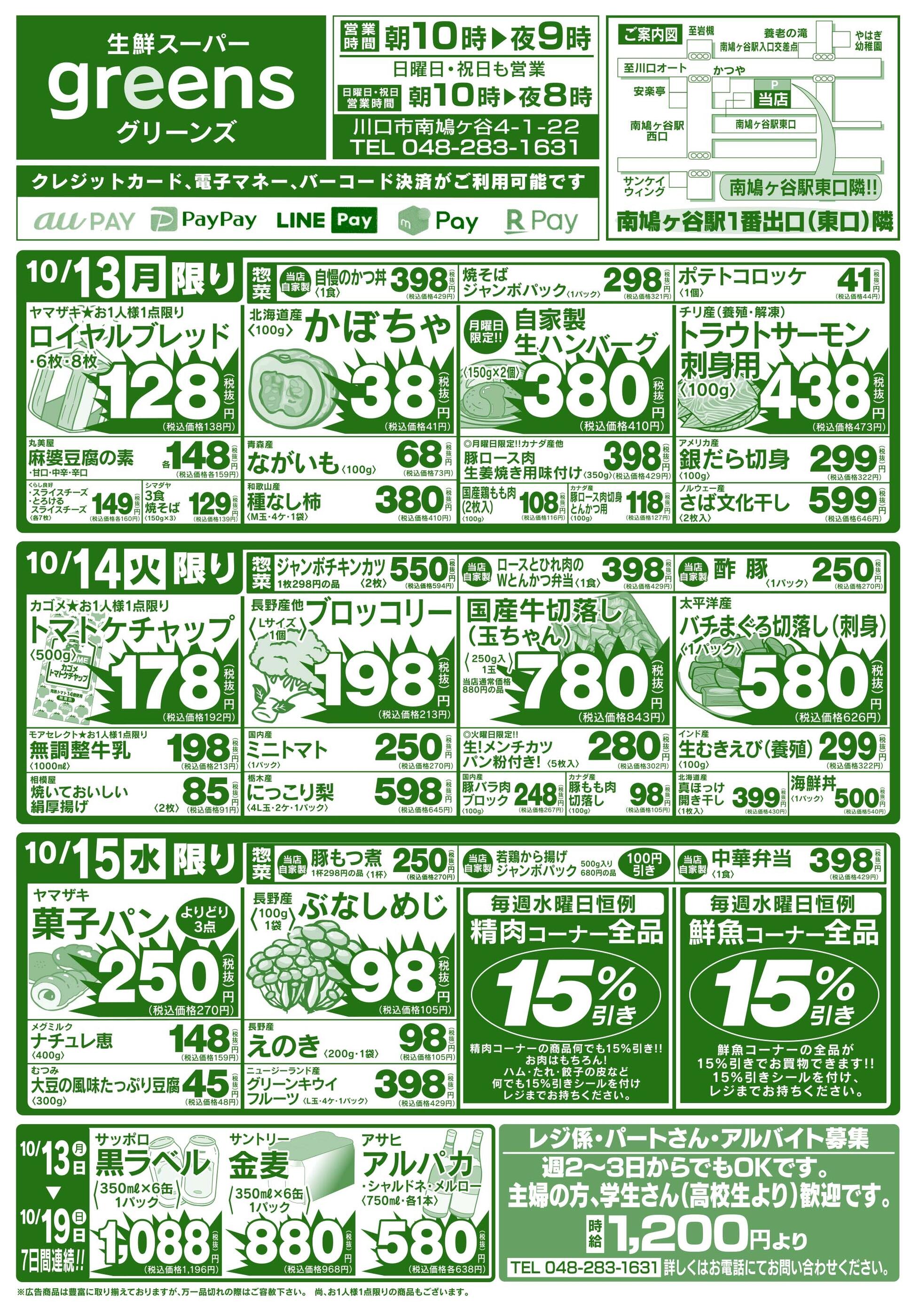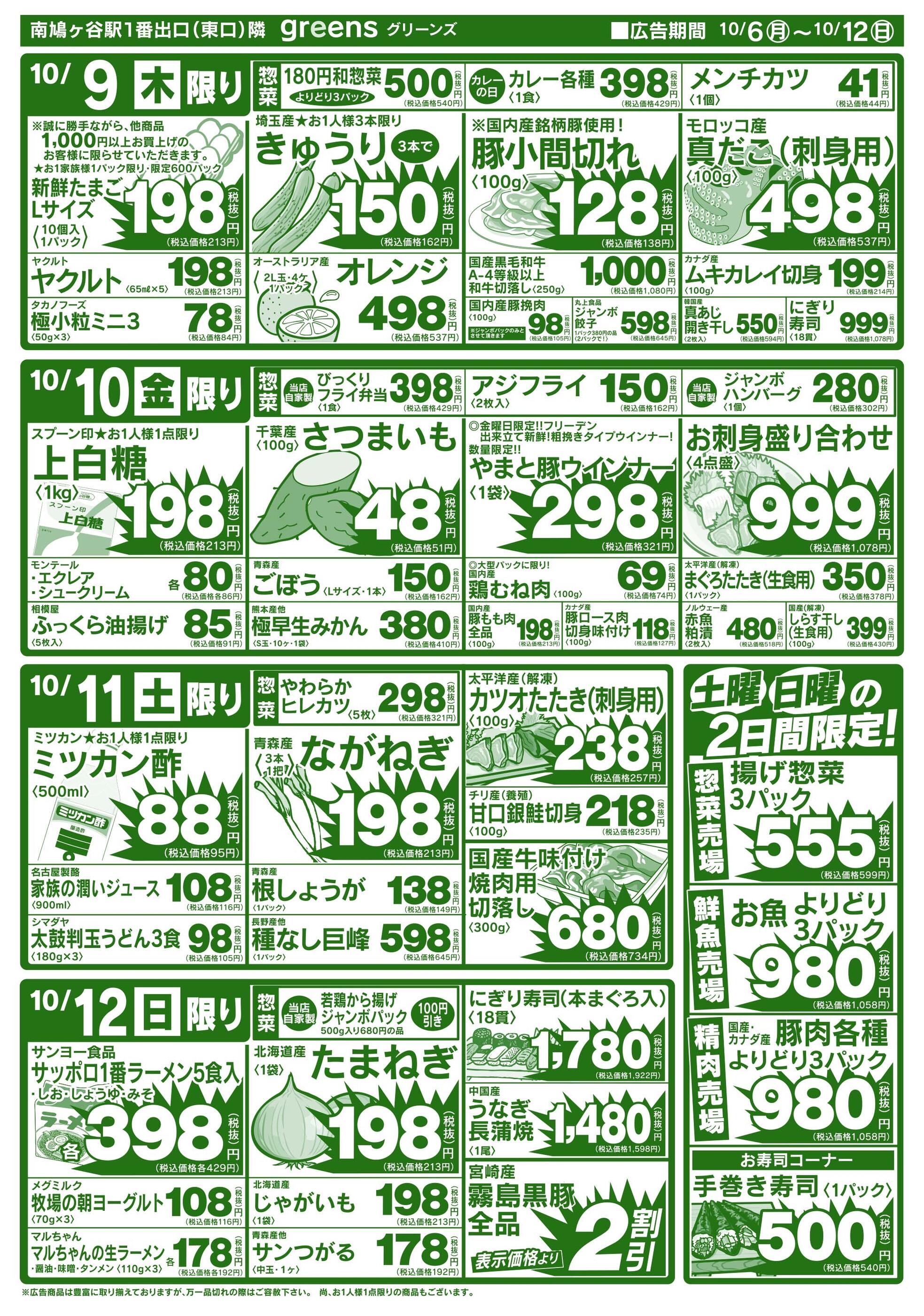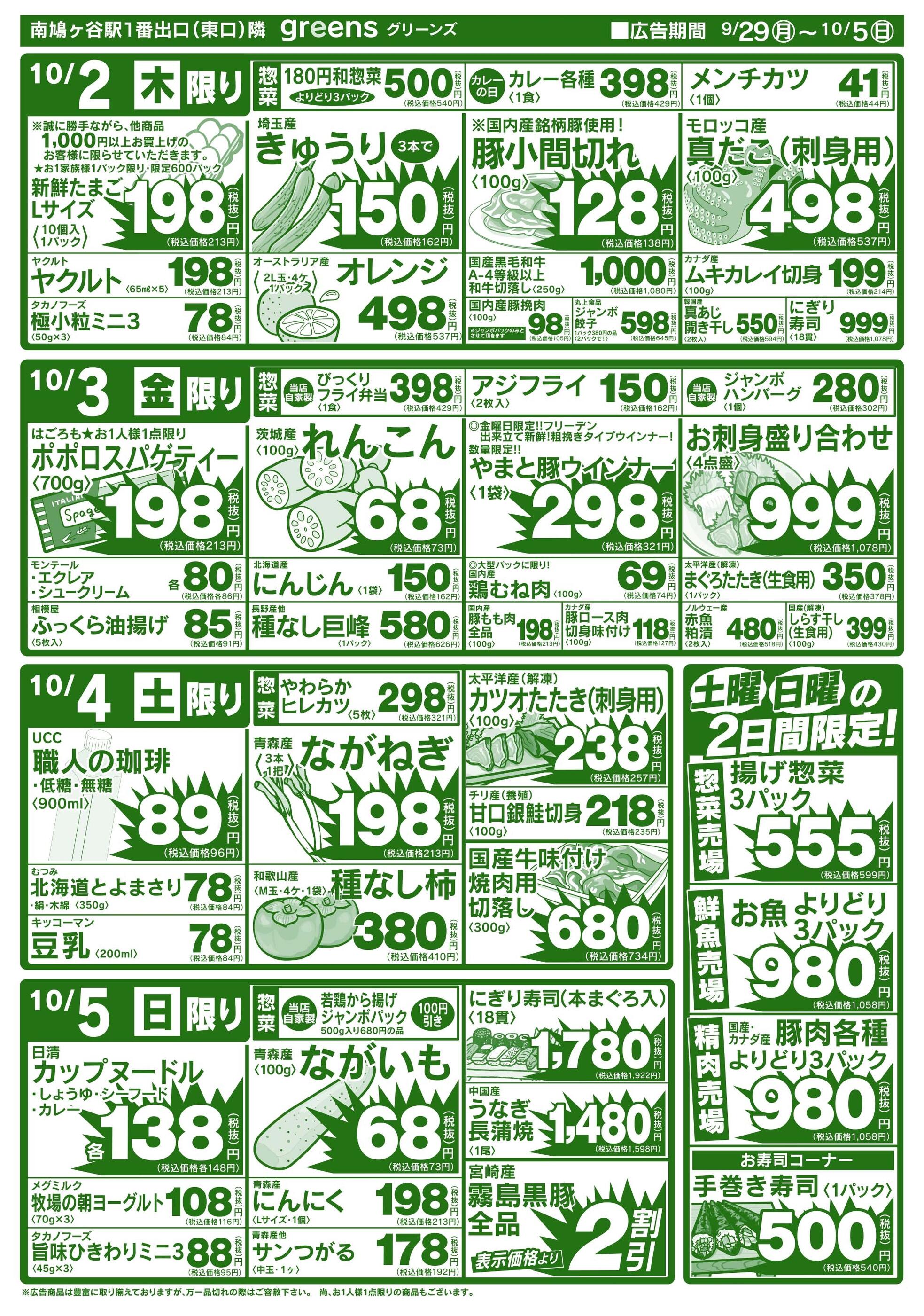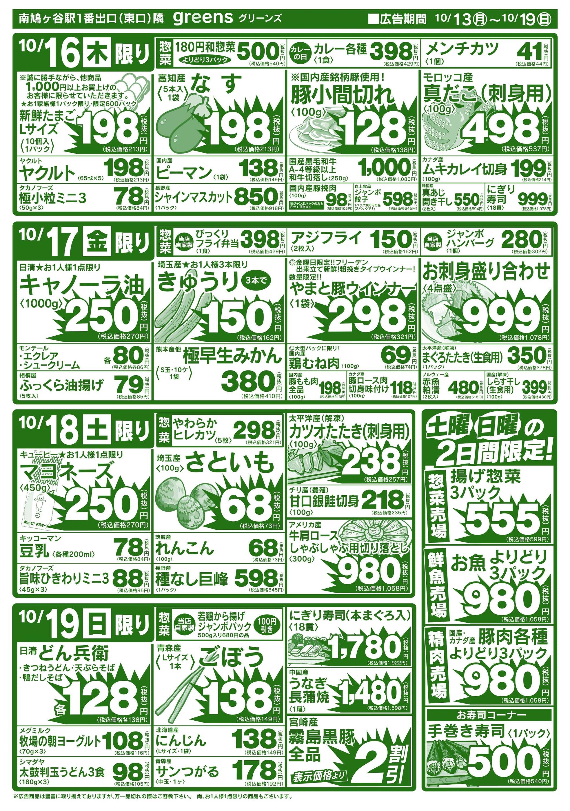 生鮮スーパーグリーンズ今週のチラシ(2025年10月13日〜10月19日)