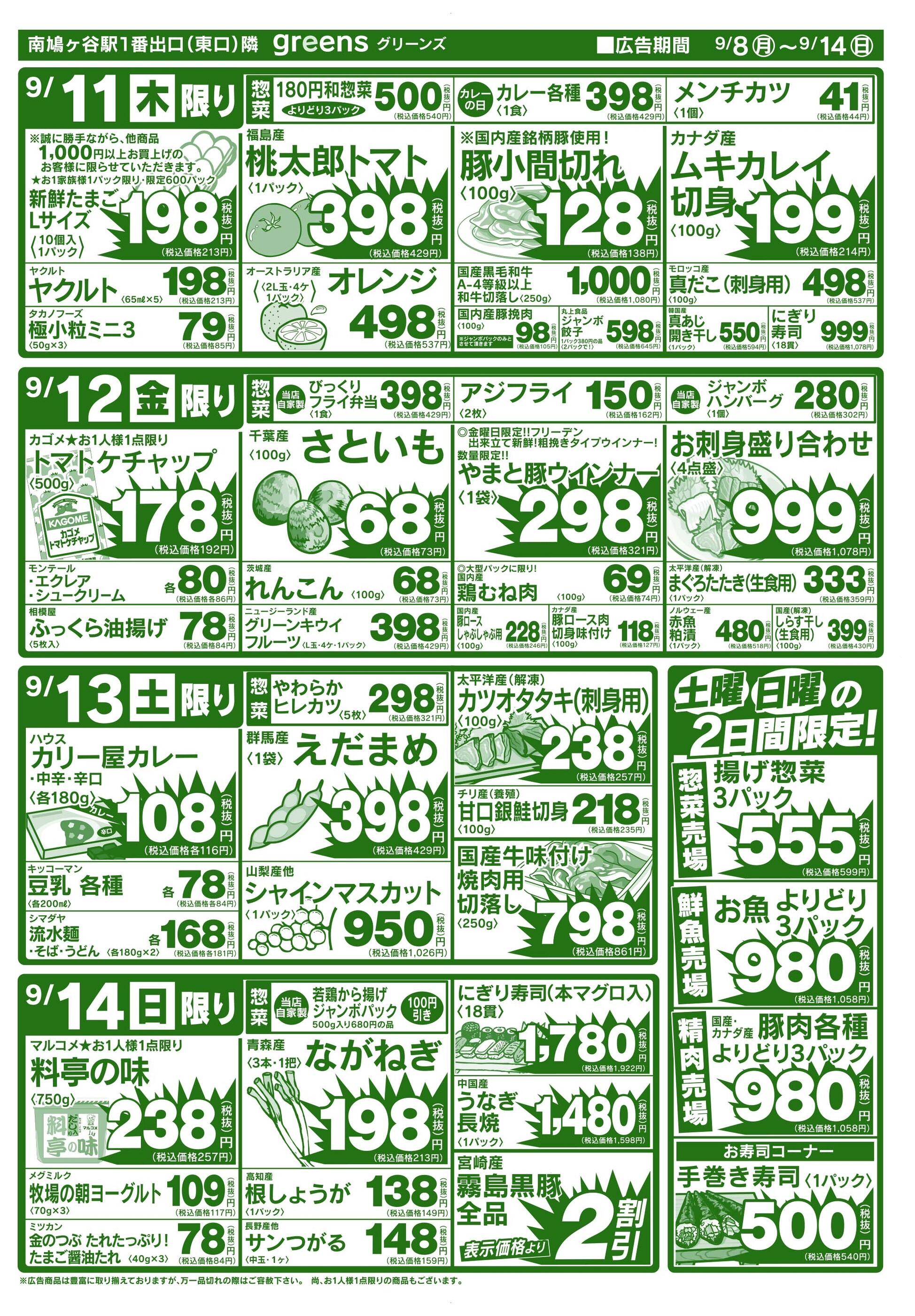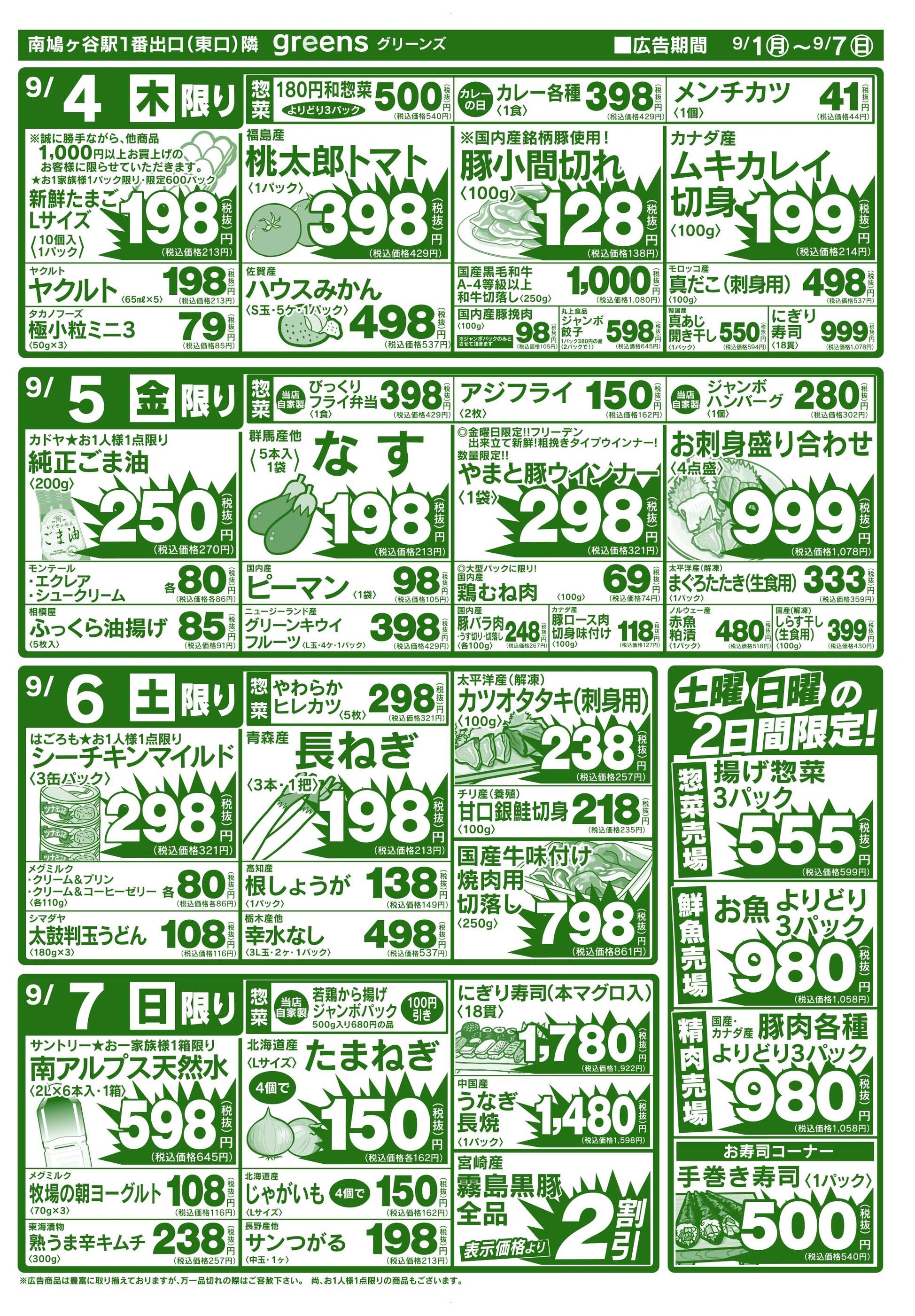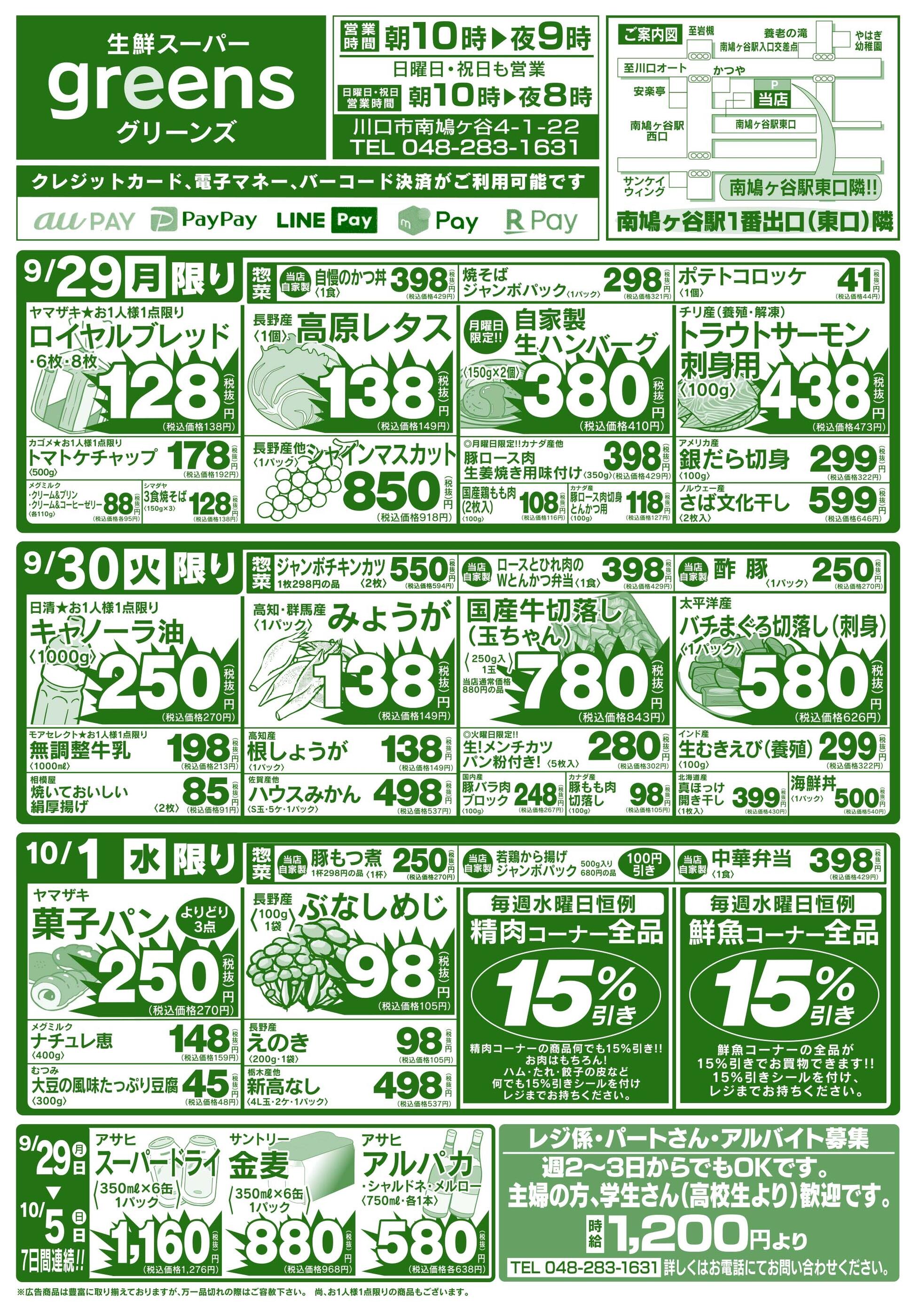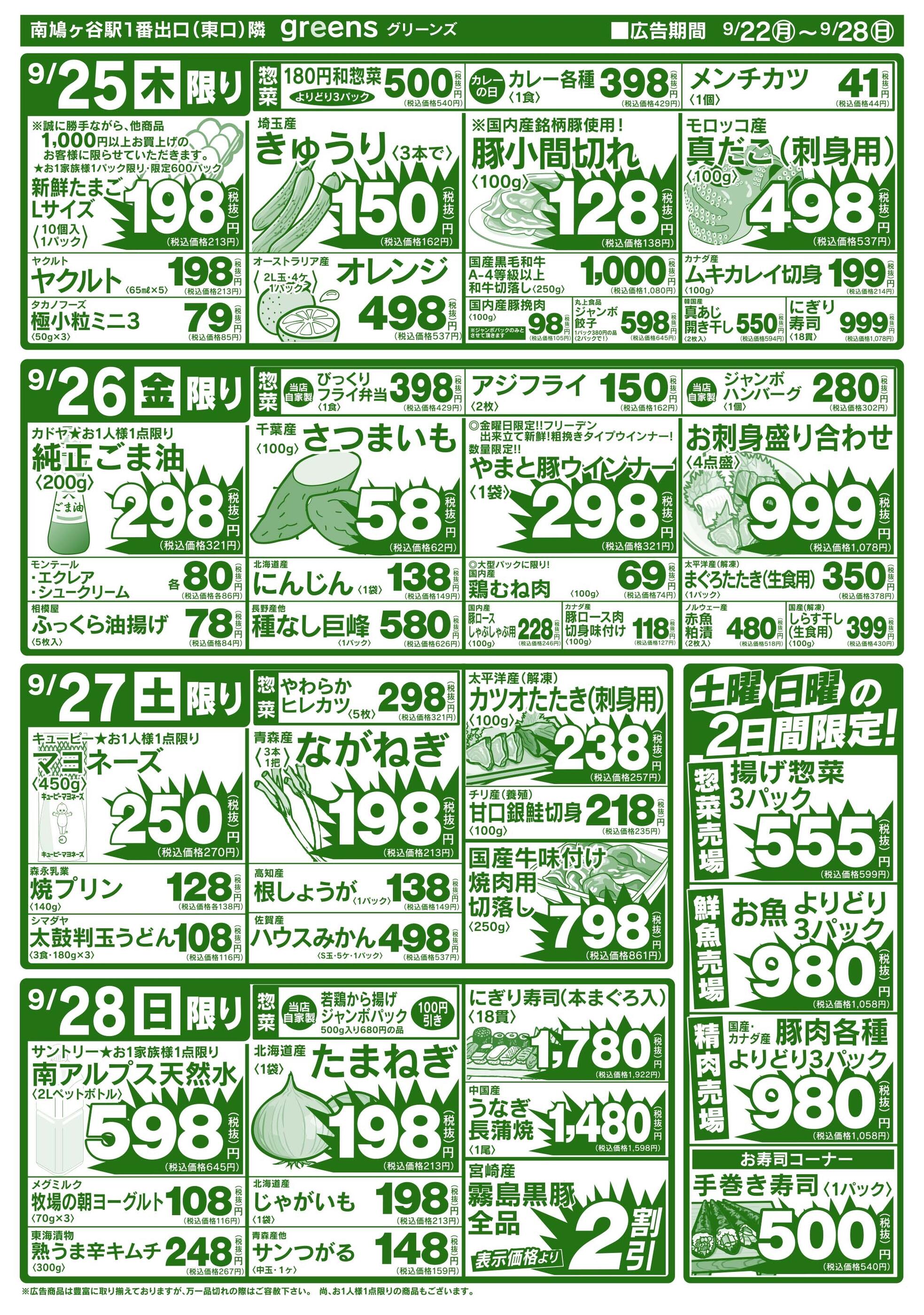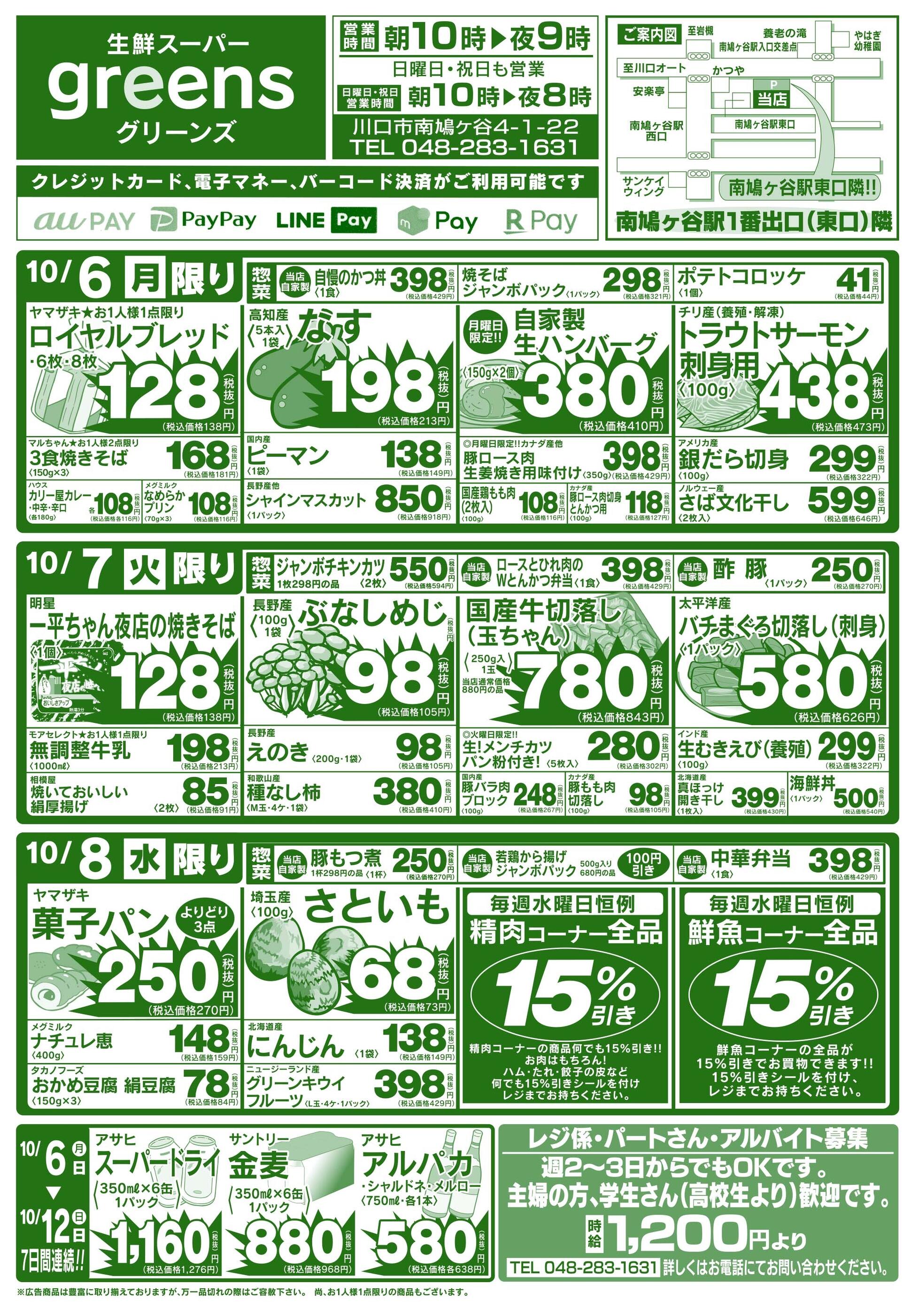 生鮮スーパーグリーンズ今週のチラシ(2025年10月13日〜10月19日)