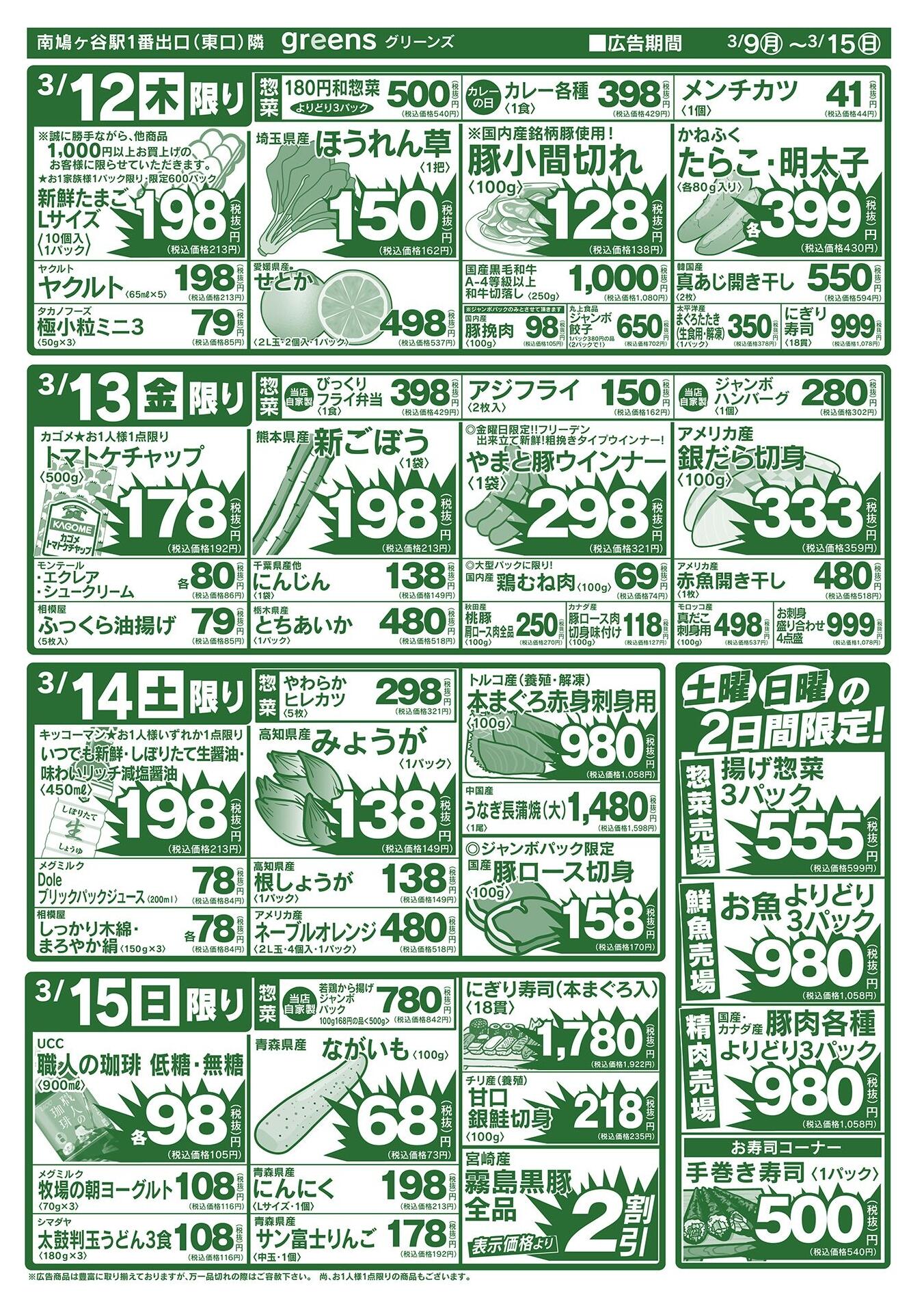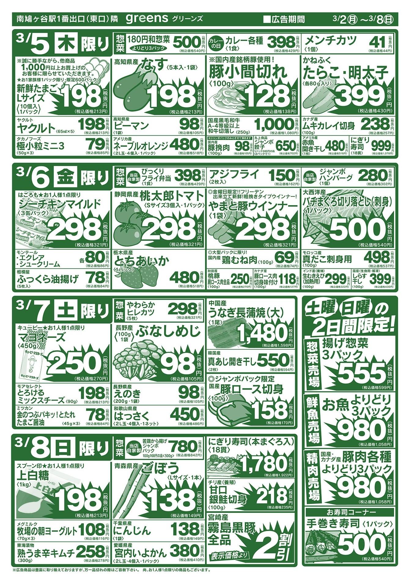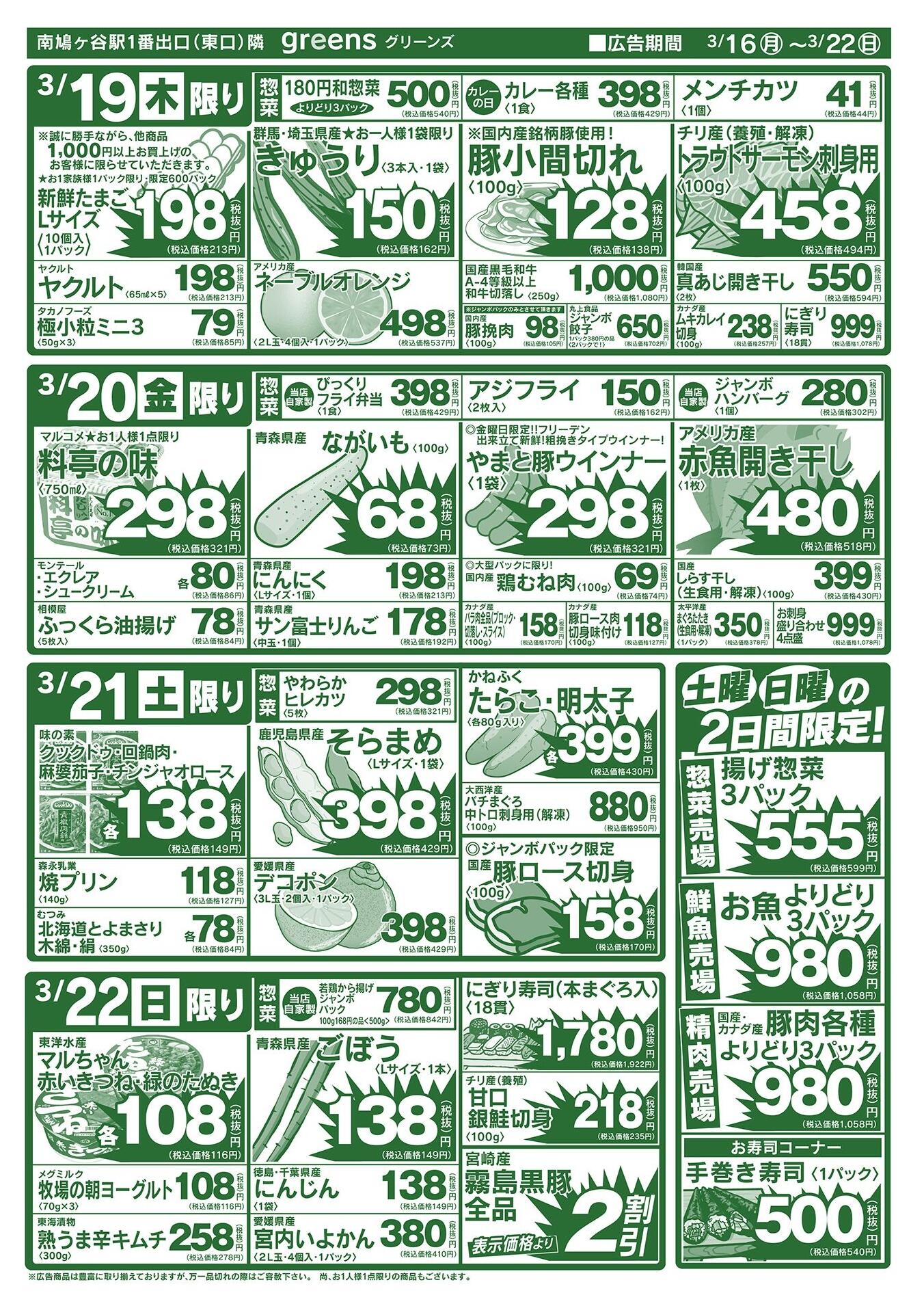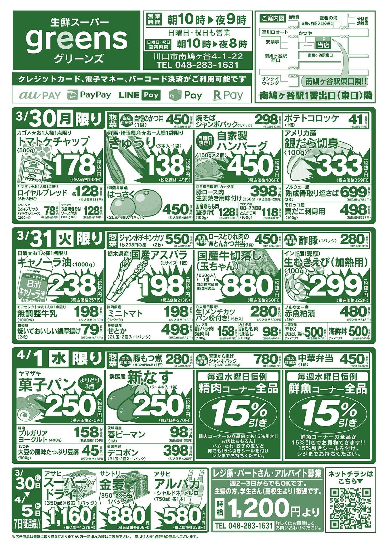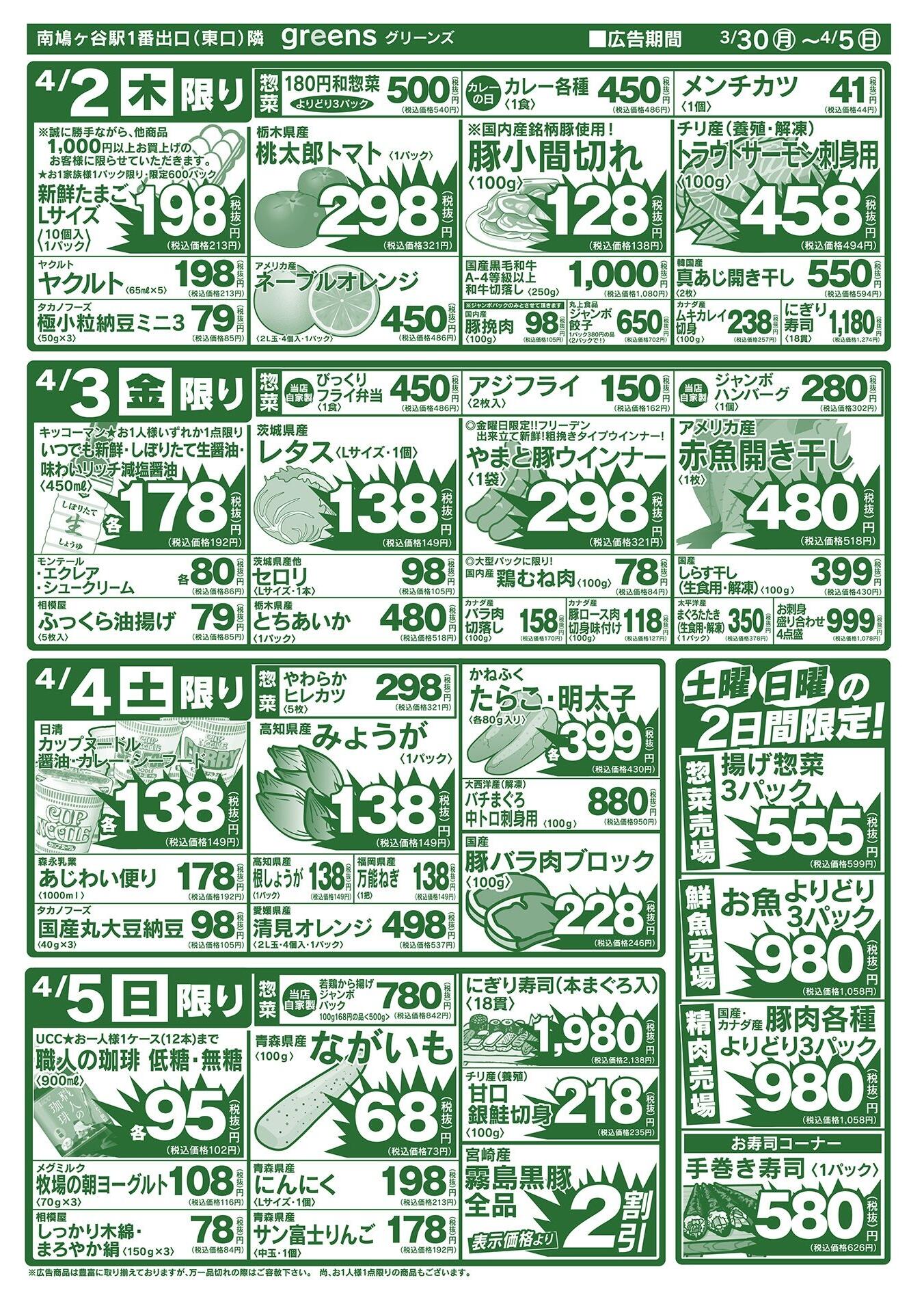 生鮮スーパーグリーンズ今週のチラシ(2026年3月30日〜4月5日)
