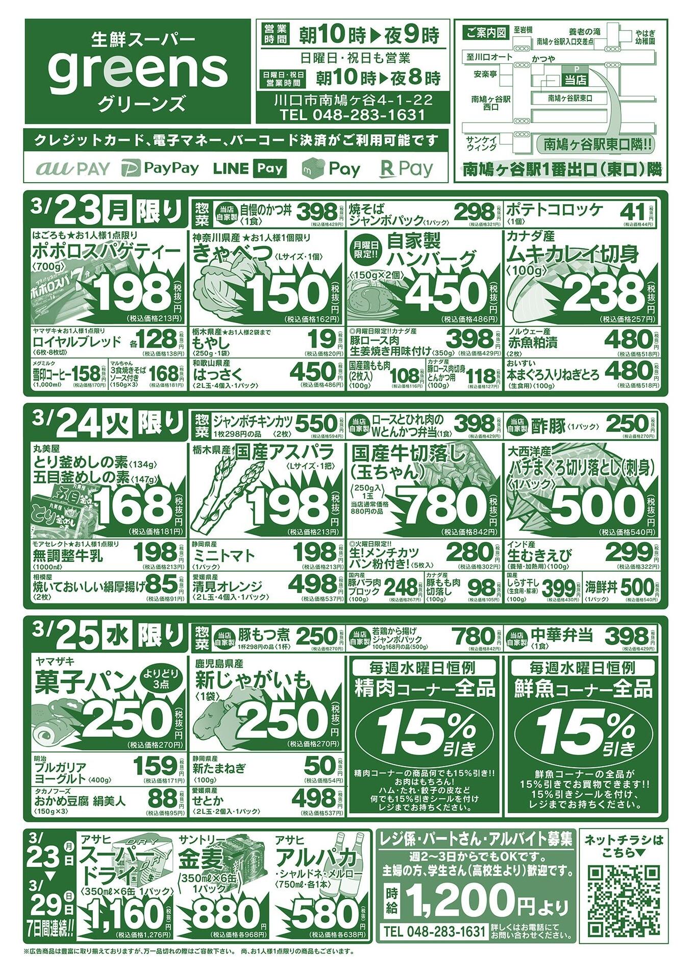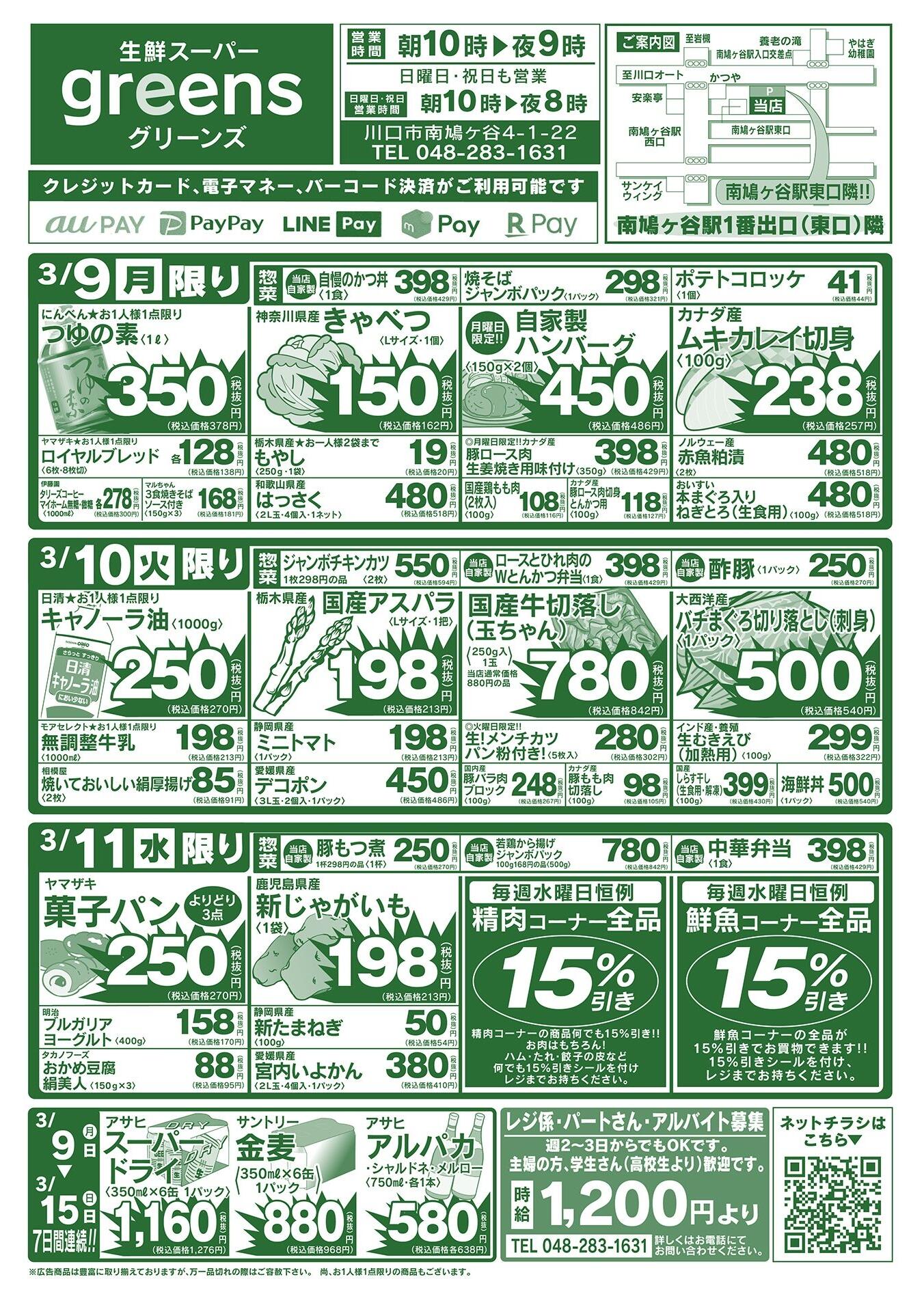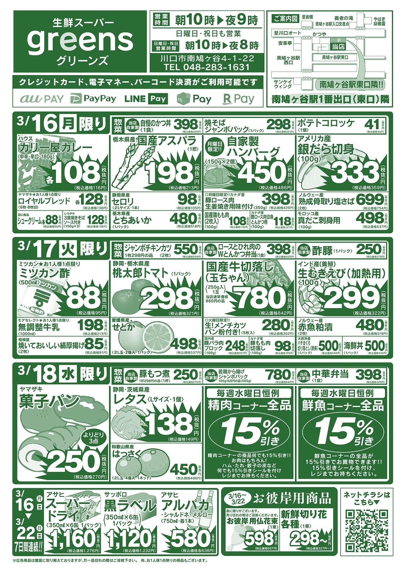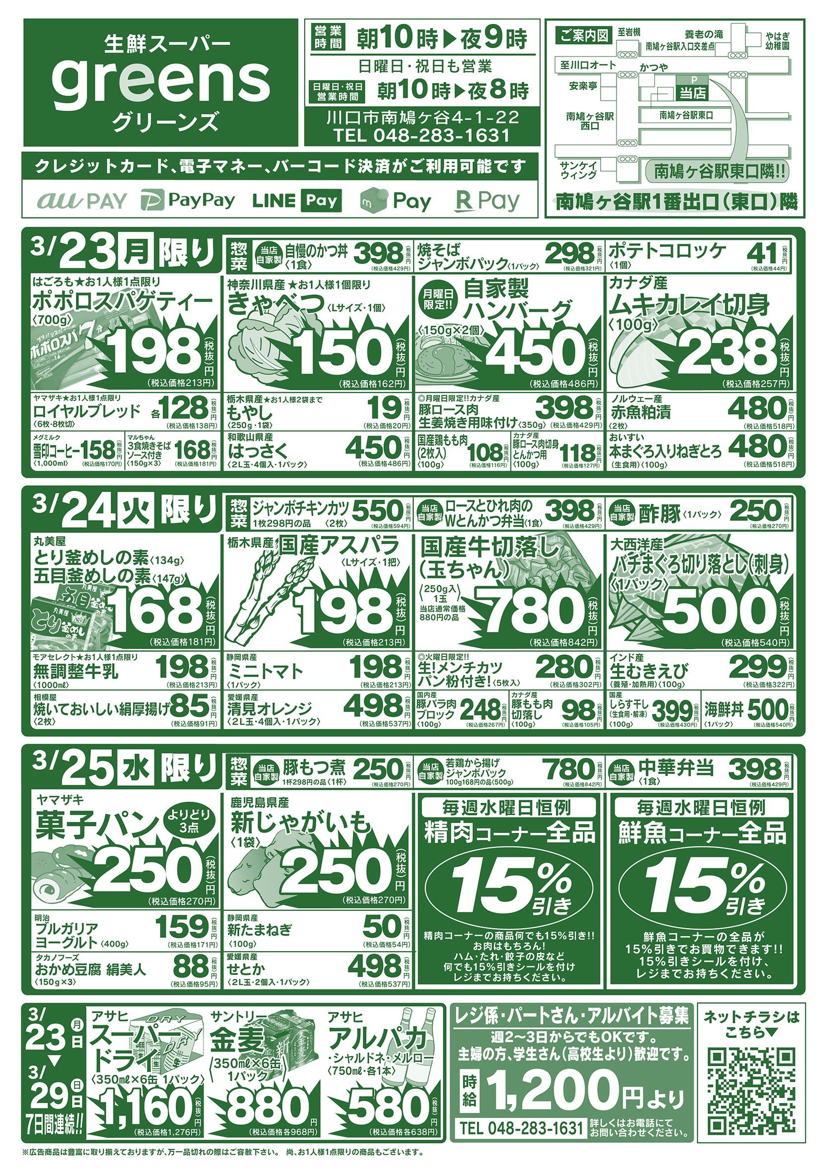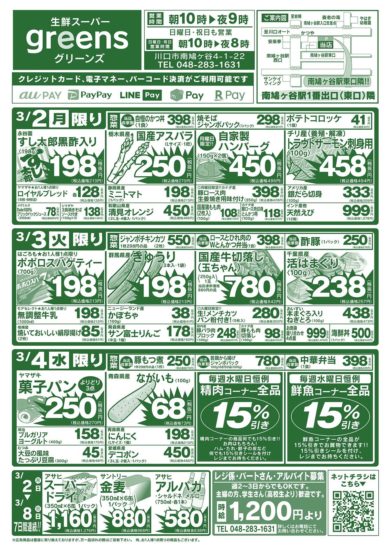生鮮スーパーグリーンズ今週のチラシ(2026年3月30日〜4月5日)