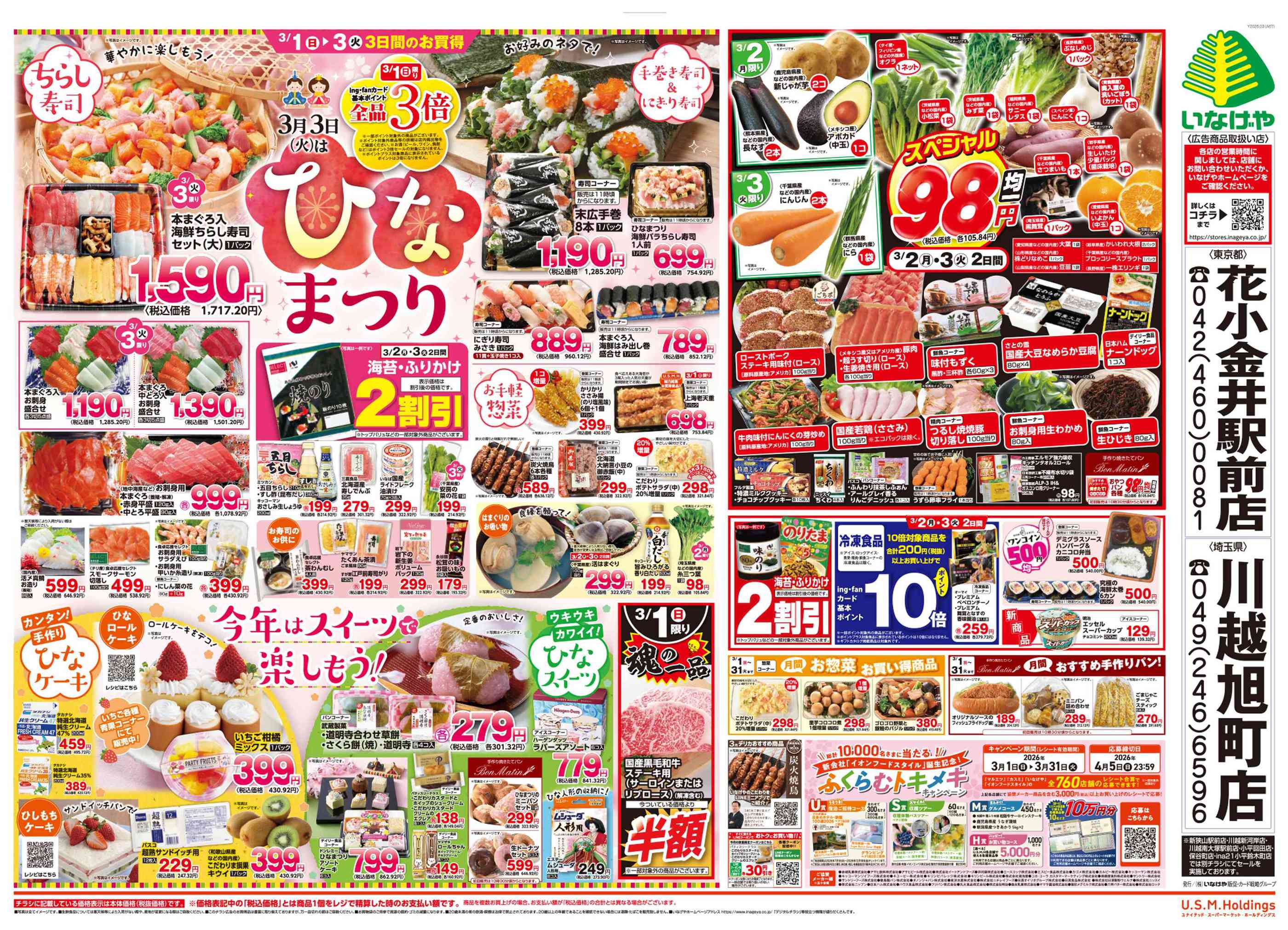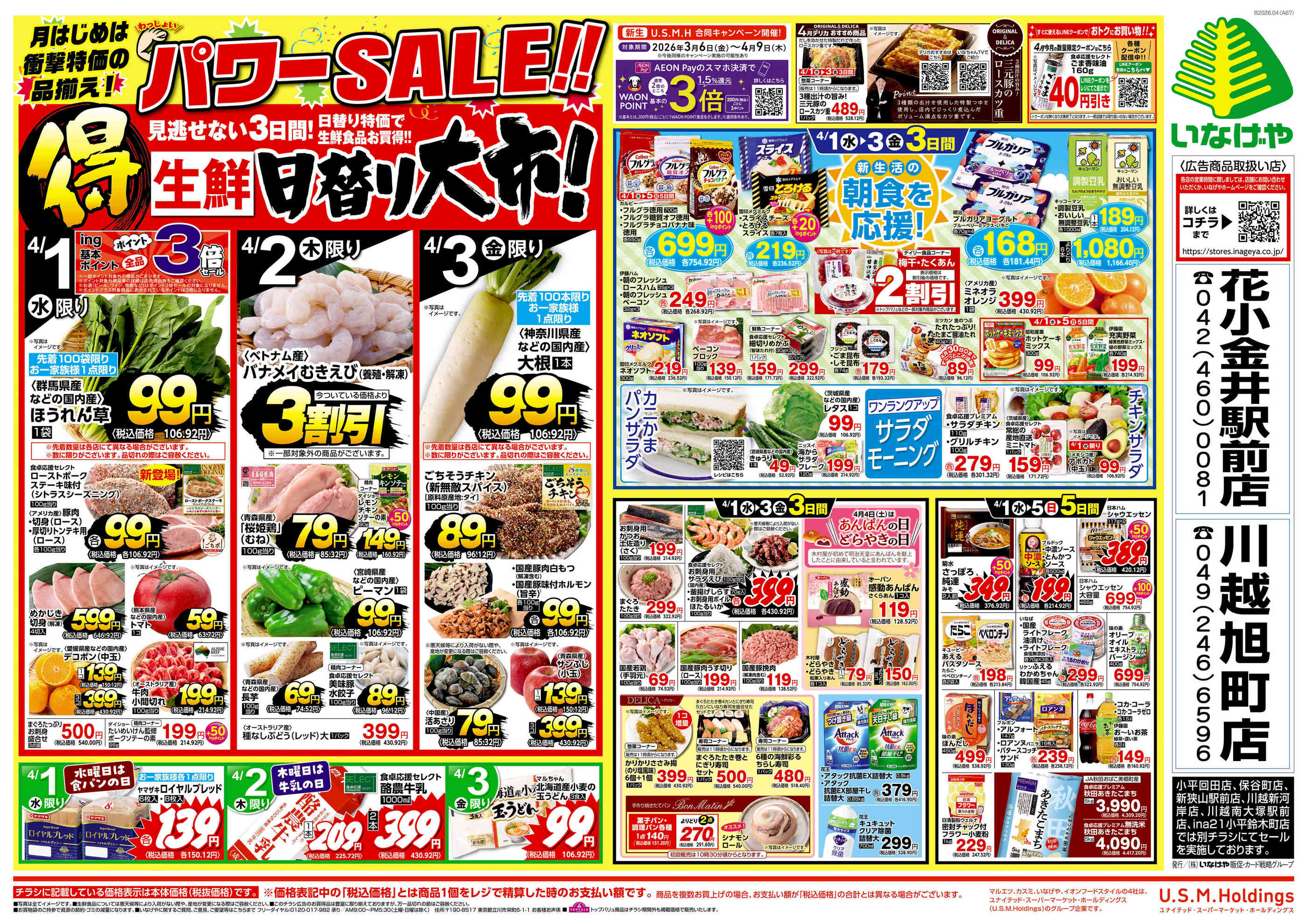 いなげや川越旭町店今週のチラシ(2026年3月30日〜4月5日)