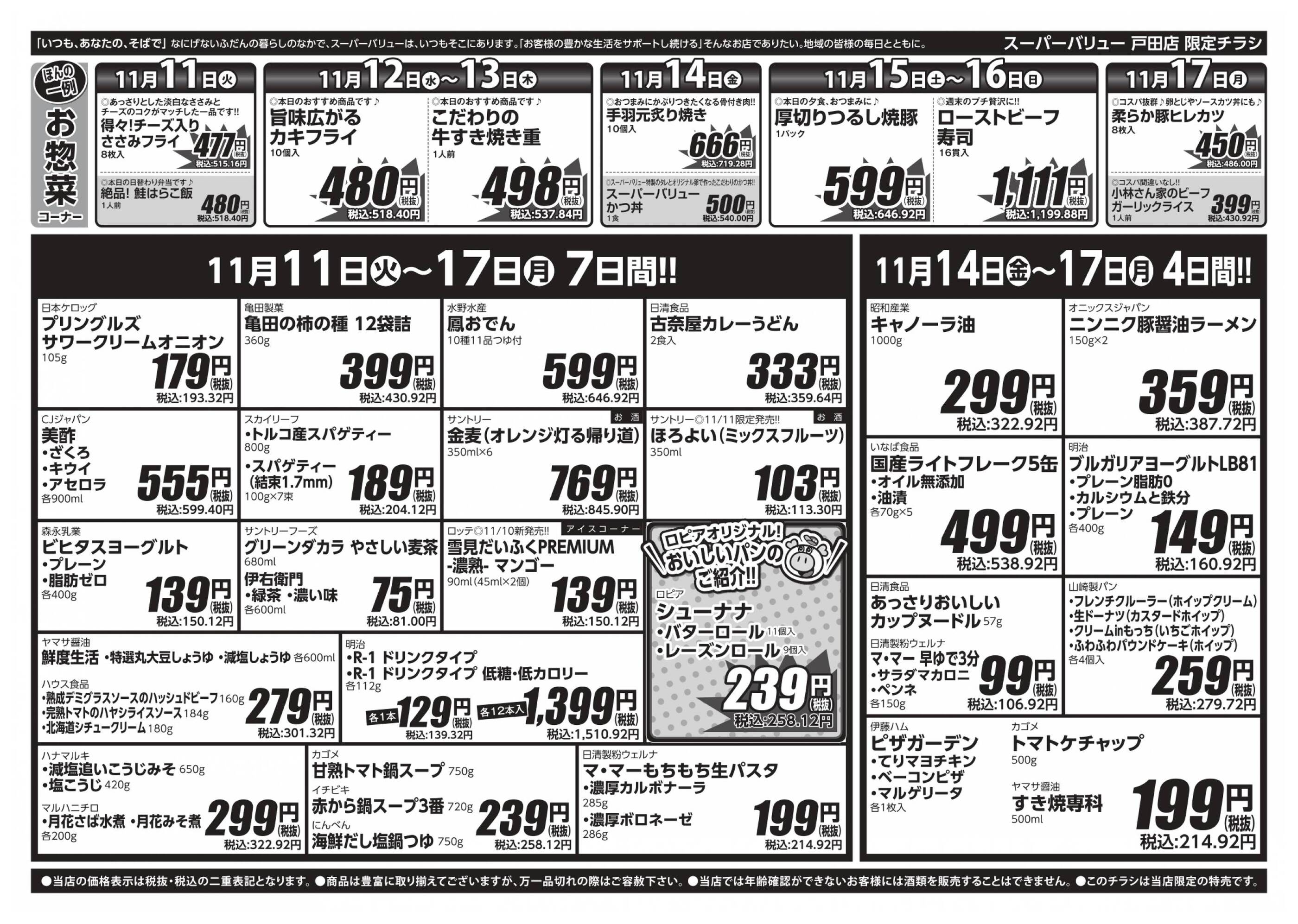 スーパーバリュー戸田店今週のチラシ(2025年11月10日〜11月16日)