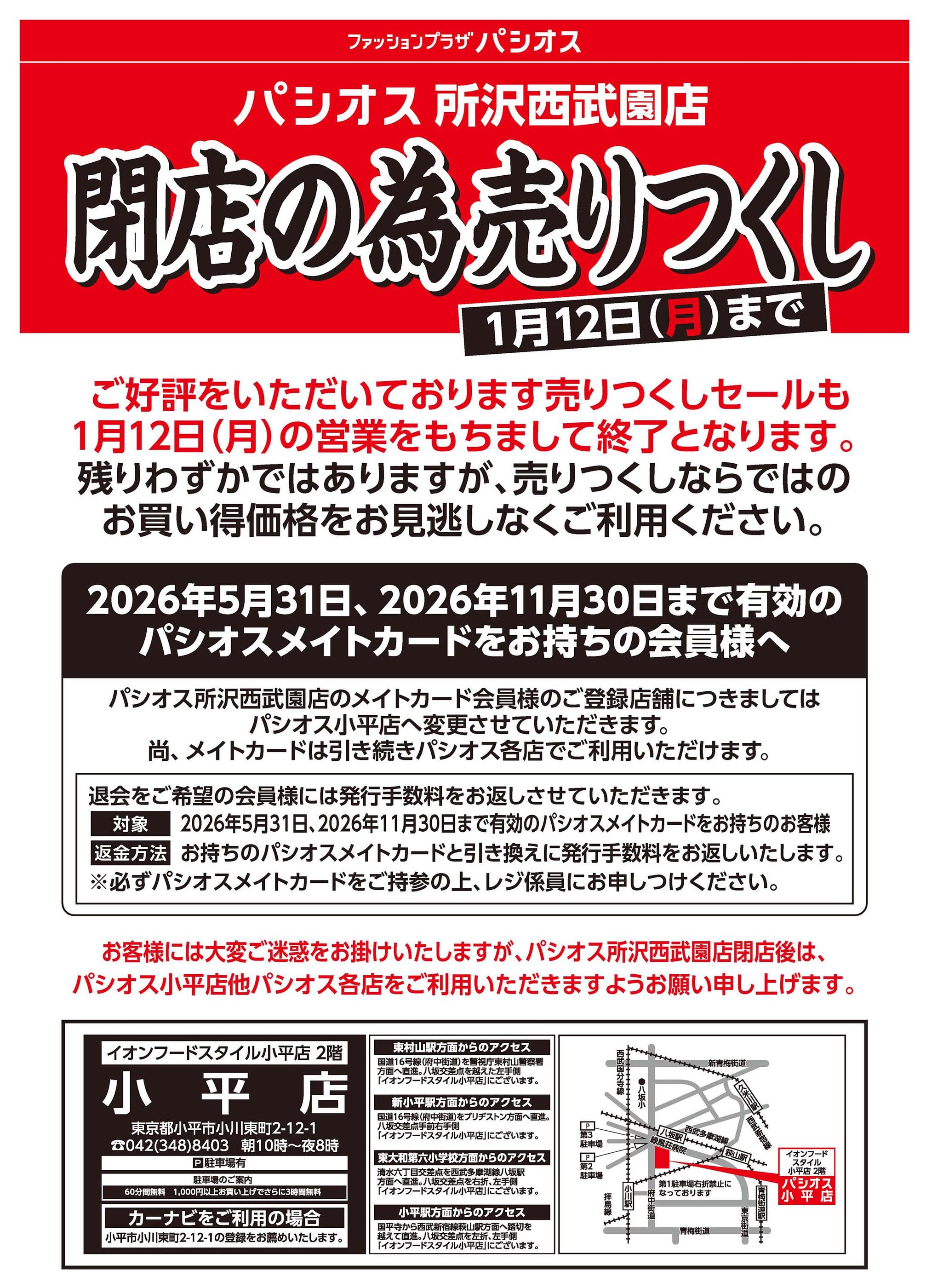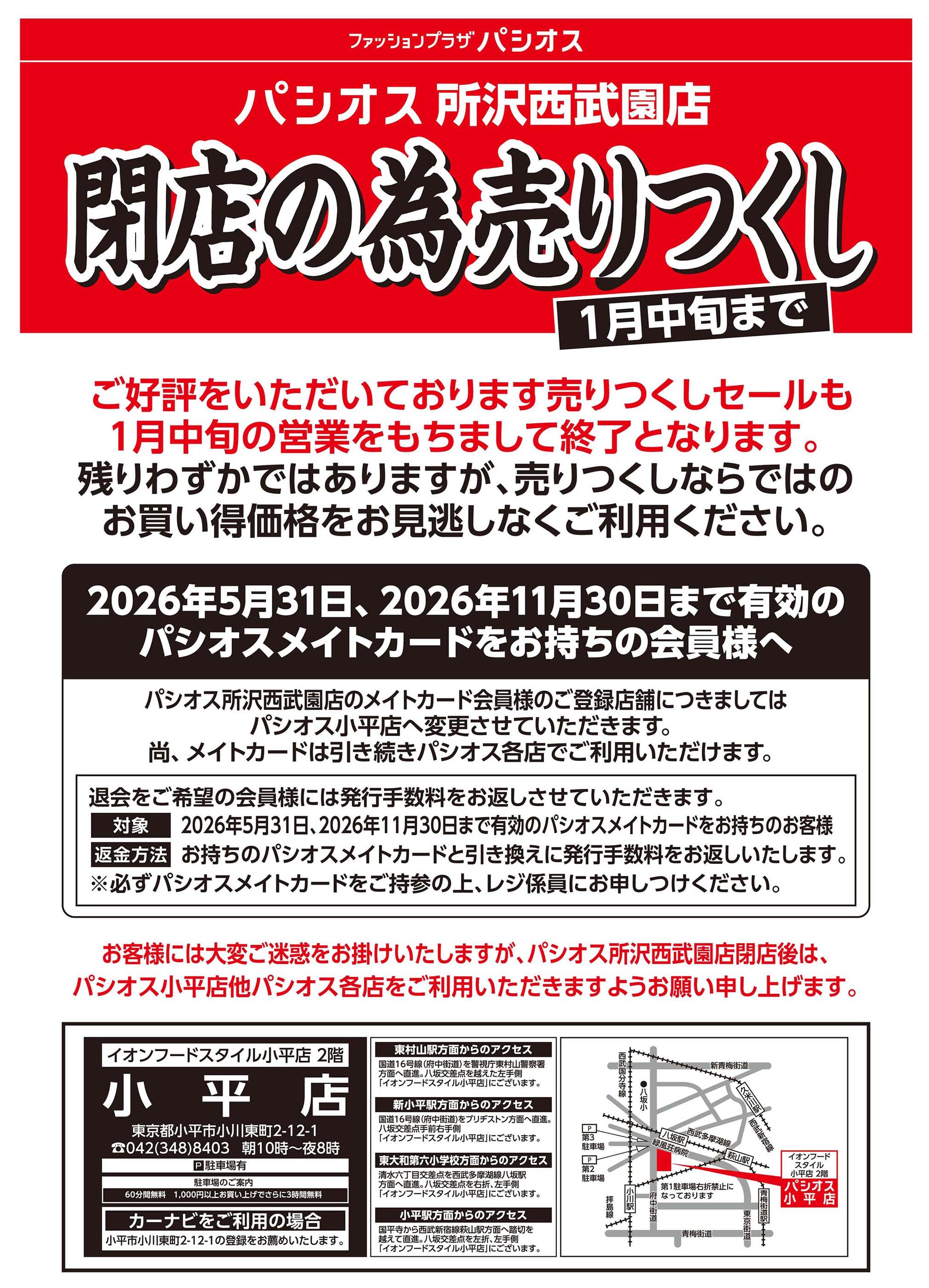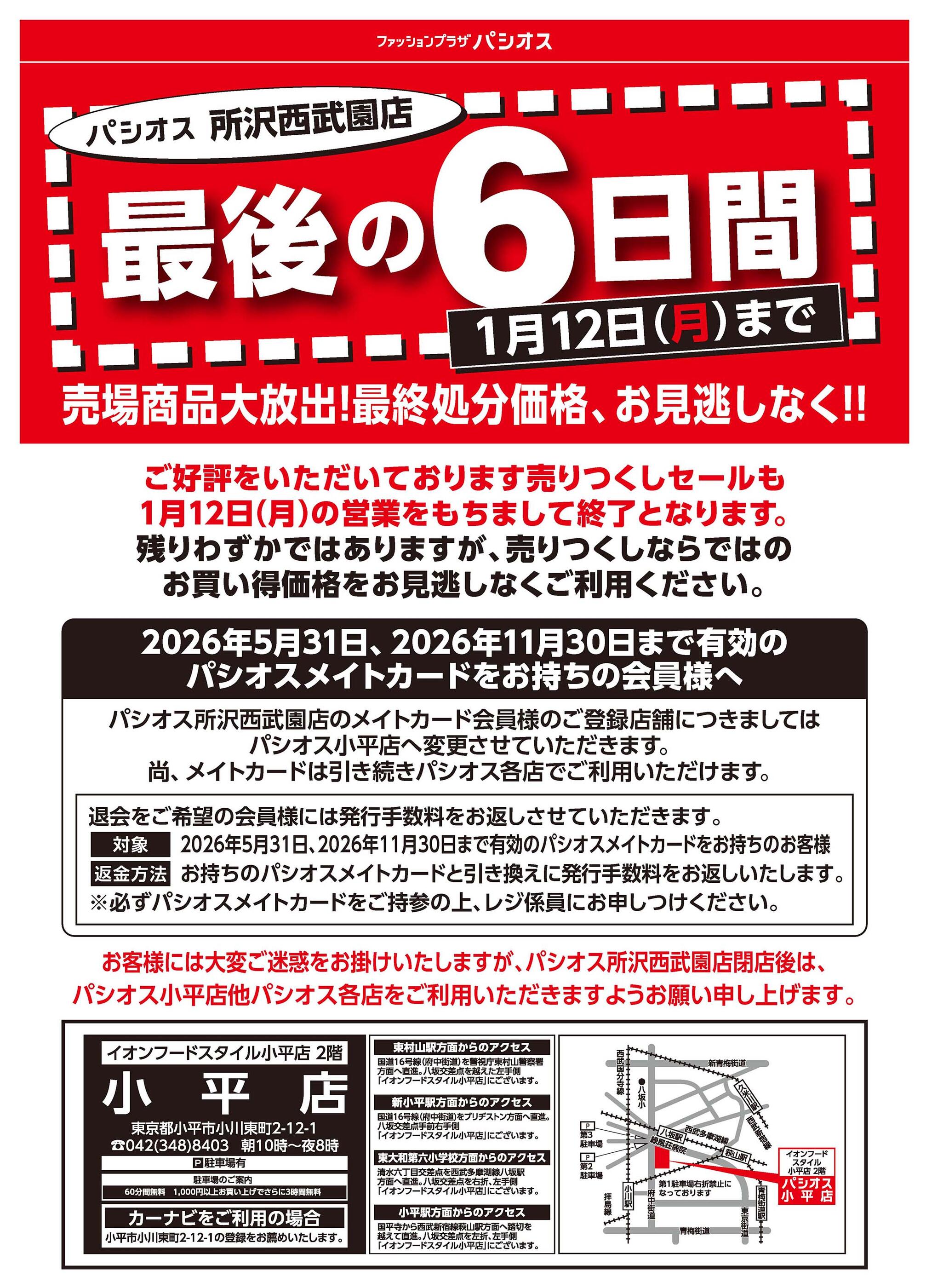 パシオス所沢西武園店2026-01-07更新