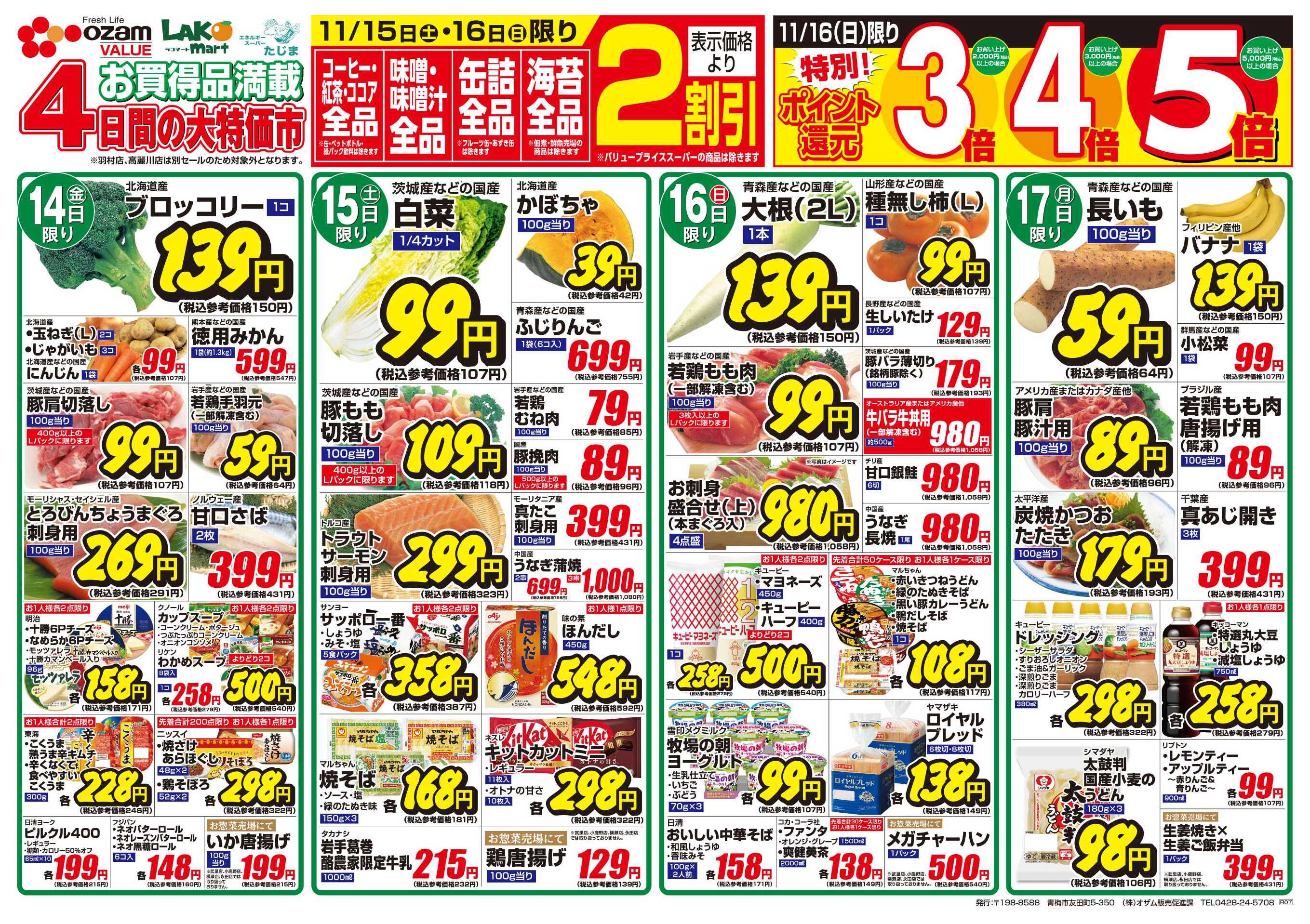 スーパーオザム東狭山ヶ丘店今週のチラシ(2025年11月10日〜11月16日)