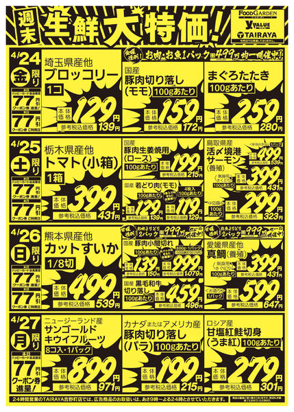 ※「店舗の掲載内容について」チラシガイドに掲載している情報は、独自に調査した内容及びユーザーから頂いた情報を掲載しています。お気づきの点がございましたら「お問い合わせ」よりご連絡ください。また店舗の営業状況、商品に関するお問い合わせは直接店舗事業者にご確認ください。