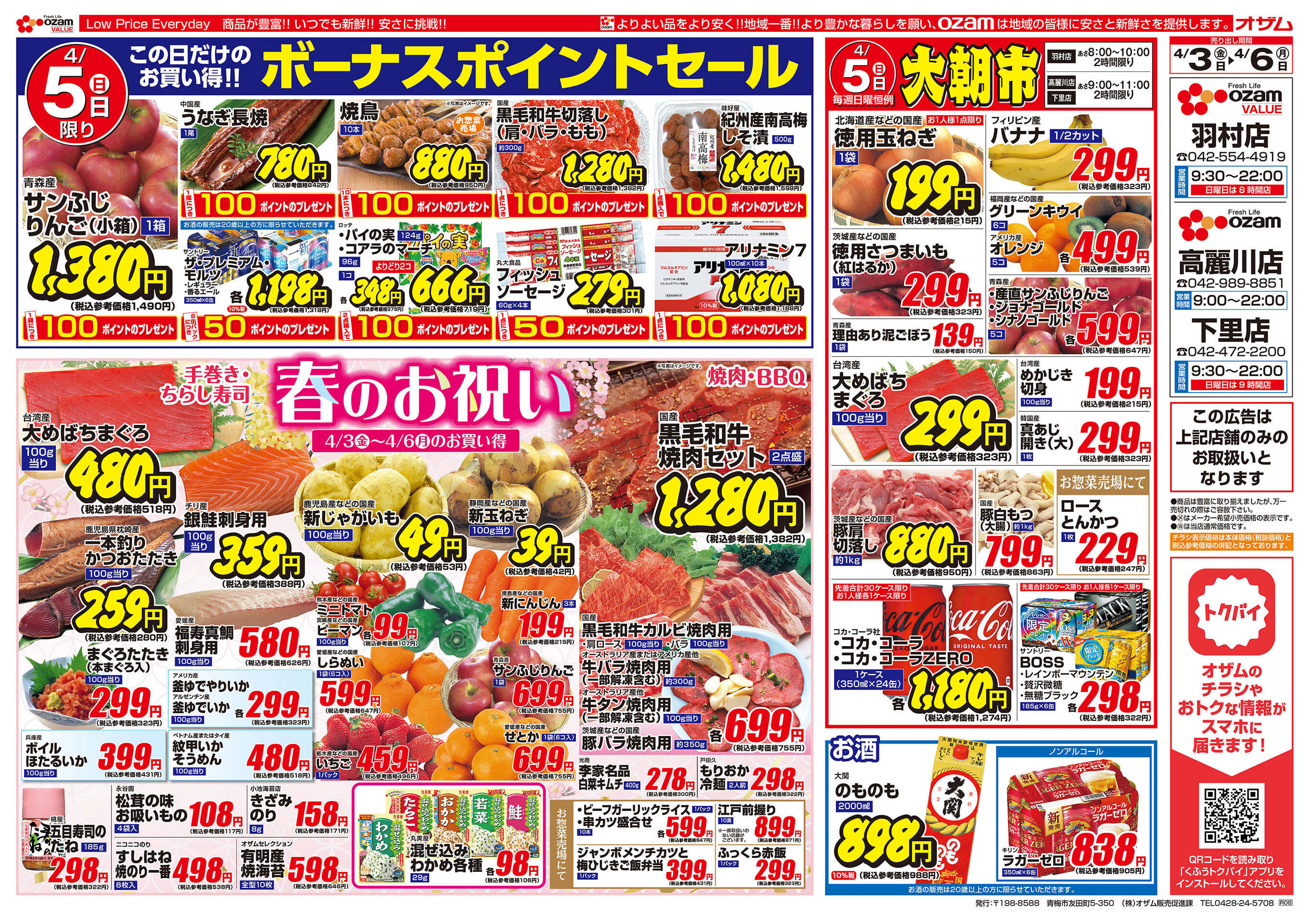 スーパーオザム高麗川店今週のチラシ(2026年3月30日〜4月5日)
