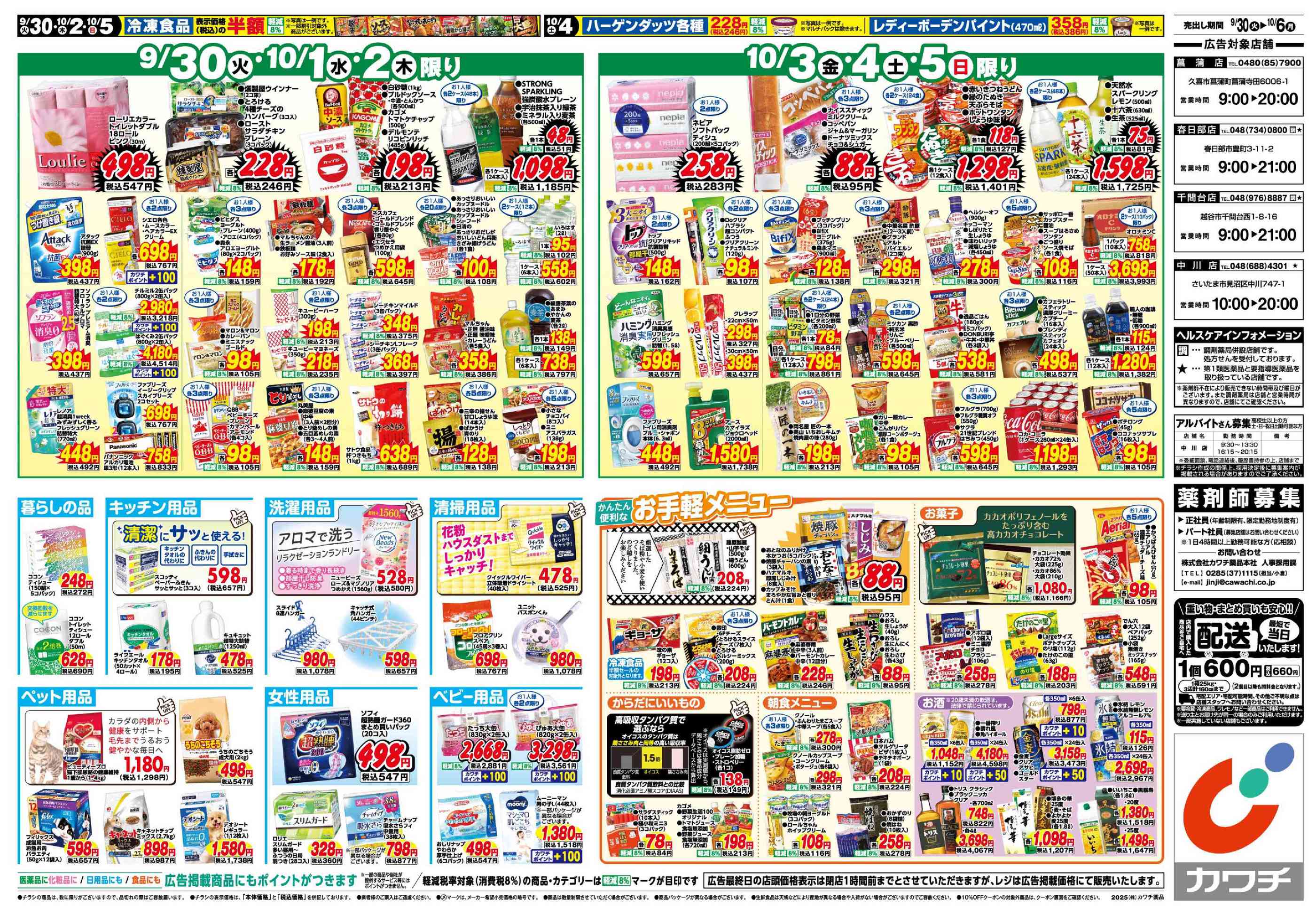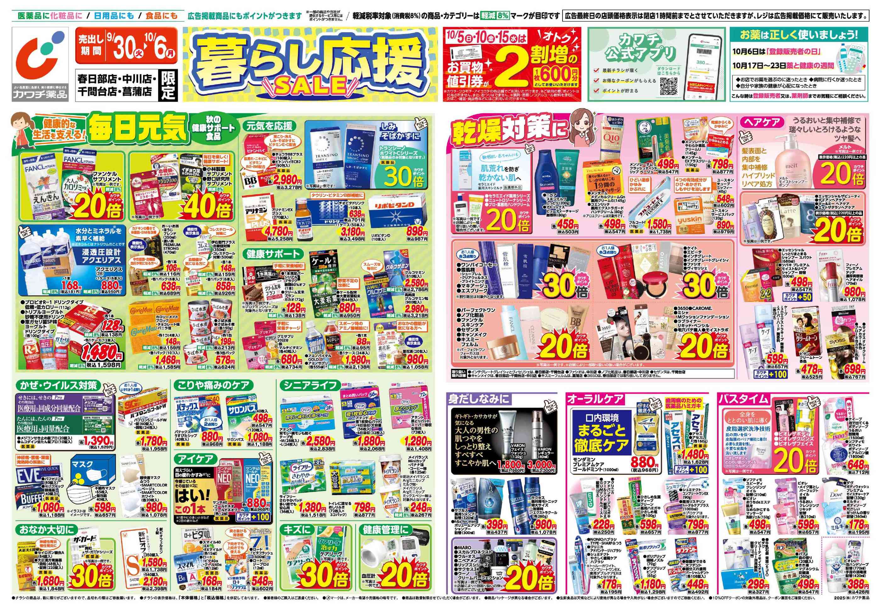 カワチ薬品春日部店今週のチラシ(2025年9月29日〜10月5日)