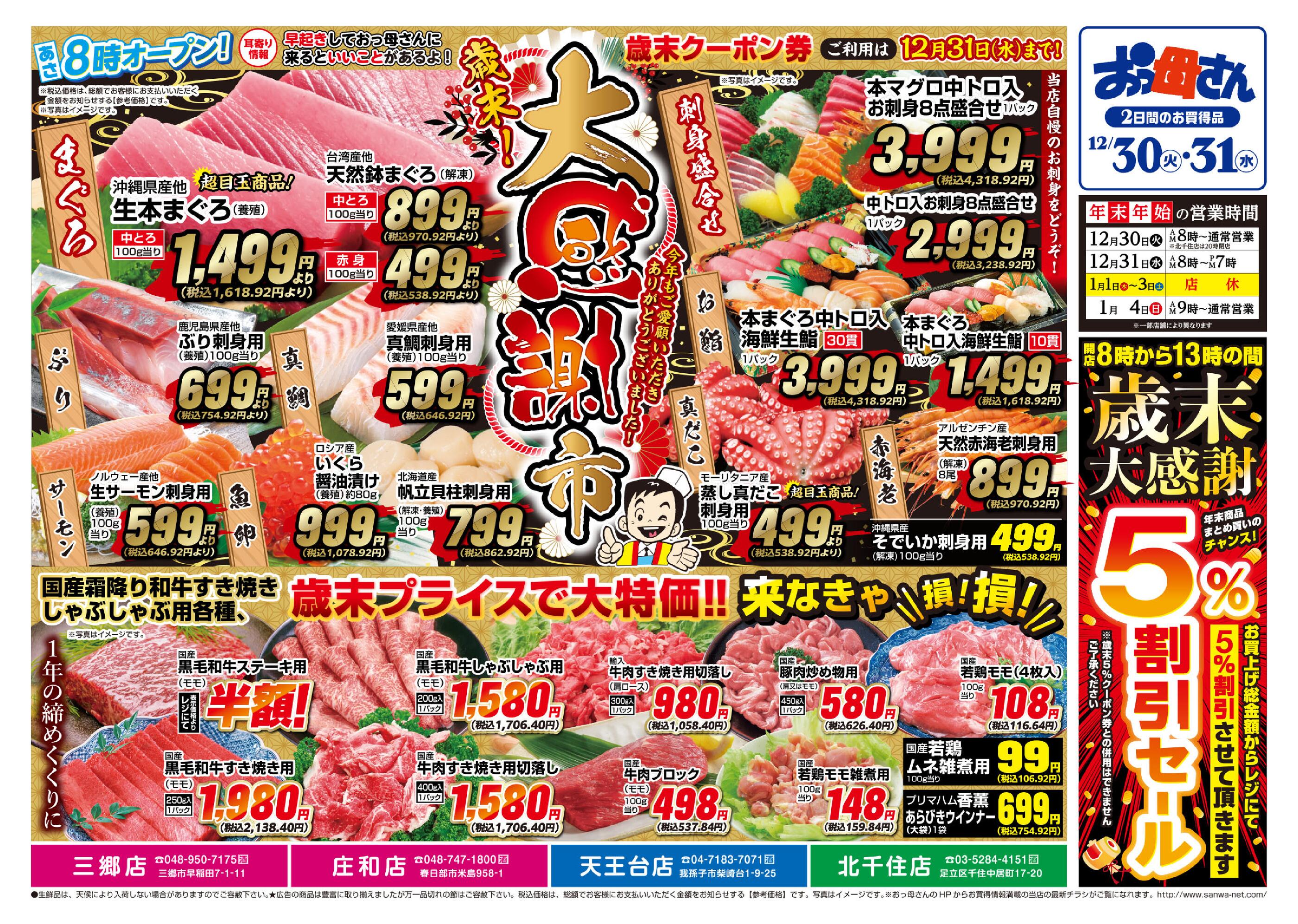 おっ母さん食の壱番館庄和店今週のチラシ(2025年12月29日〜1月4日)