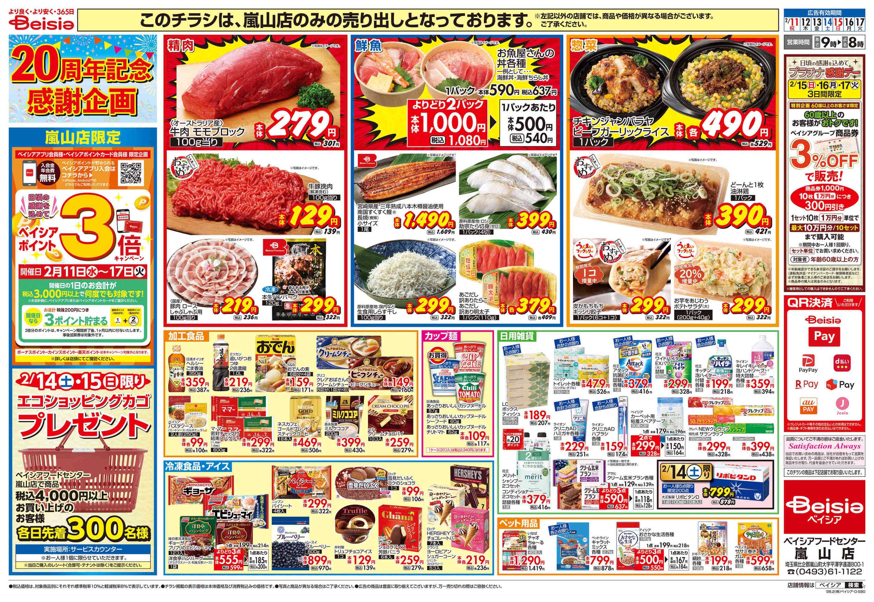 ベイシアフードセンター嵐山店今週のチラシ(2026年2月9日〜2月15日)