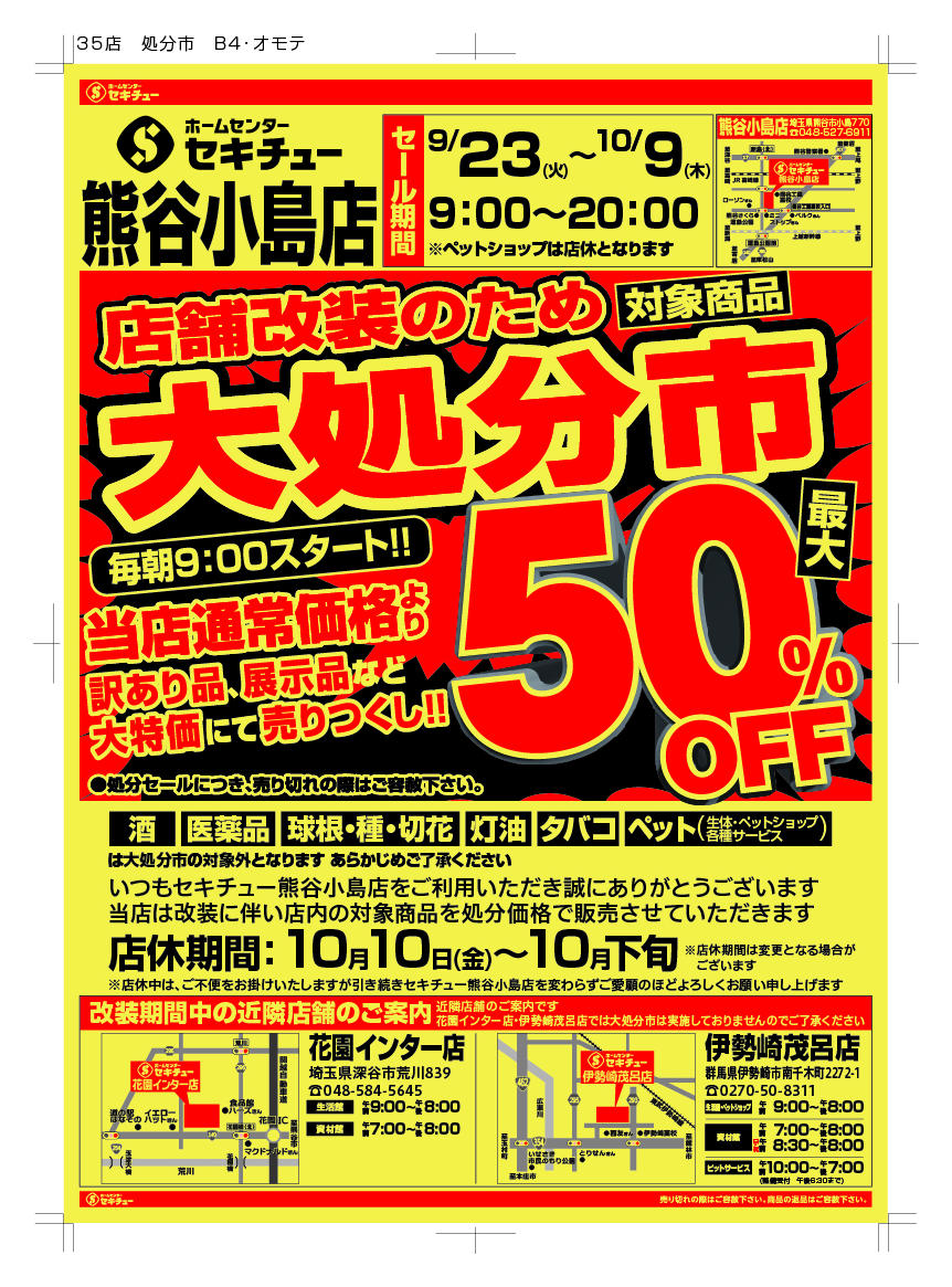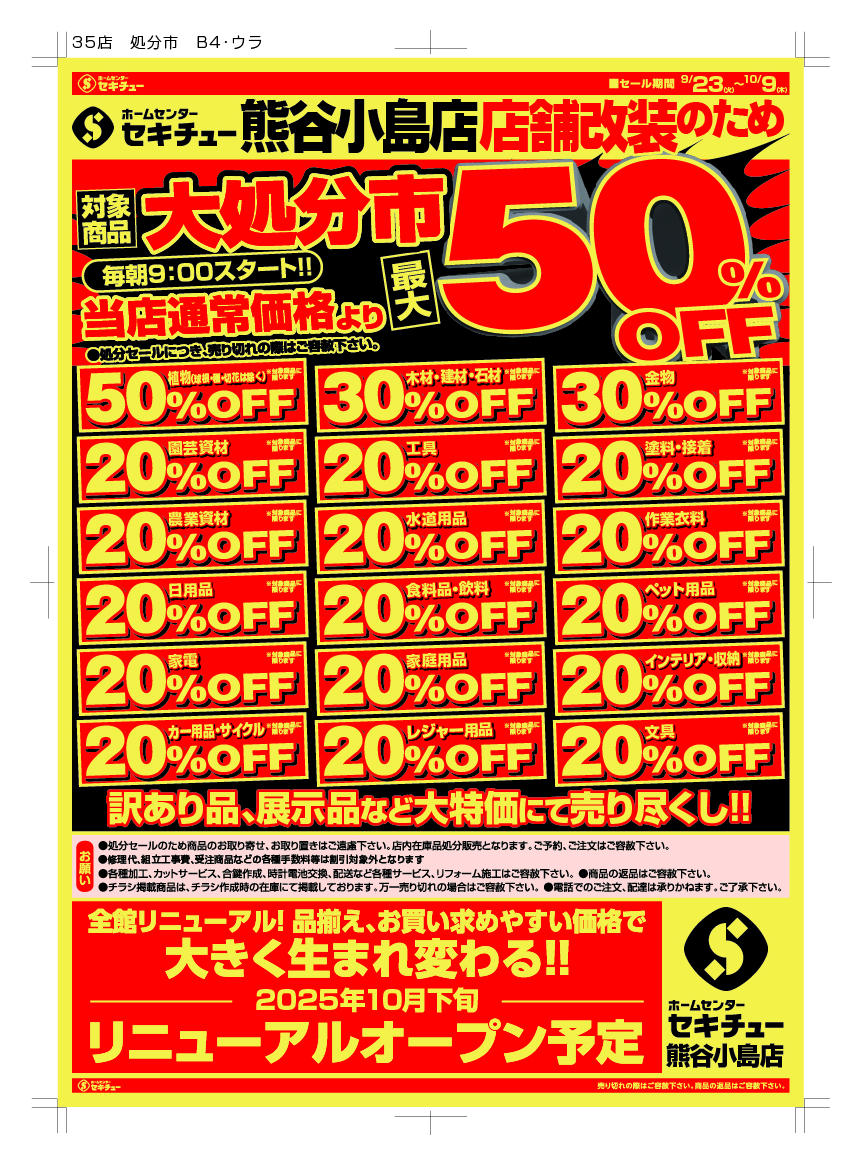 セキチュー熊谷小島店今週のチラシ(2025年9月29日〜10月5日)