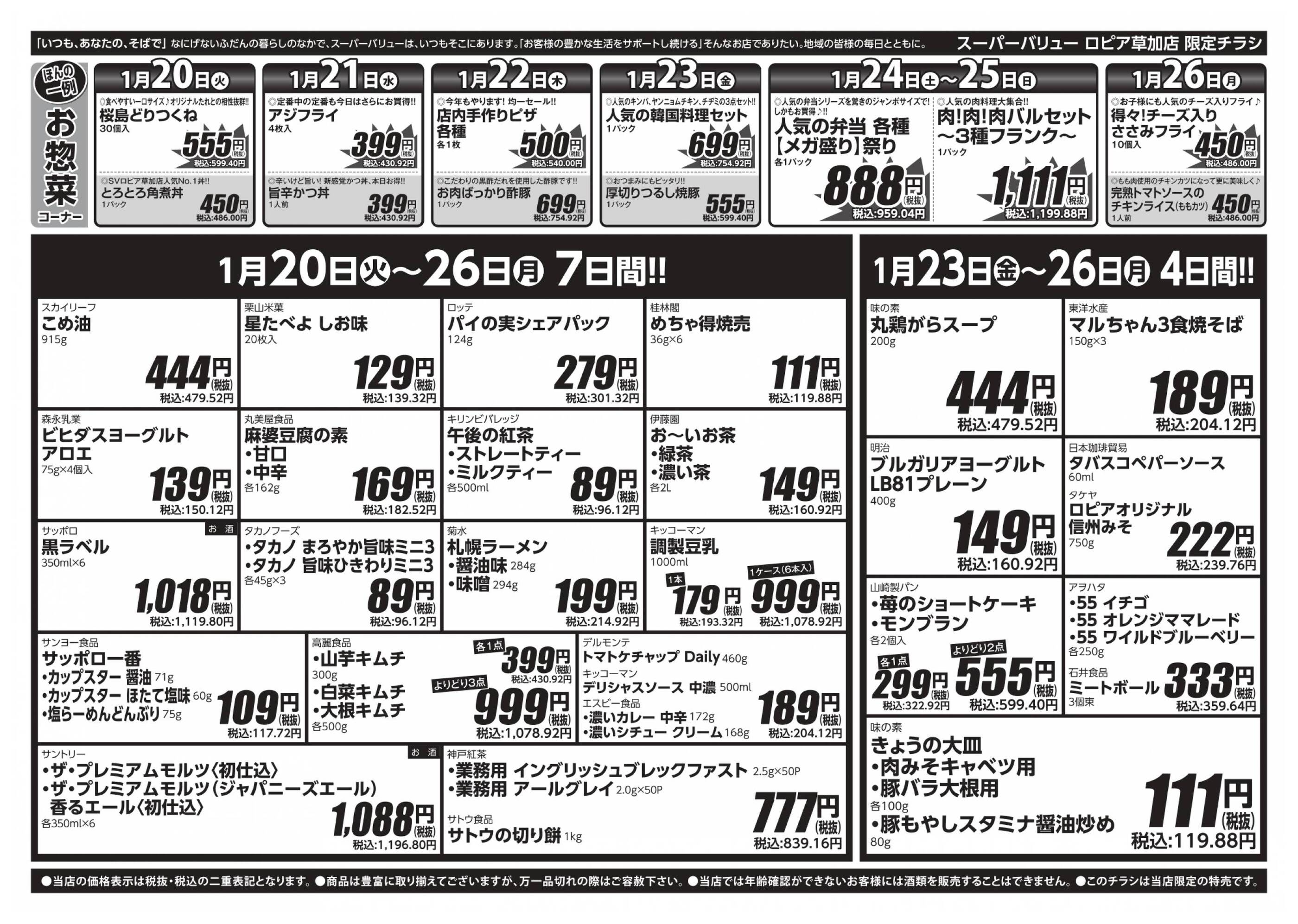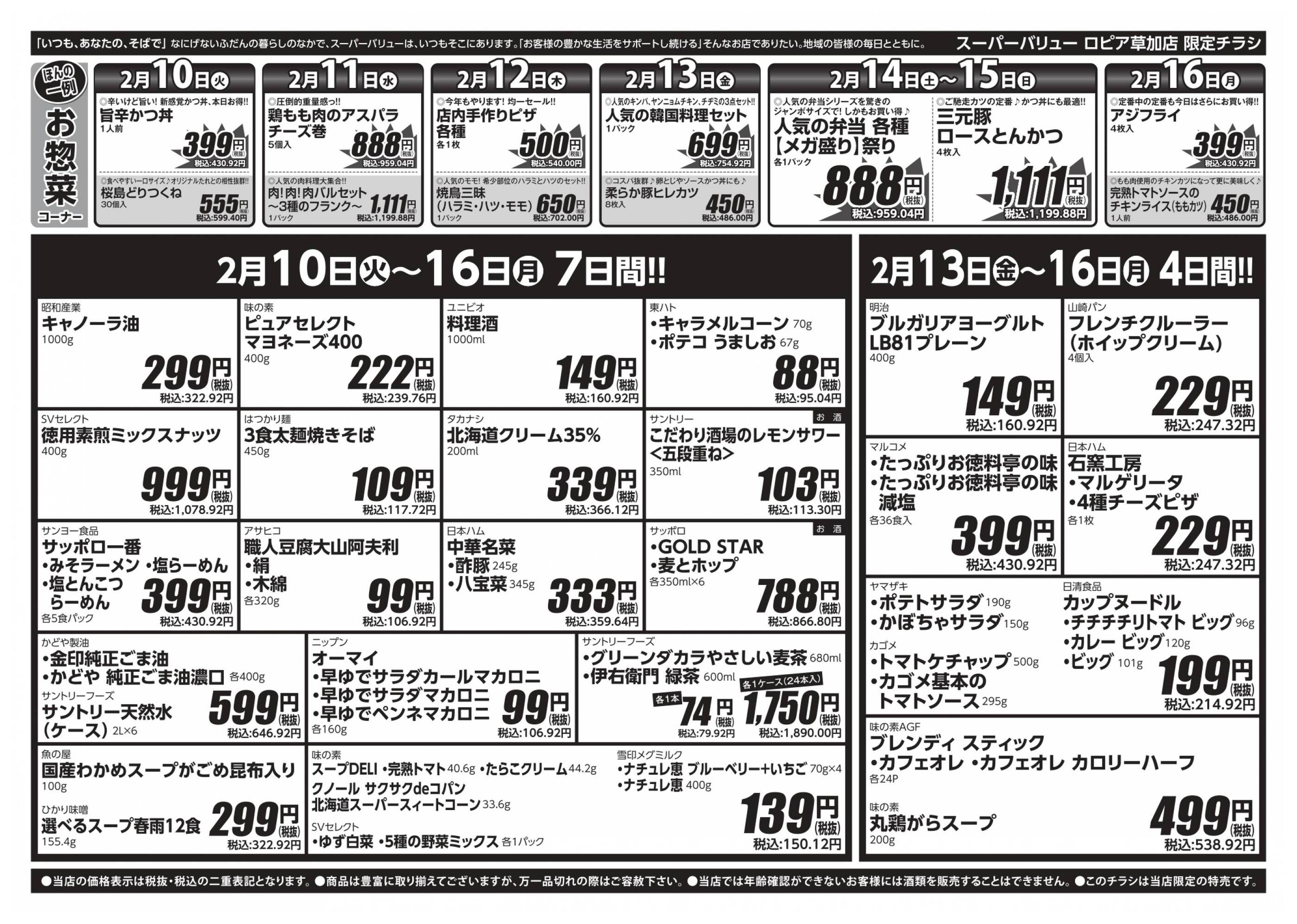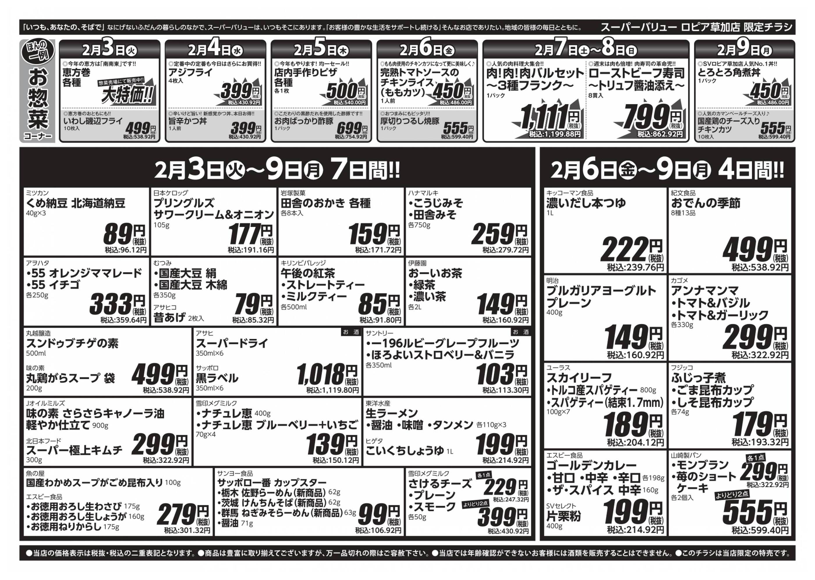 スーパーバリュー草加店今週のチラシ(2026年2月9日〜2月15日)