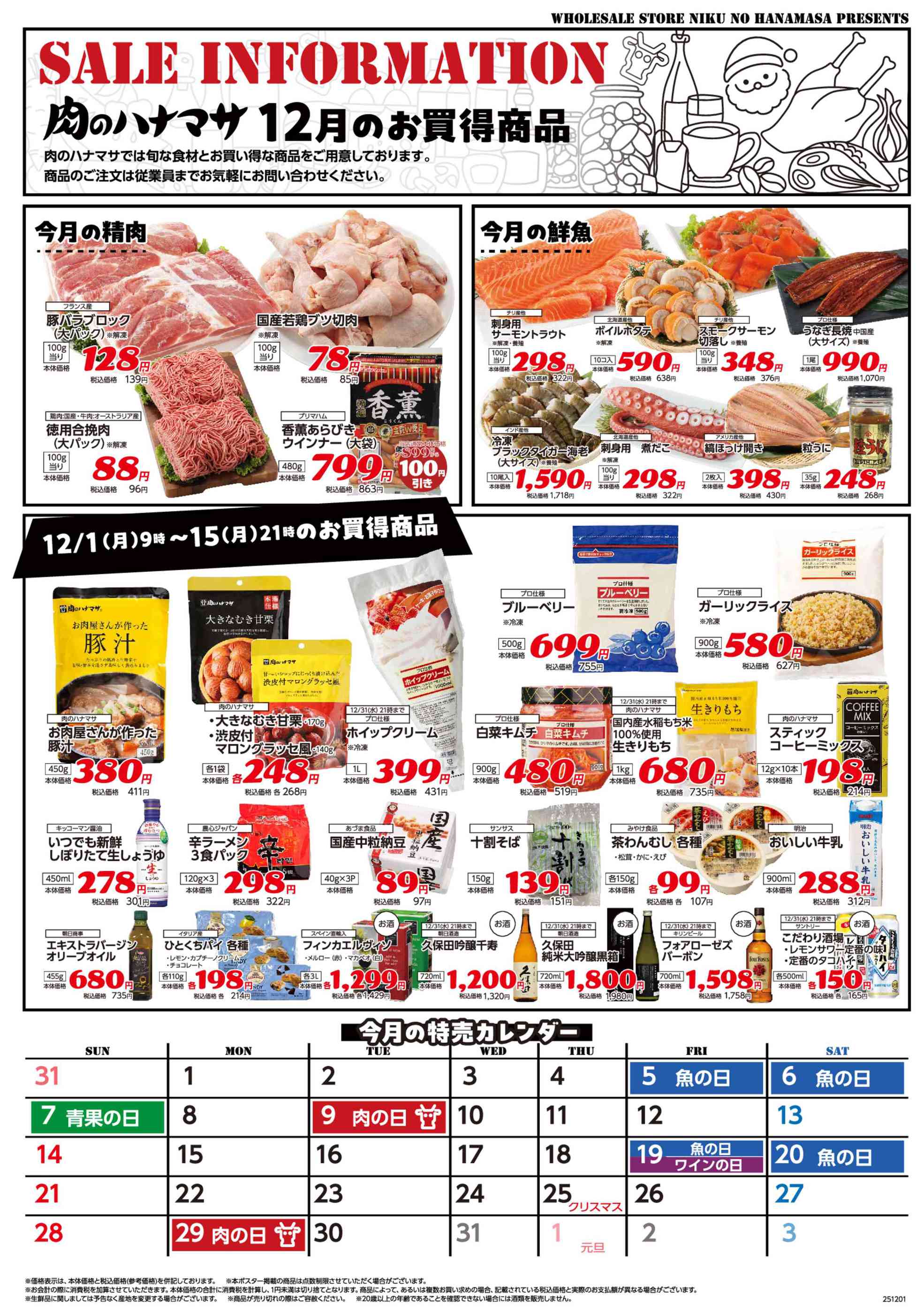 肉のハナマサPLUS蕨店今週のチラシ(2025年12月1日〜12月7日)