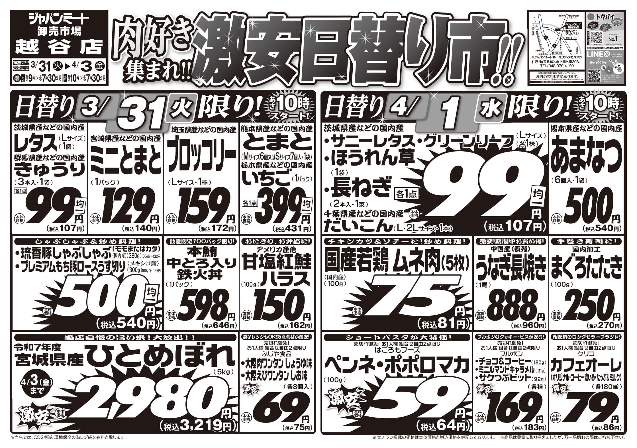 ジャパンミート卸売市場越谷店今週のチラシ(2026年3月30日〜4月5日)