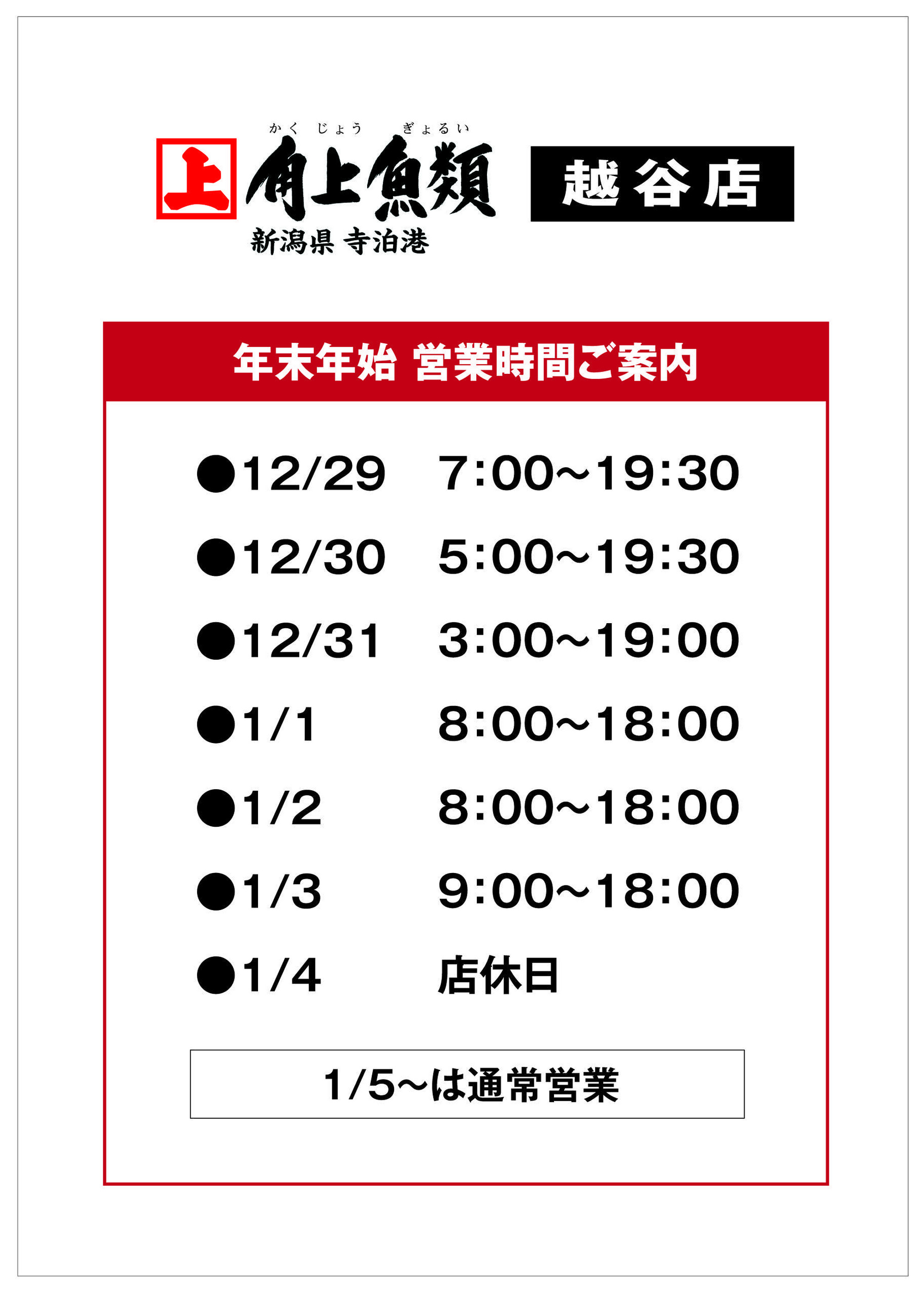 角上魚類越谷店今週のチラシ(2025年12月29日〜1月4日)