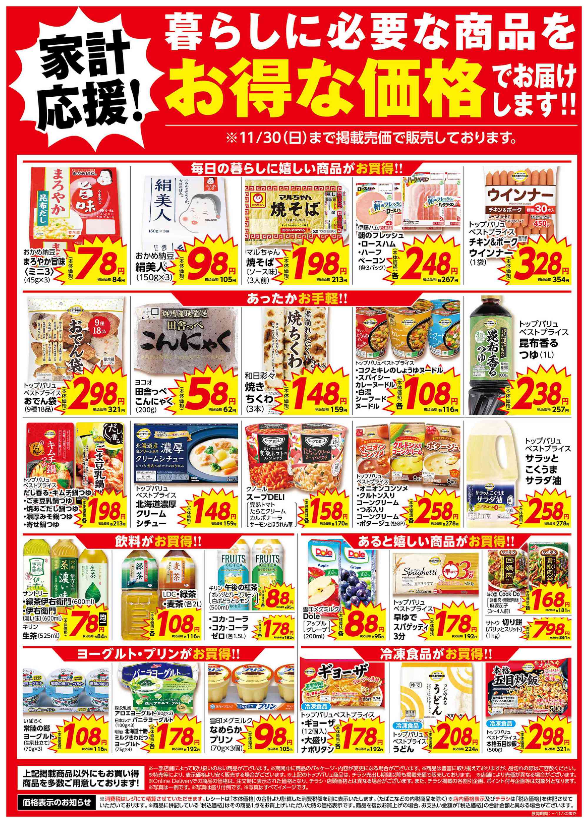 特売やセール情報など最新のチラシを掲載中。(3種類、4枚のチラシを掲載しています)