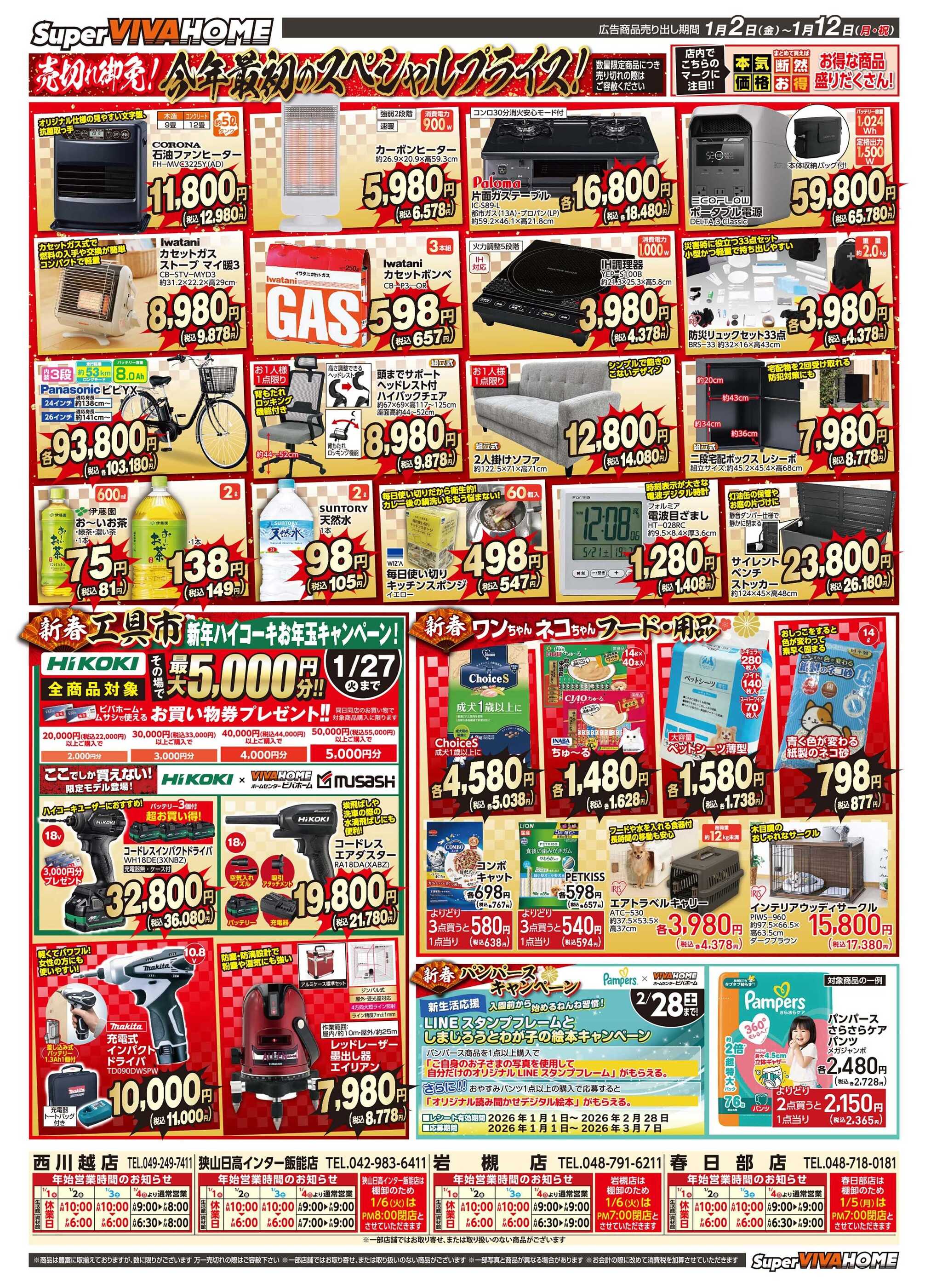 スーパービバホーム狭山日高インター飯能店今週のチラシ(2025年12月29日〜1月4日)