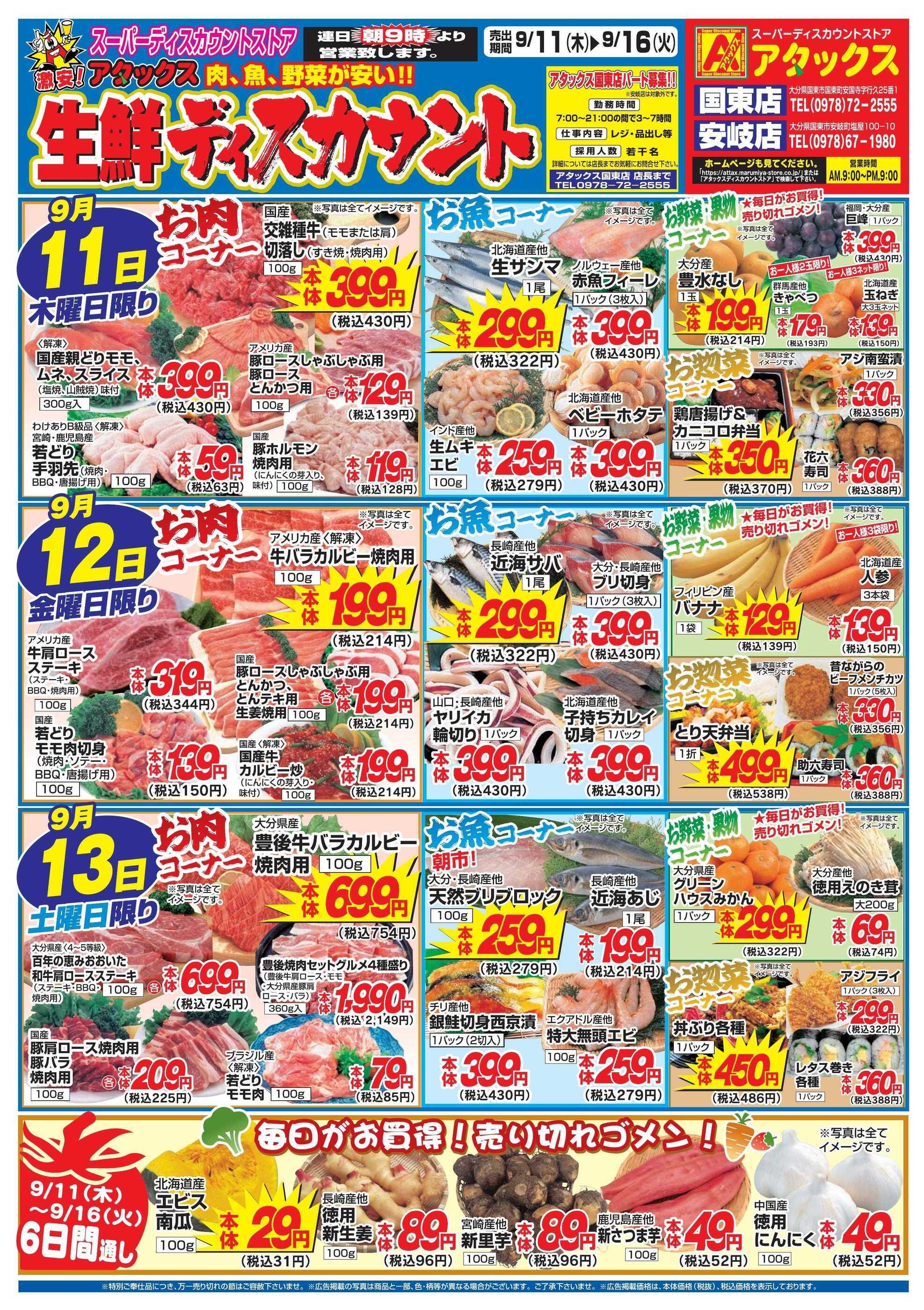 アタックス国東店今週のチラシ(2025年9月29日〜10月5日)