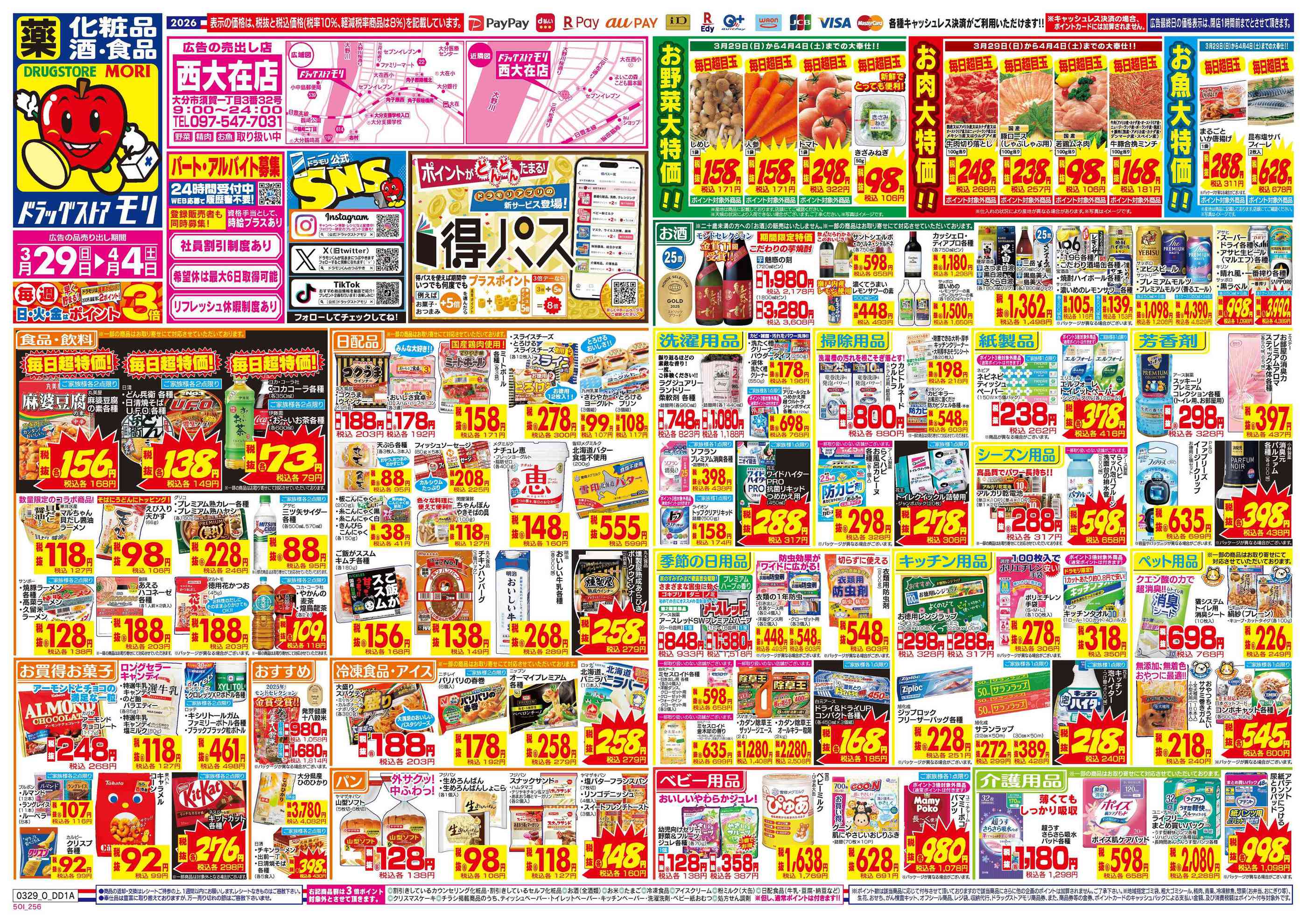 ドラッグストアモリ西大在店今週のチラシ(2026年3月30日〜4月5日)