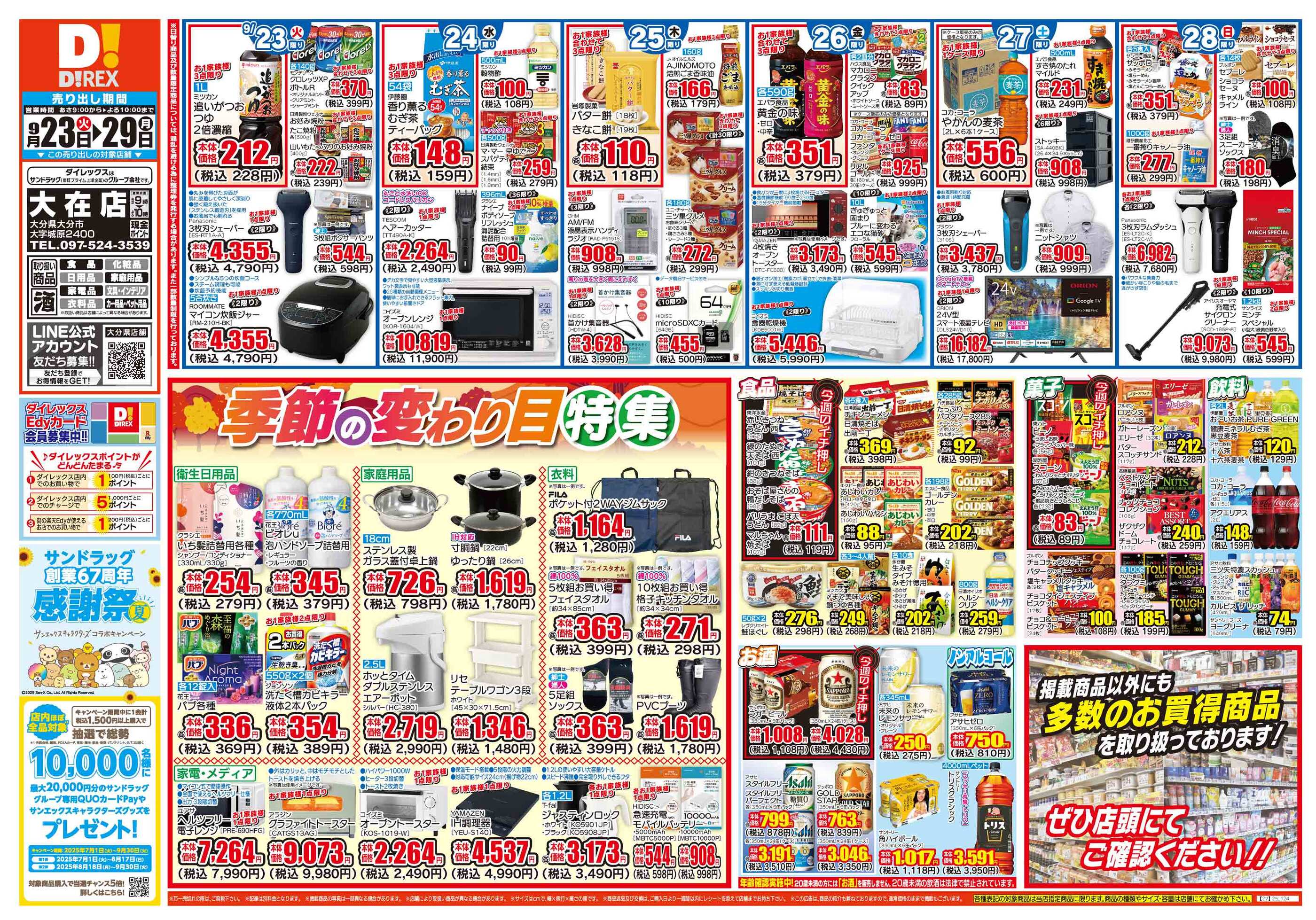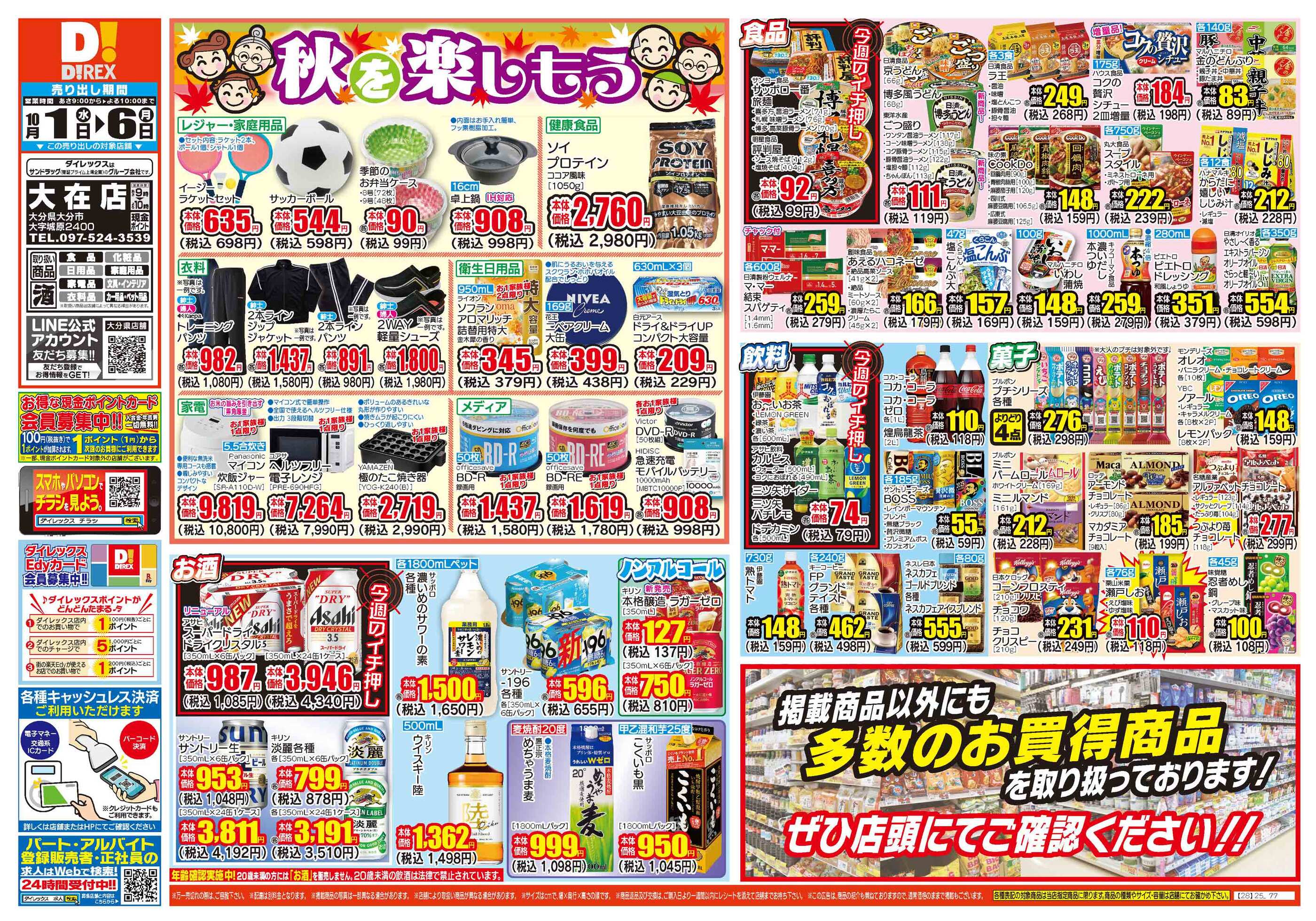 ダイレックス大在店今週のチラシ(2025年9月29日〜10月5日)