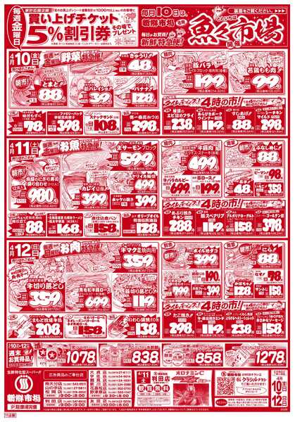 特売やセール情報など最新のチラシを掲載中。(10種類、10枚のチラシを掲載しています)