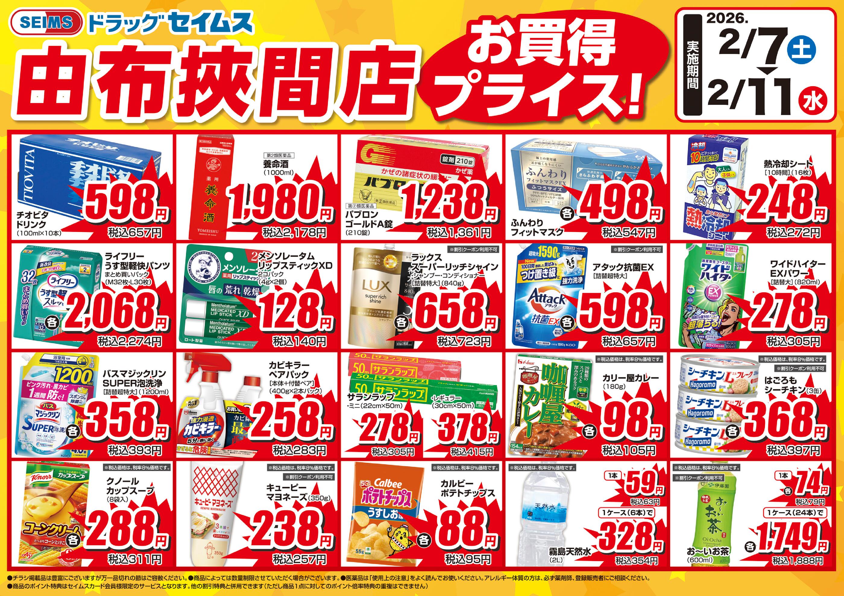 ドラッグセイムス由布挾間店今週のチラシ(2026年2月9日〜2月15日)