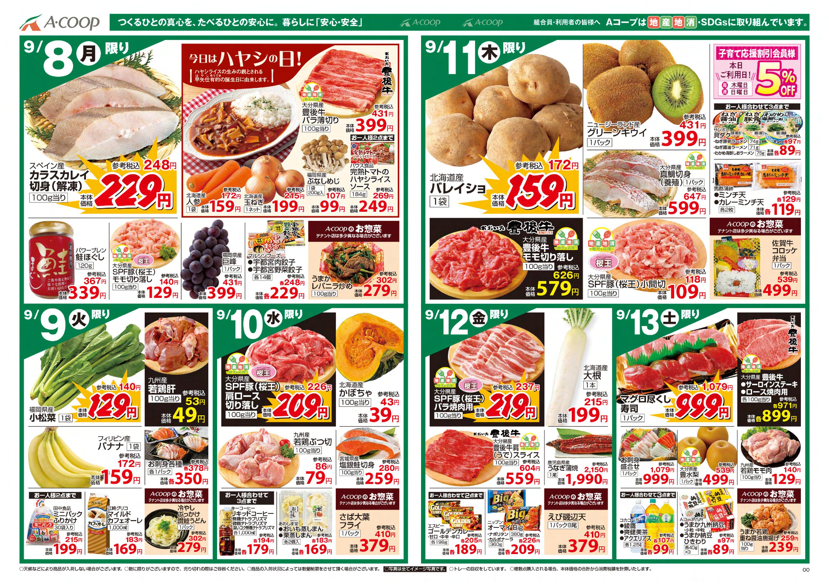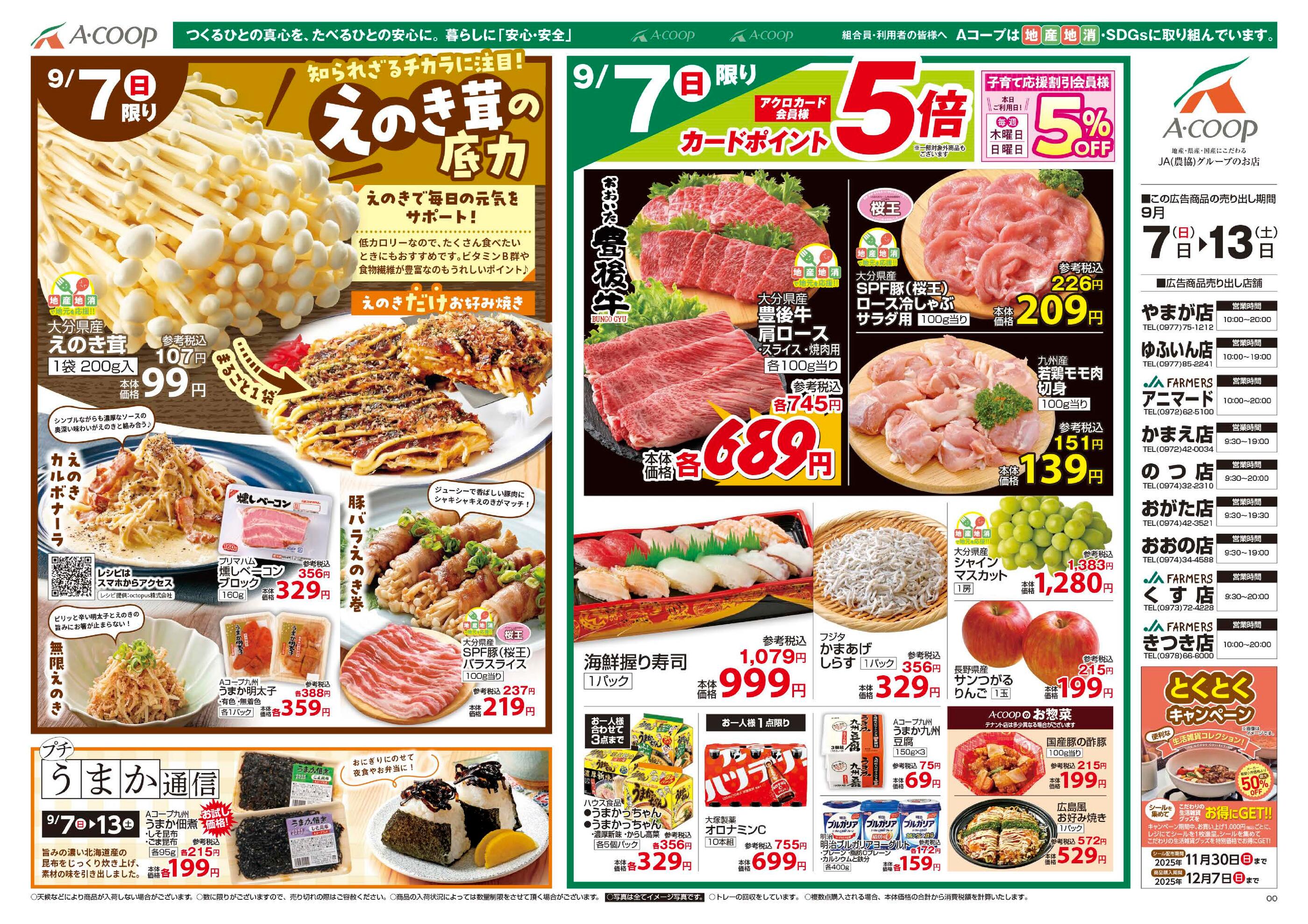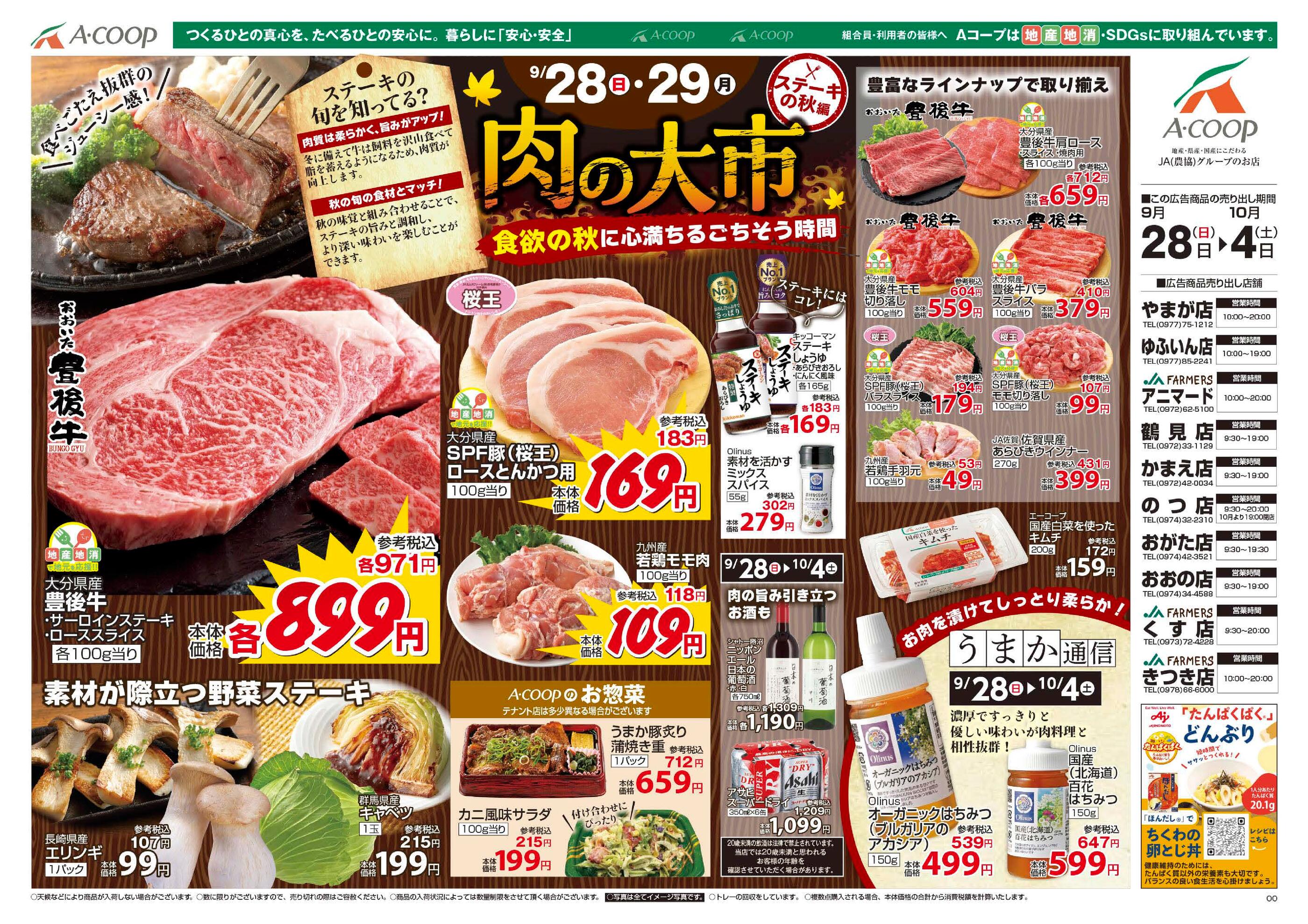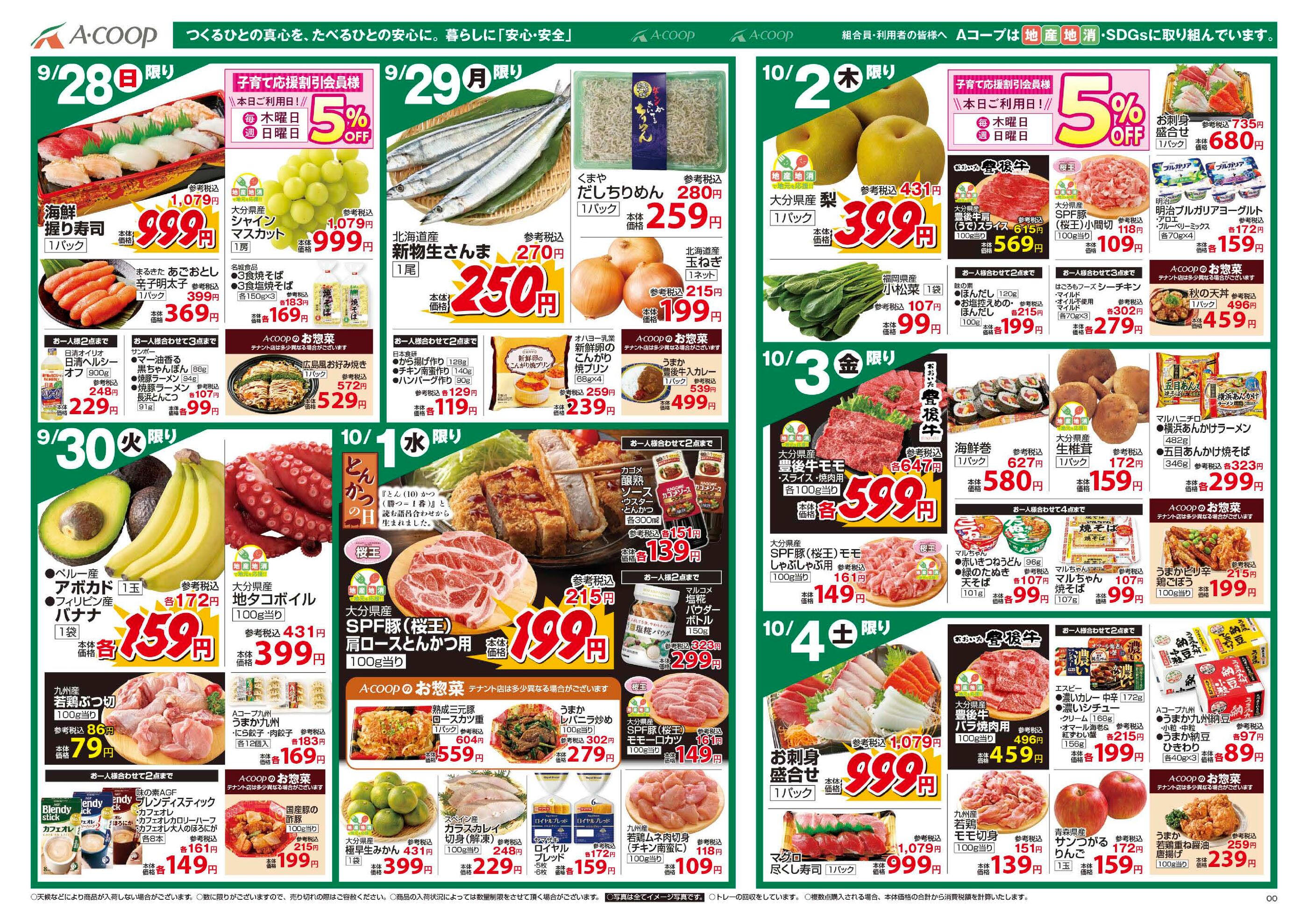 Aコープ のつ店今週のチラシ(2025年9月29日〜10月5日)
