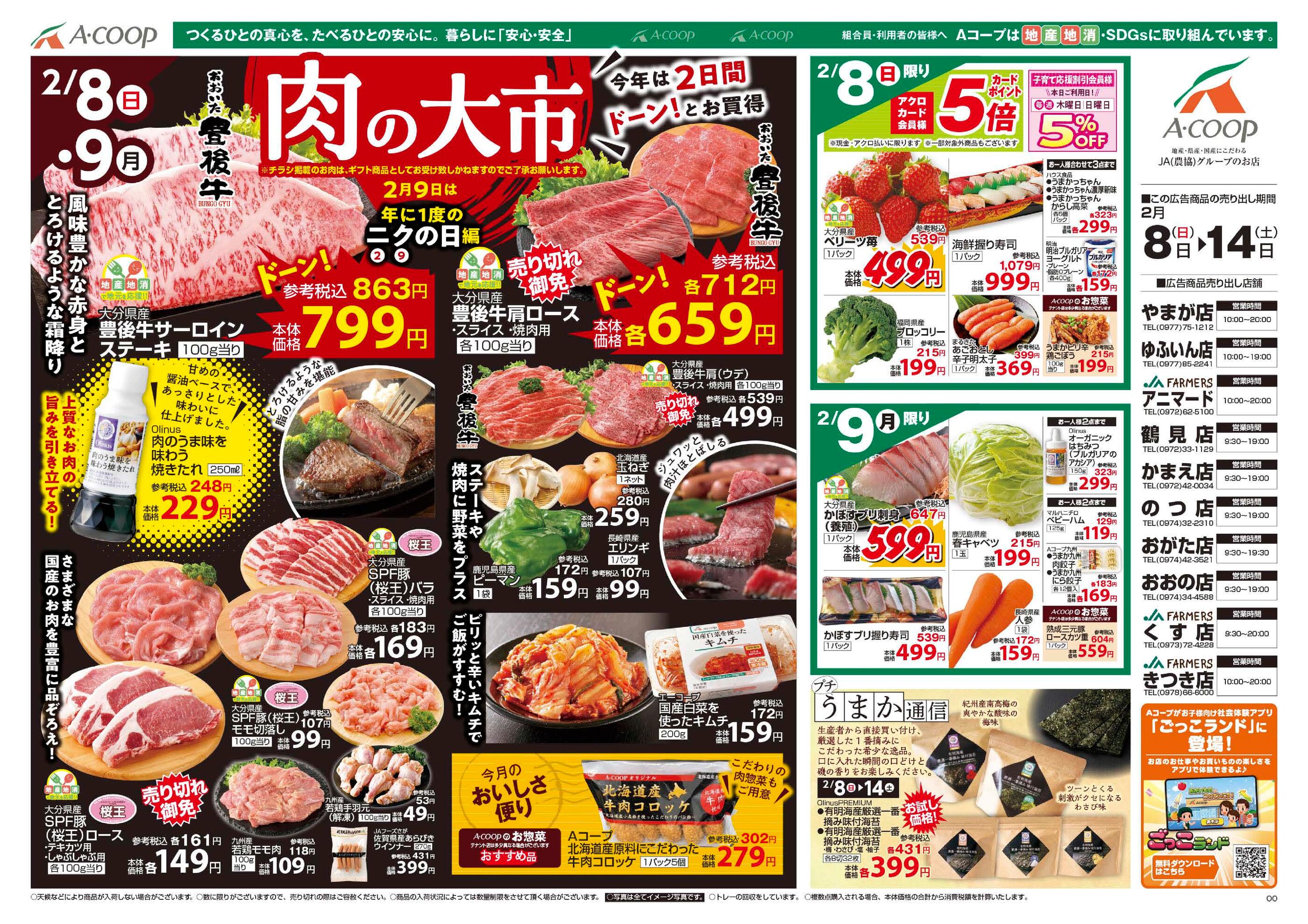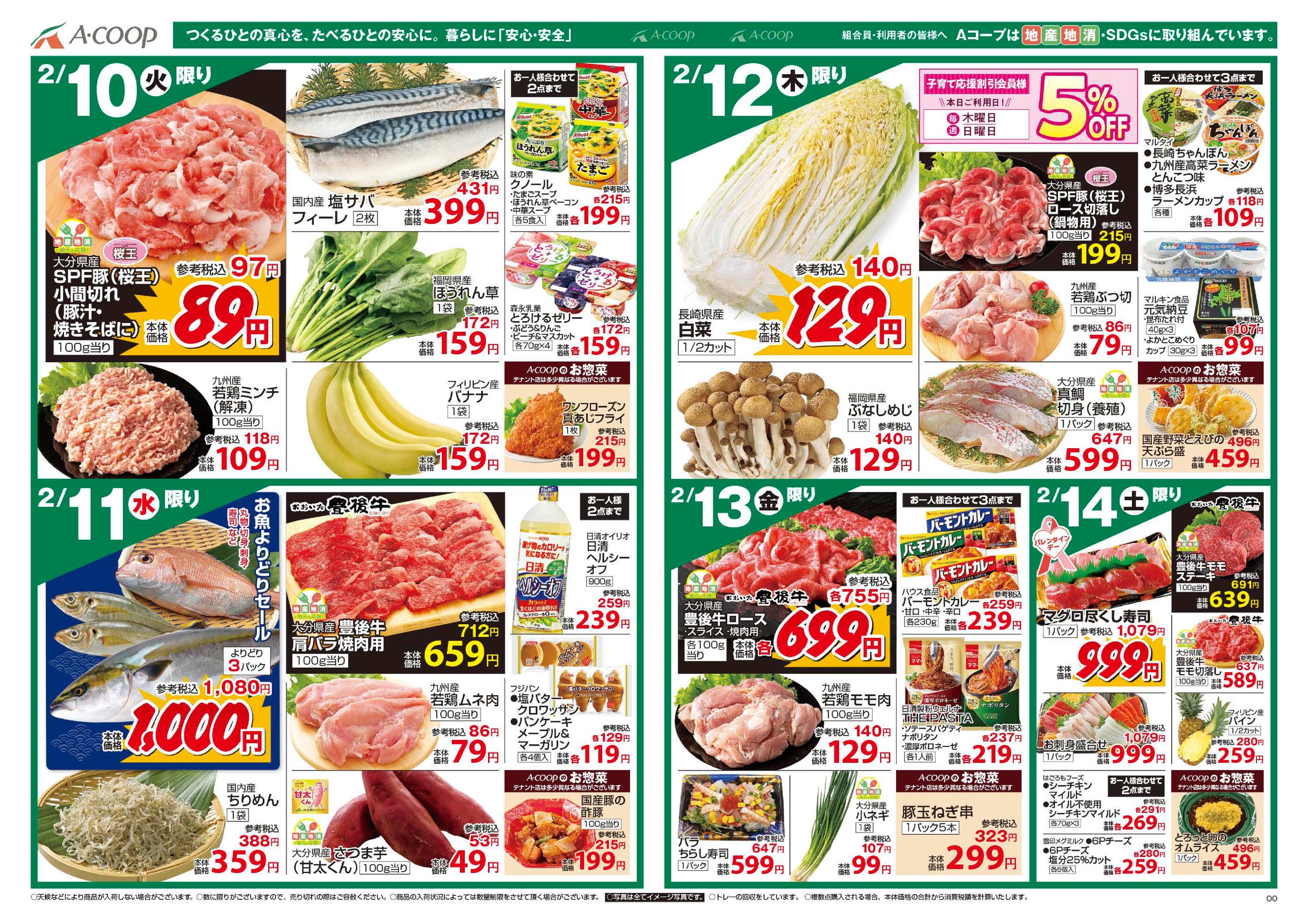 Aコープ のつ店今週のチラシ(2026年2月9日〜2月15日)