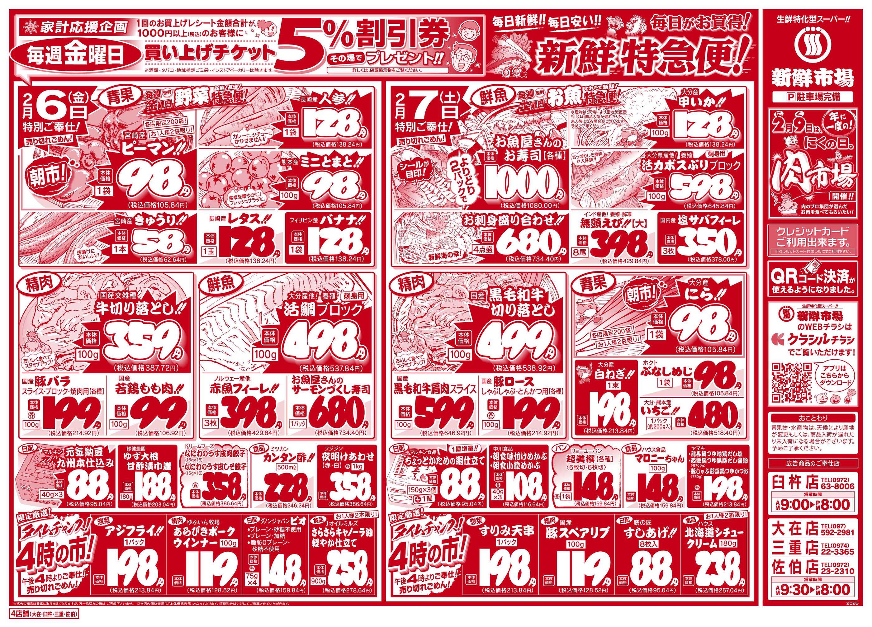 新鮮市場 臼杵店今週のチラシ(2026年2月9日〜2月15日)