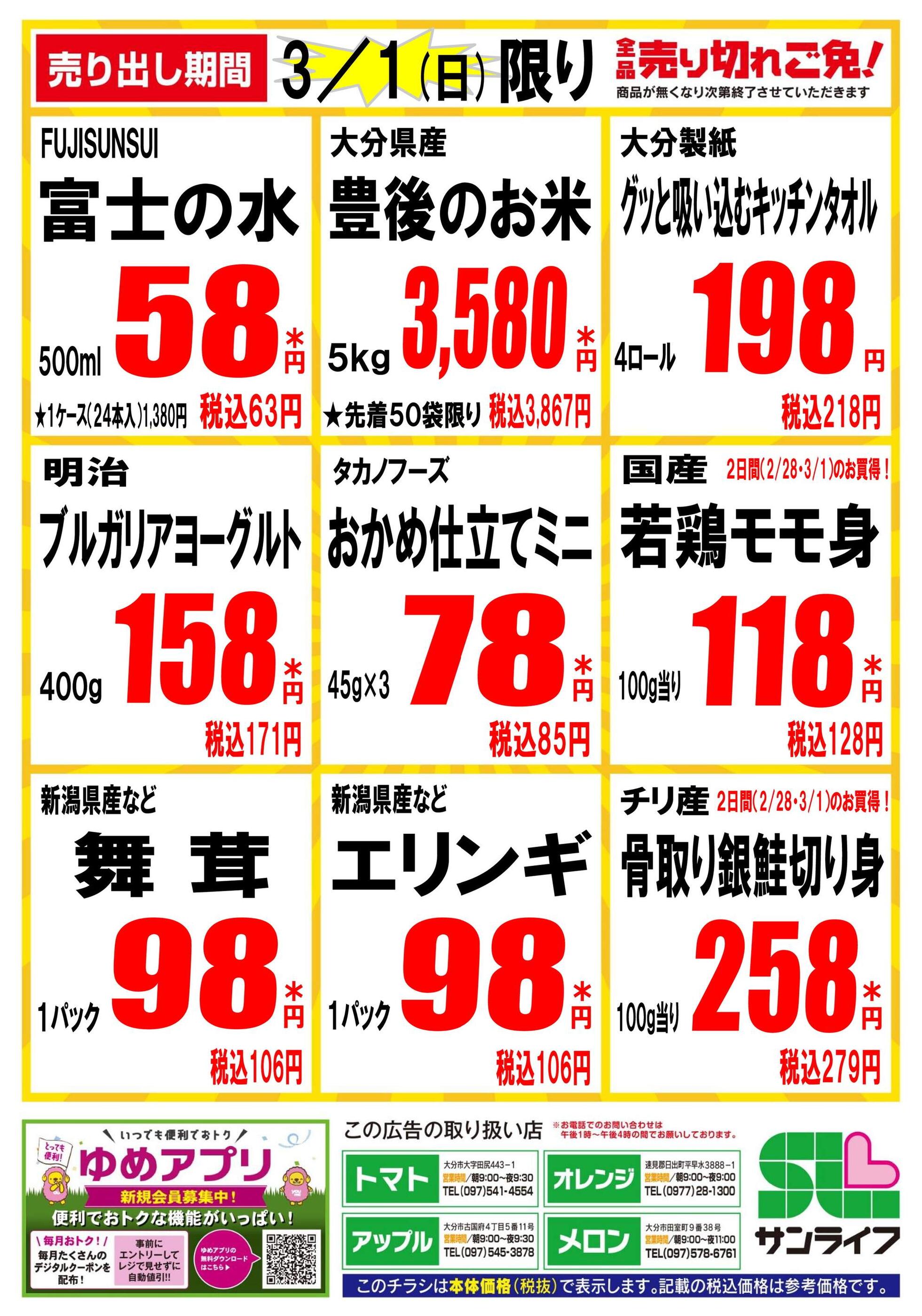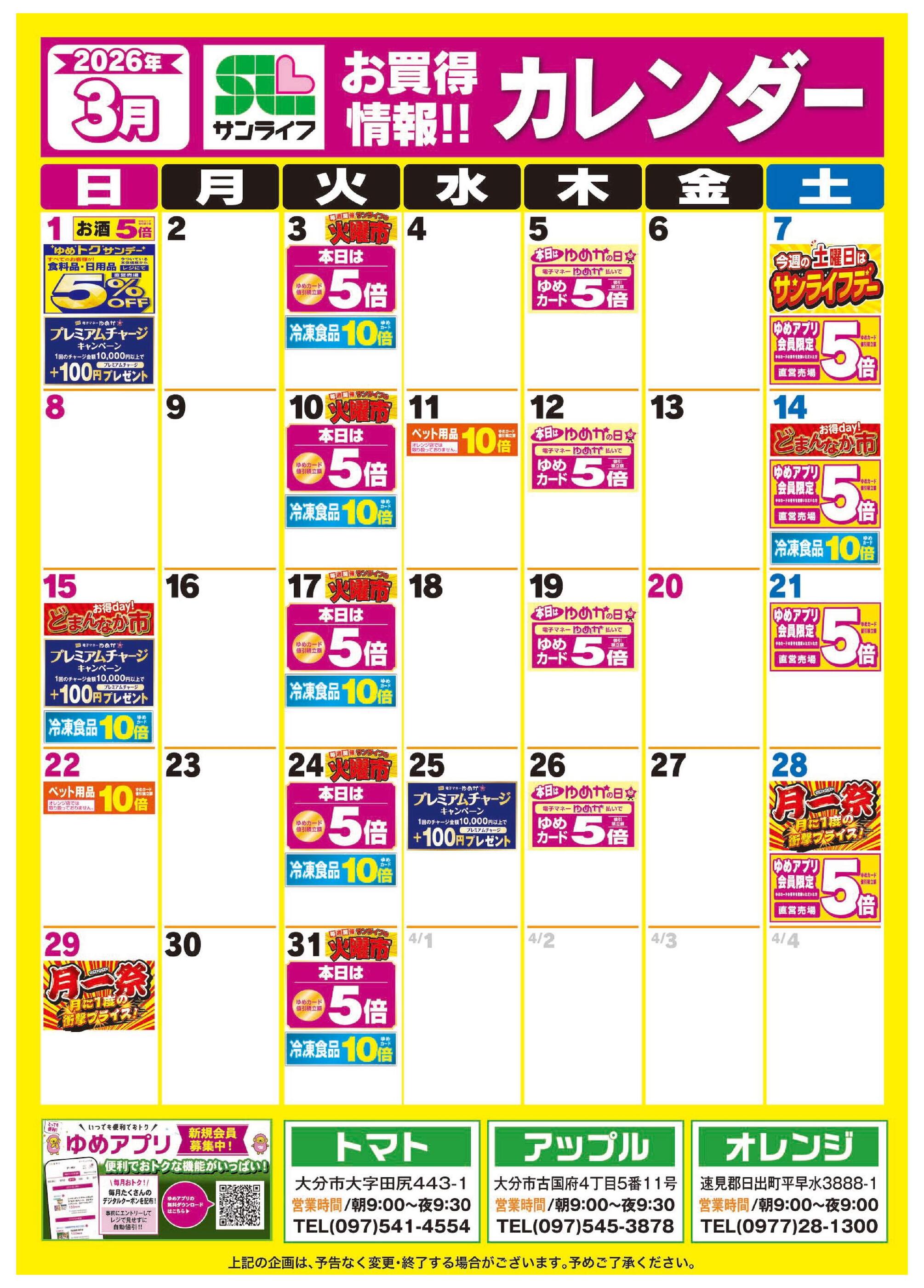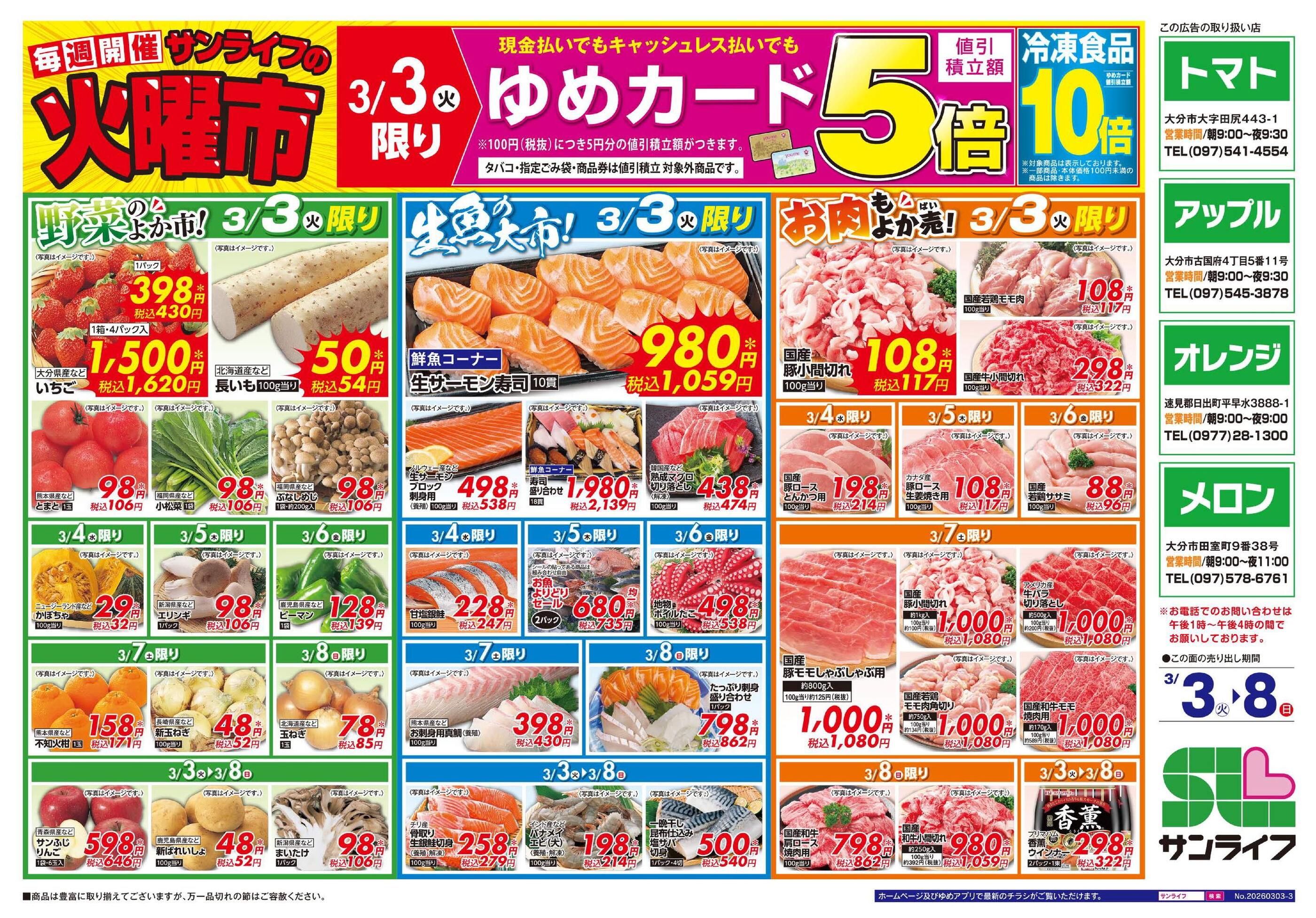 サンライフオレンジ店今週のチラシ(2026年3月2日〜3月8日)