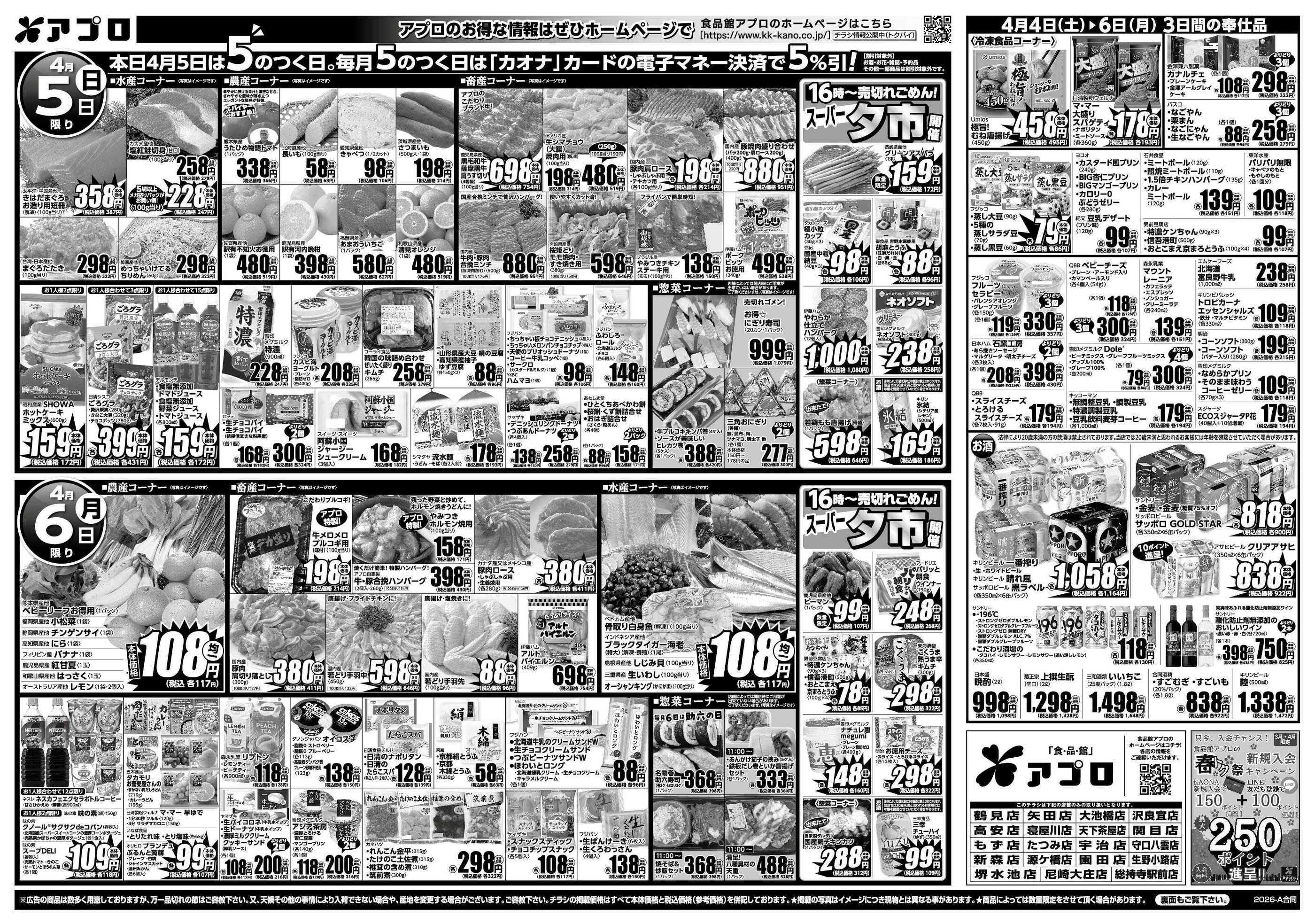 食品館アプロ高安店今週のチラシ(2026年4月6日〜4月12日)