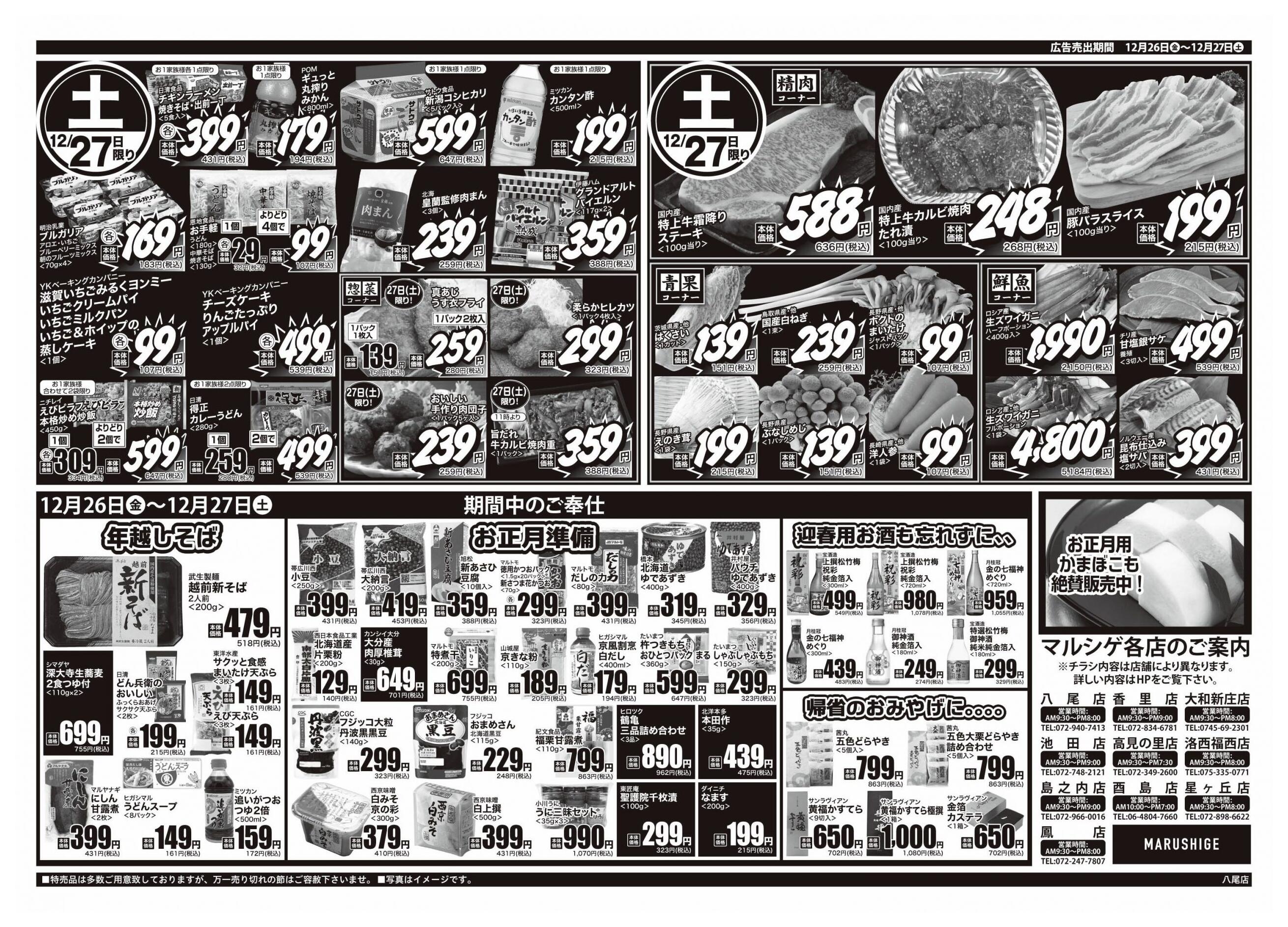 マルシゲ八尾店今週のチラシ(2025年12月29日〜1月4日)