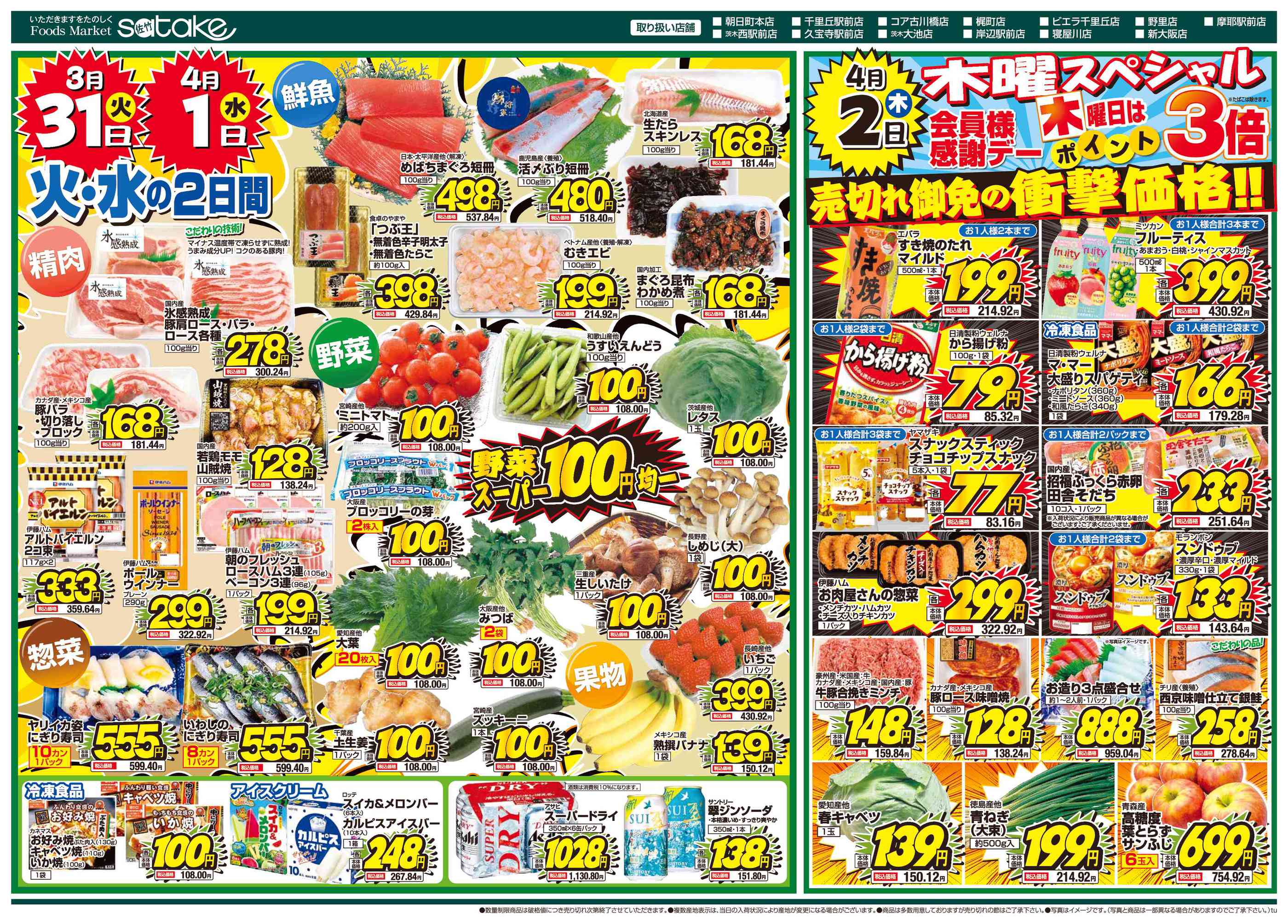 フーズマーケットサタケビエラ千里丘店今週のチラシ(2026年3月30日〜4月5日)