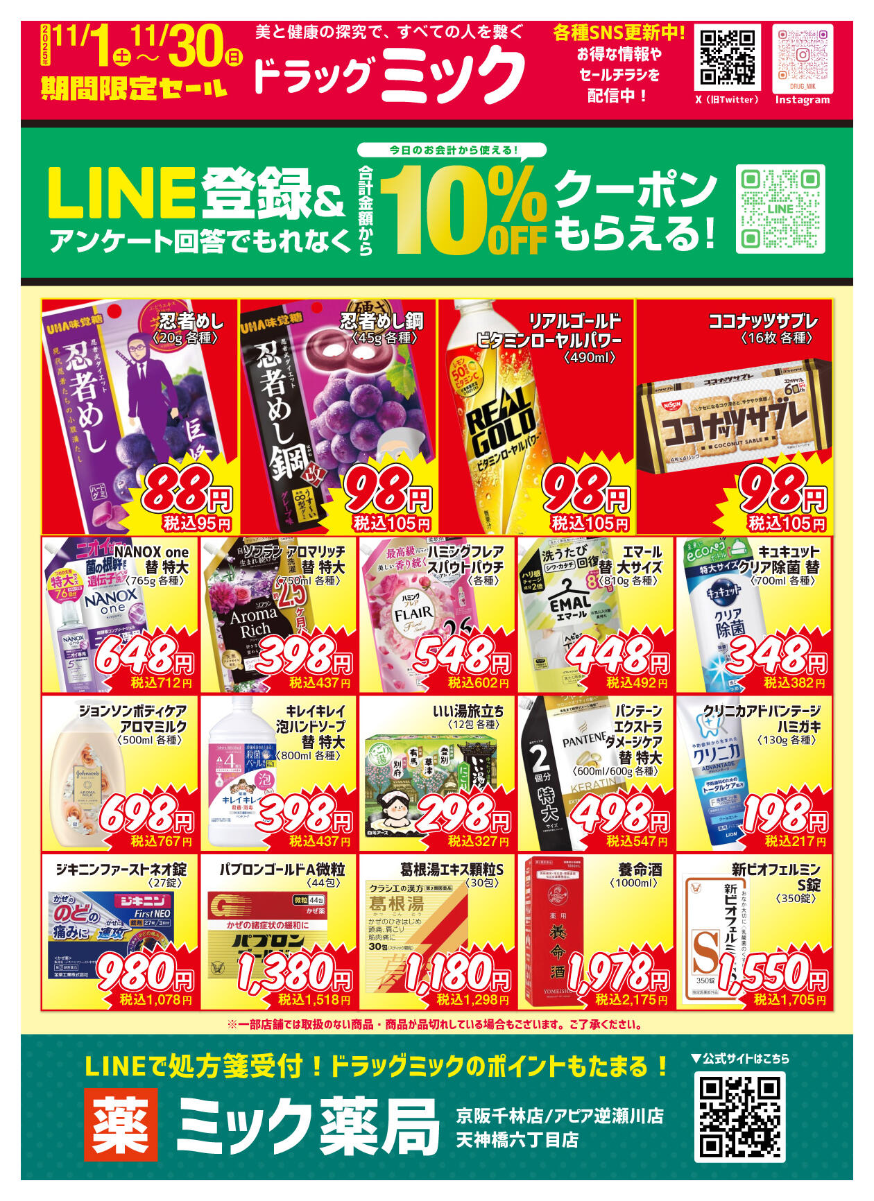 ドラッグミック アザール桃山台店今週のチラシ(2025年10月27日〜11月2日)