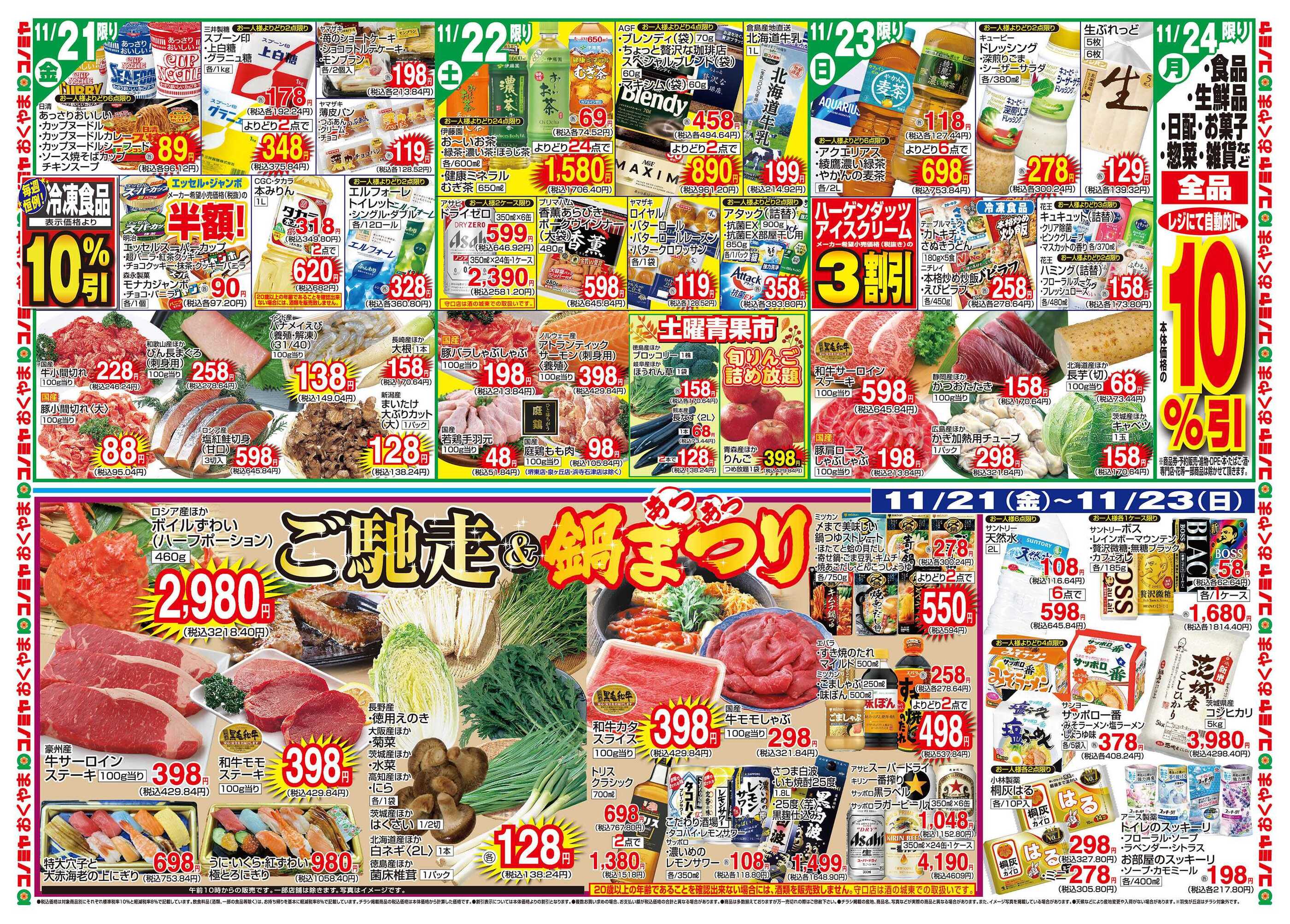 特売やセール情報など最新のチラシを掲載中。(2種類、3枚のチラシを掲載しています)