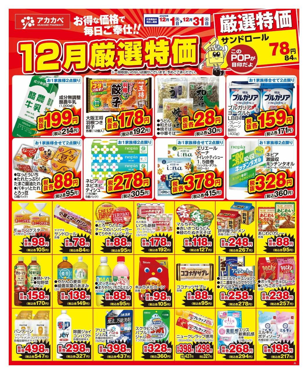 ドラッグアカカベ扇町店今週のチラシ(2025年12月15日〜12月21日)