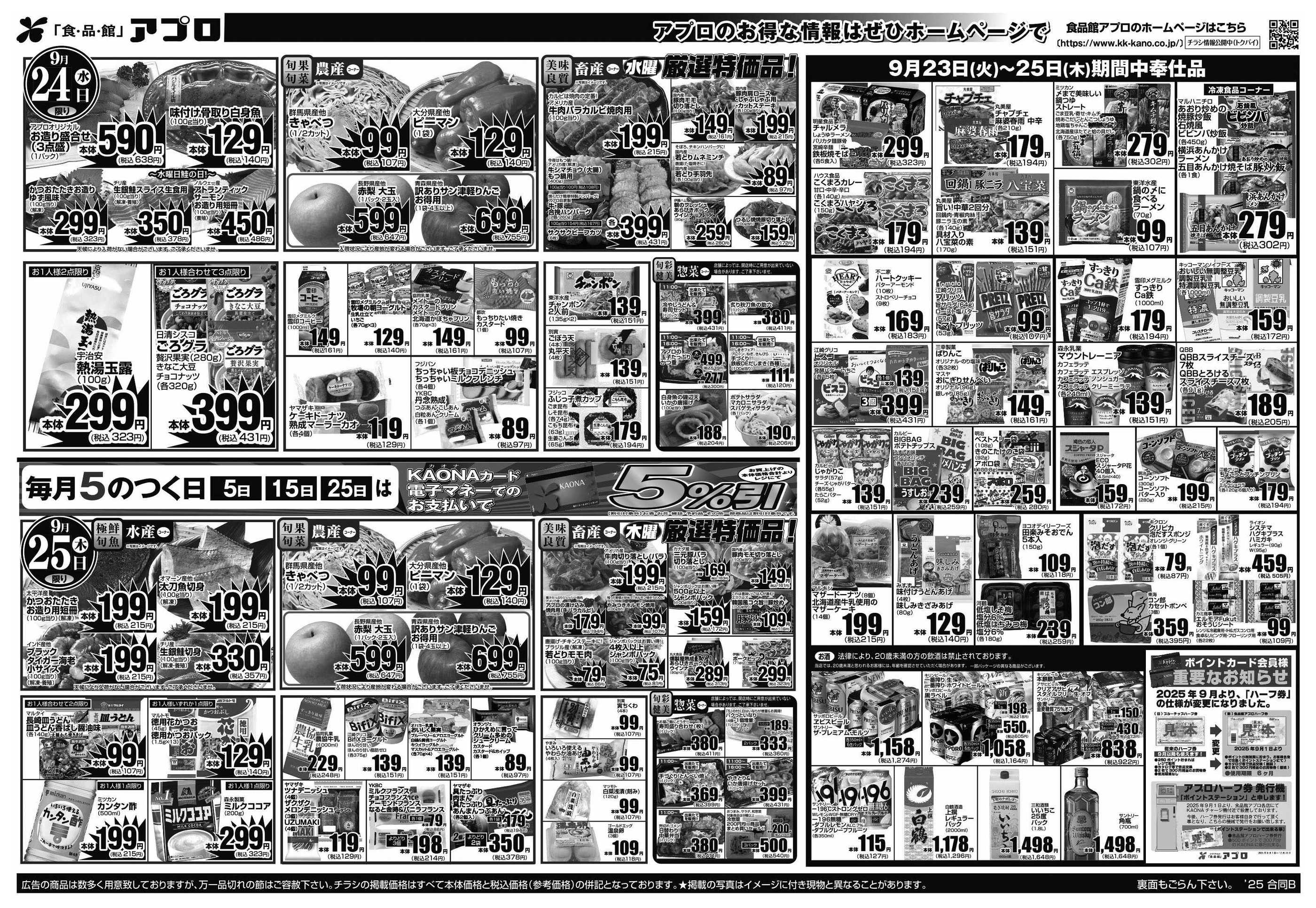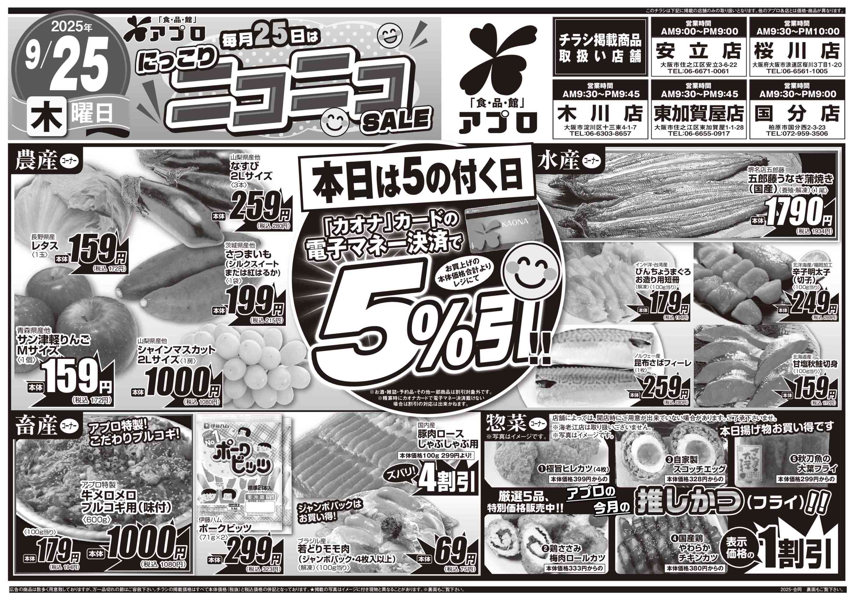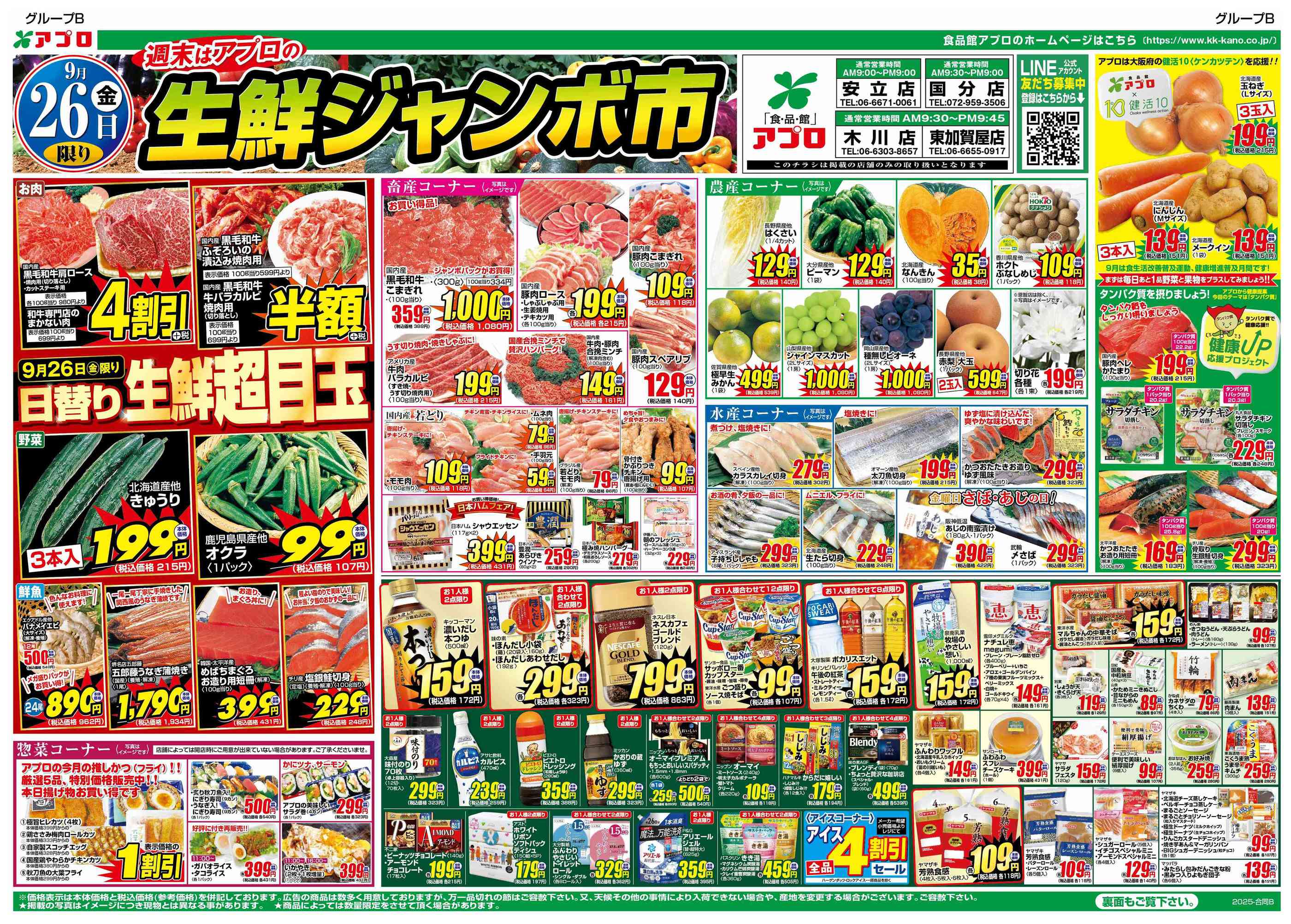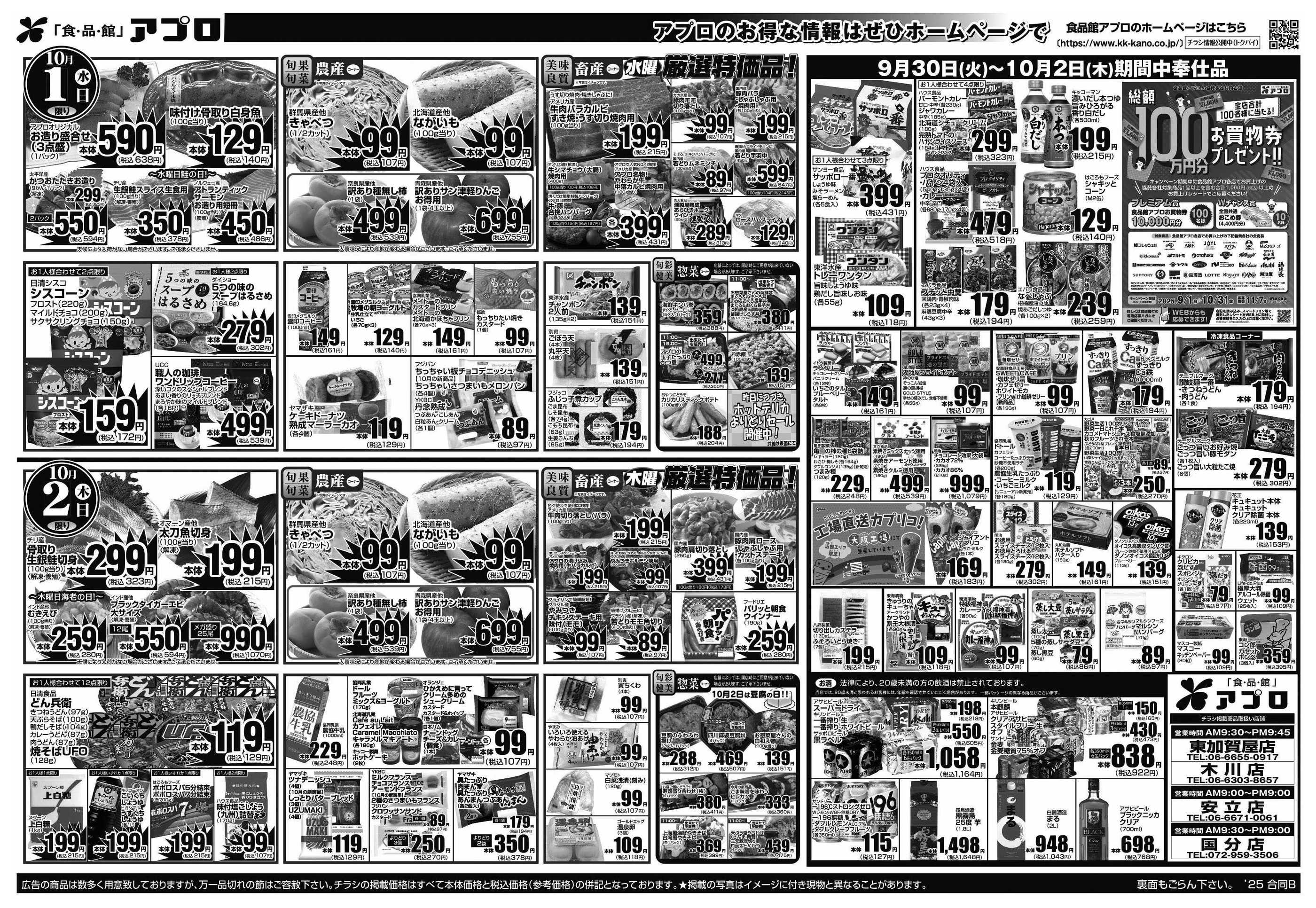 食品館アプロ東加賀屋店今週のチラシ(2025年9月29日〜10月5日)