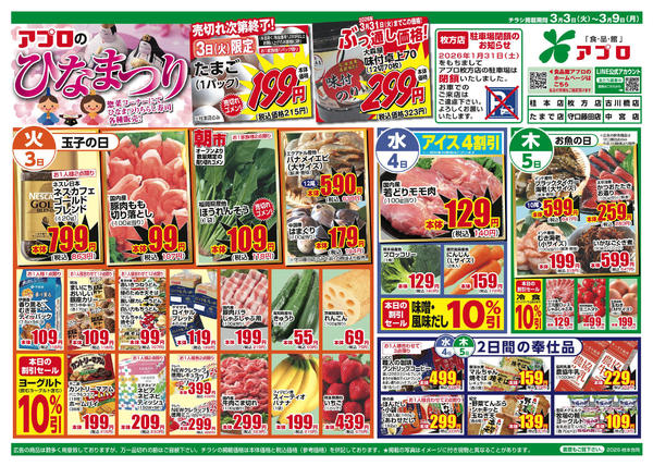 特売やセール情報など最新のチラシを掲載中。(2種類、4枚のチラシを掲載しています)