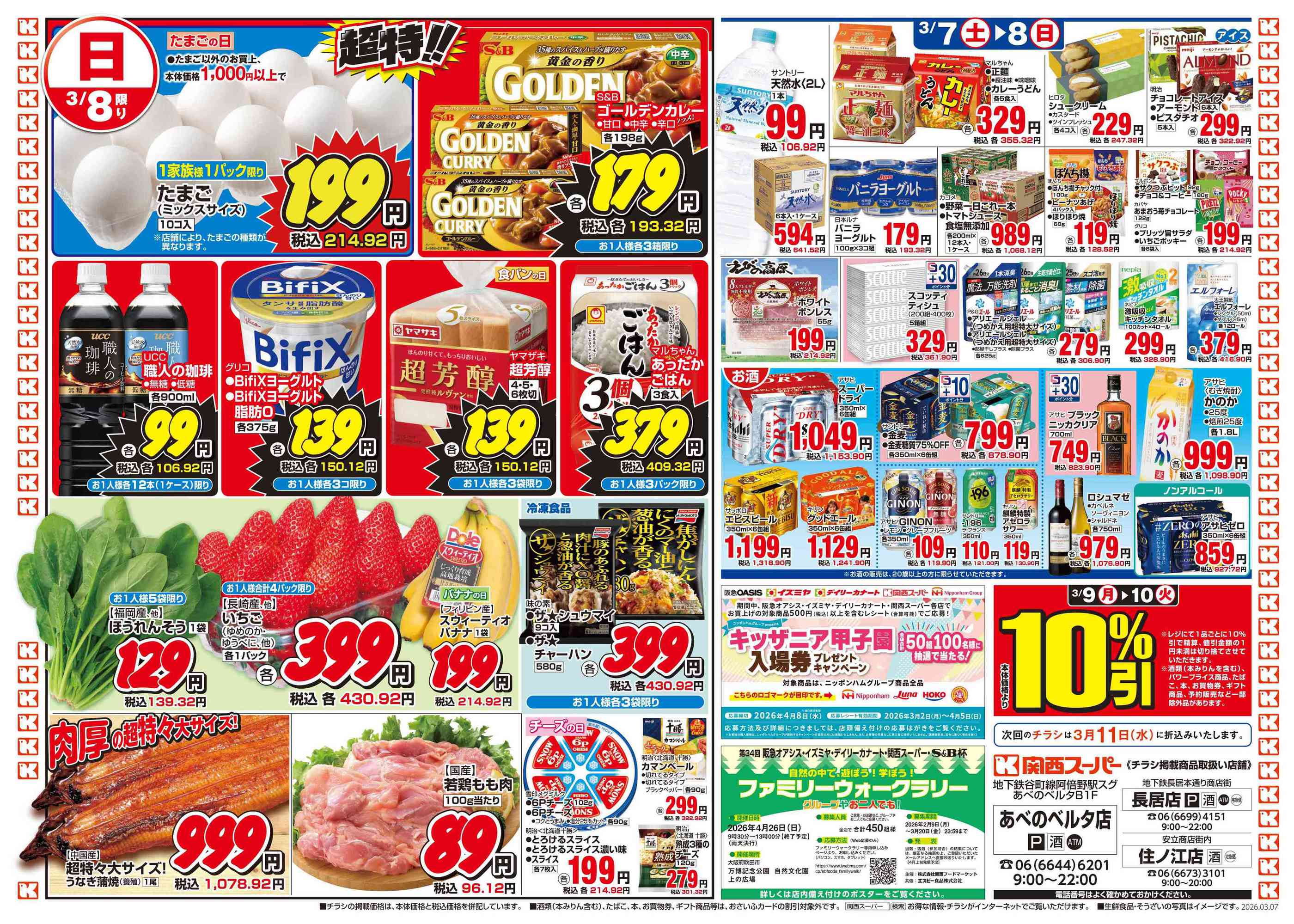 関西スーパー長居店今週のチラシ(2026年3月9日〜3月15日)